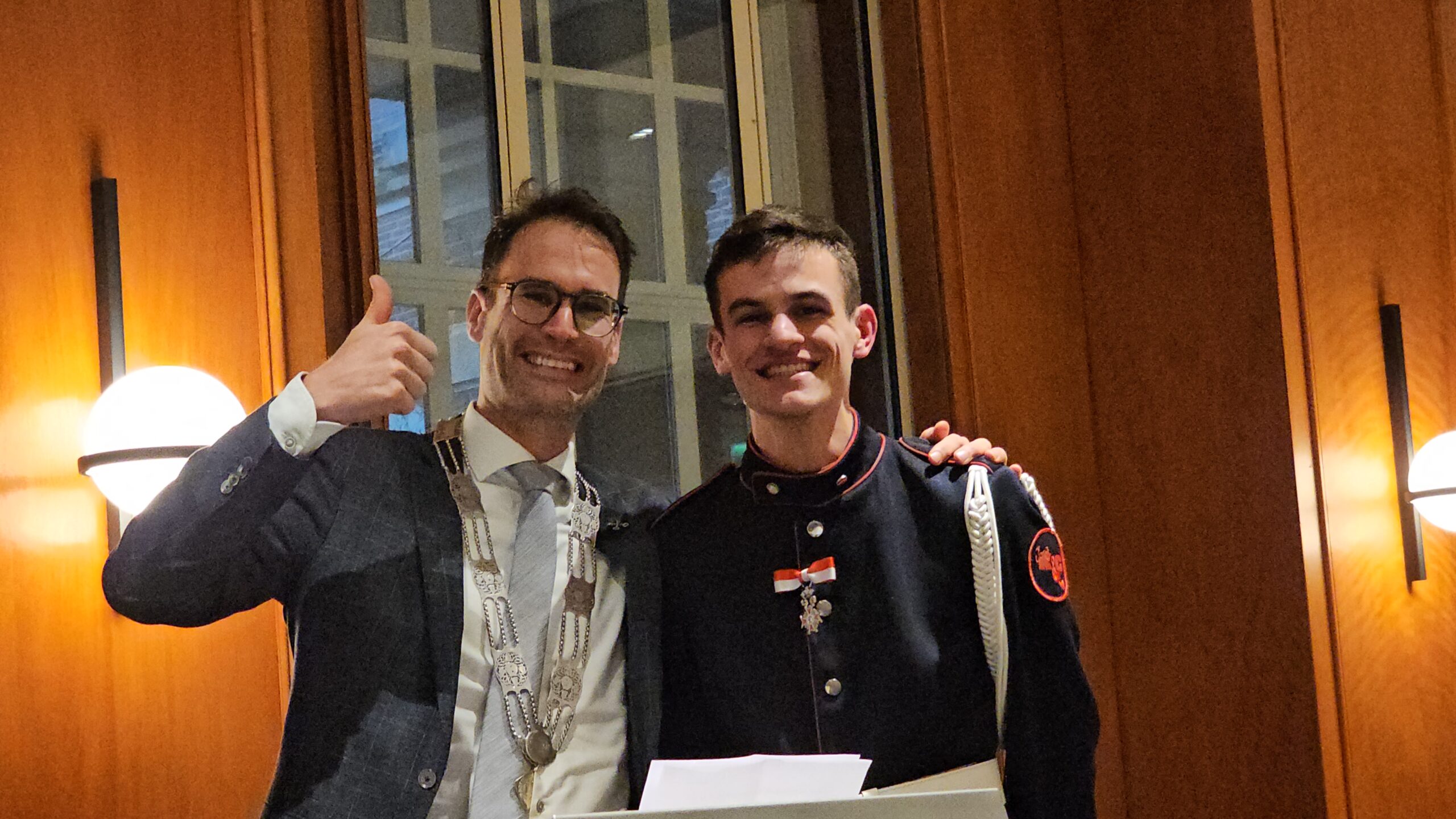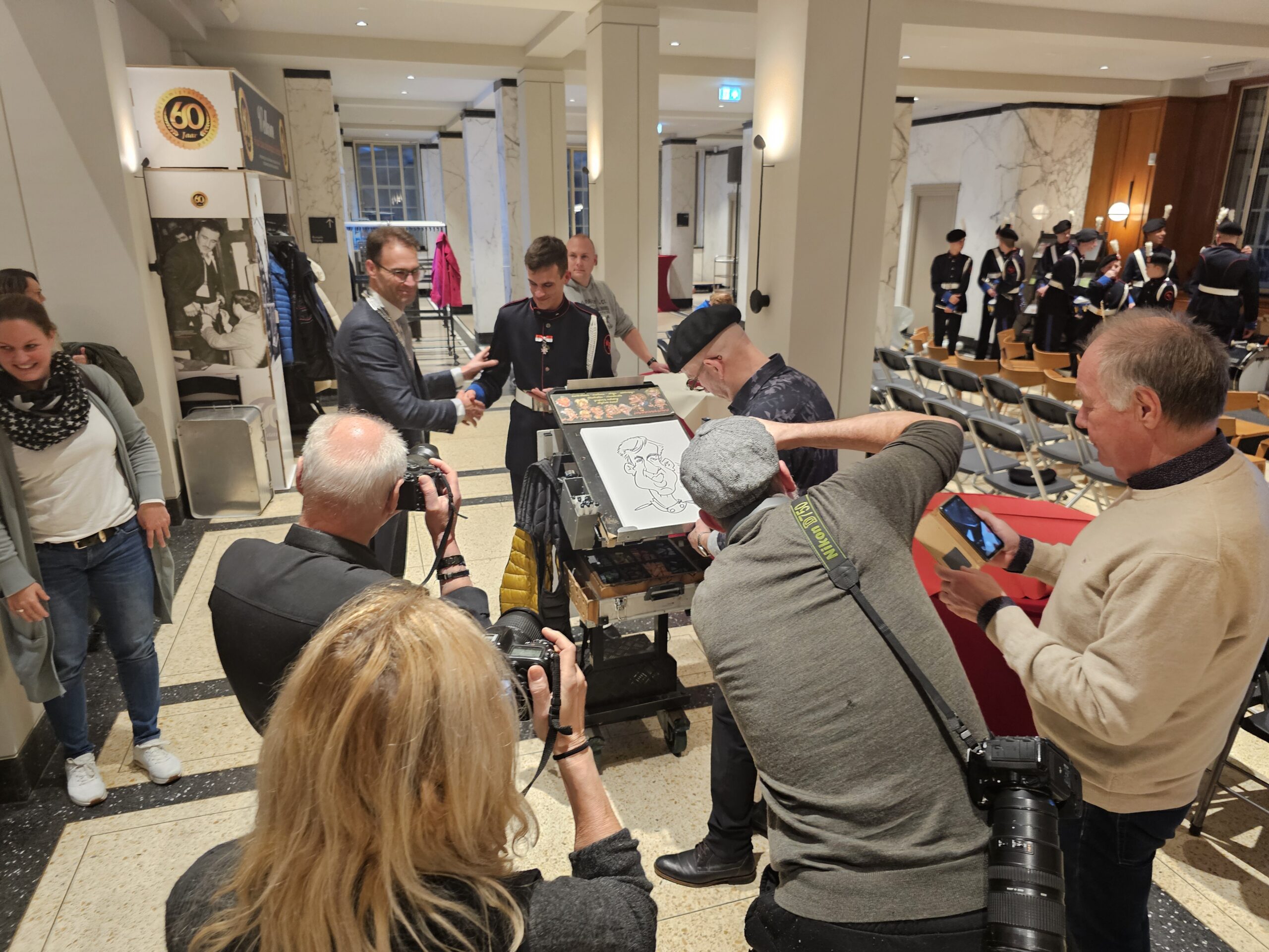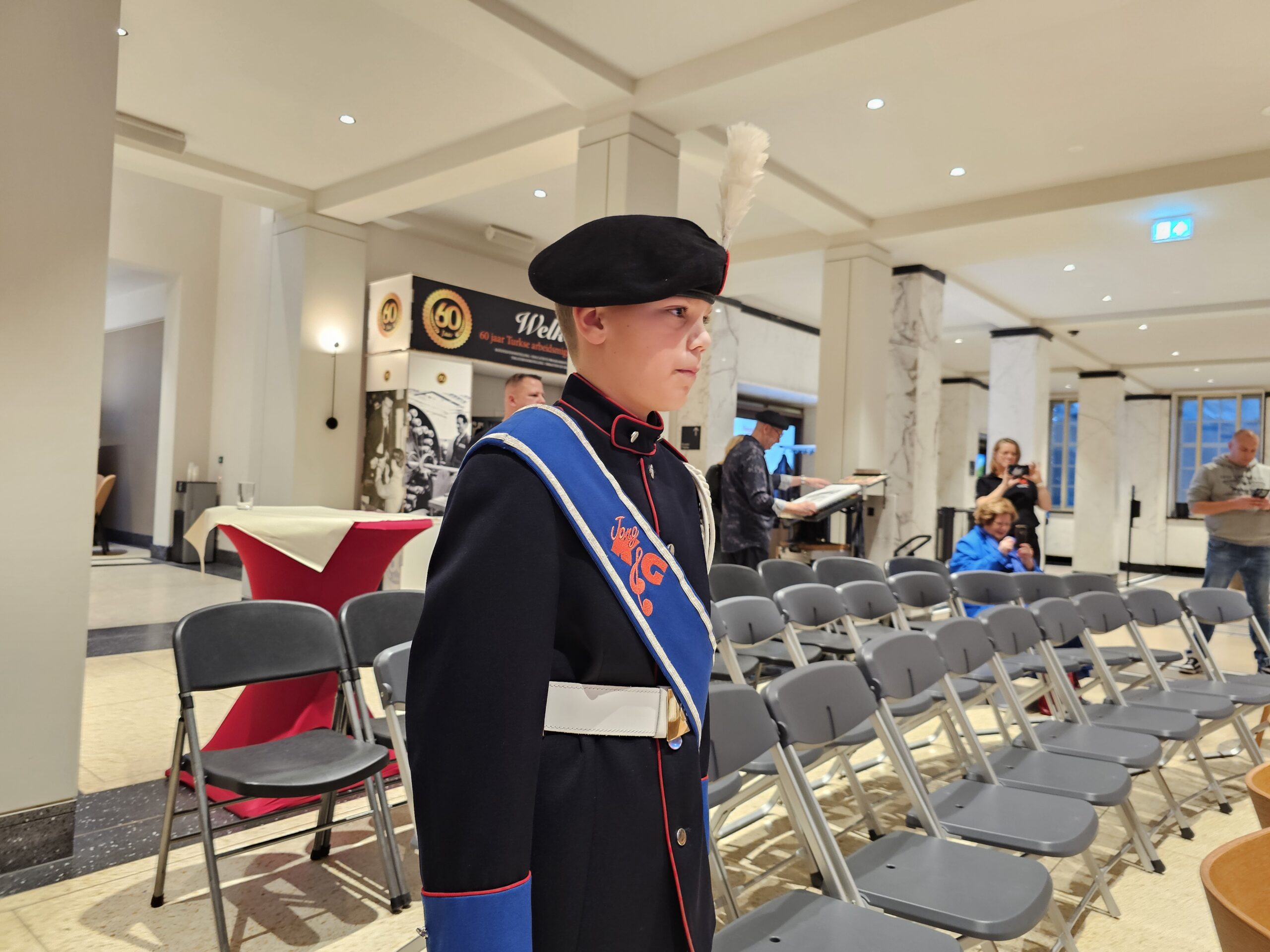 Toen was het tijd om het lintje op te spelden. “Mag dat wel in het uniform”, vroeg Leckie richting de K&G-leiding in de zaal? Het mocht en dus sierde even later het rood-witte lintje zijn borst.