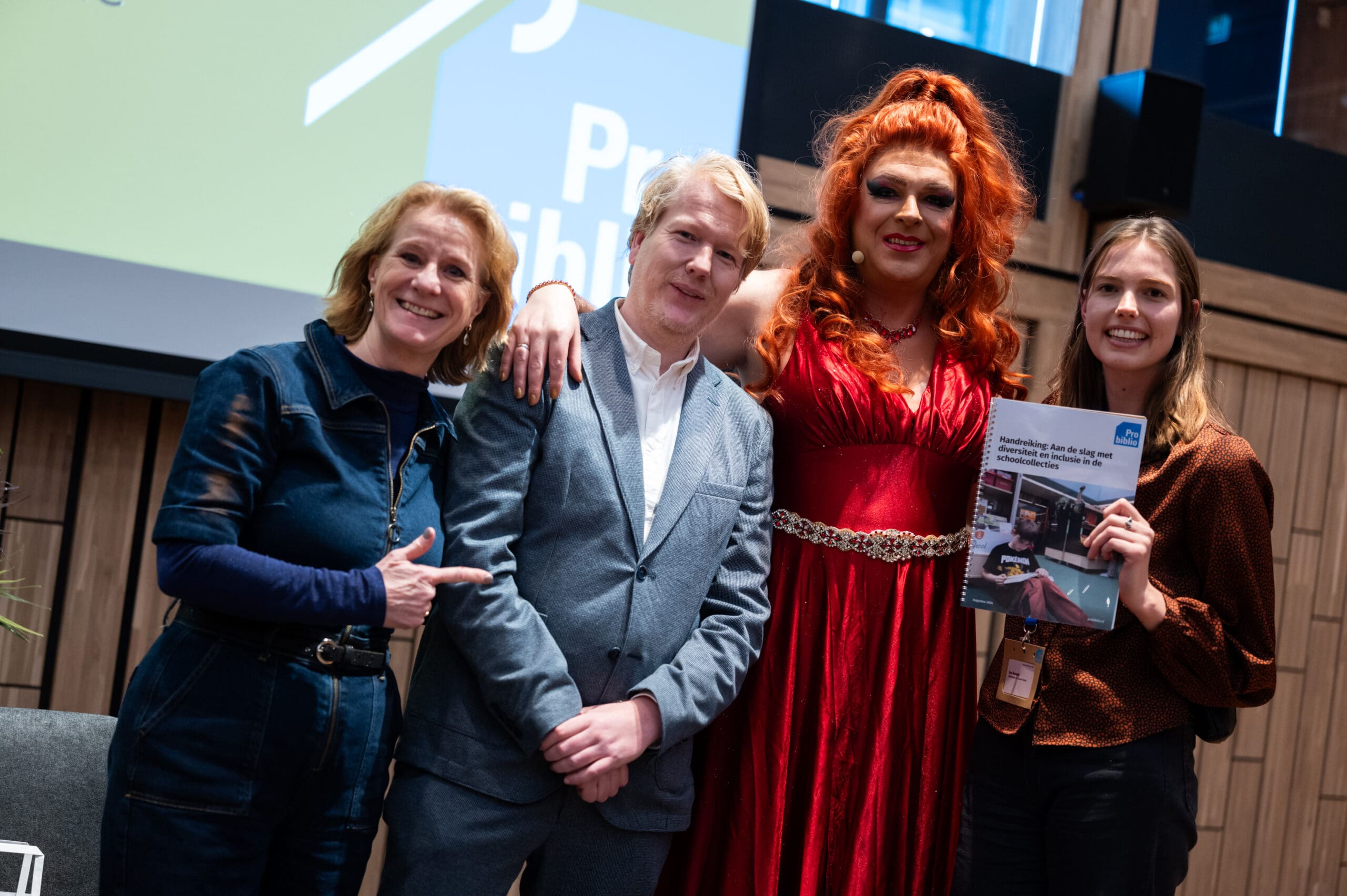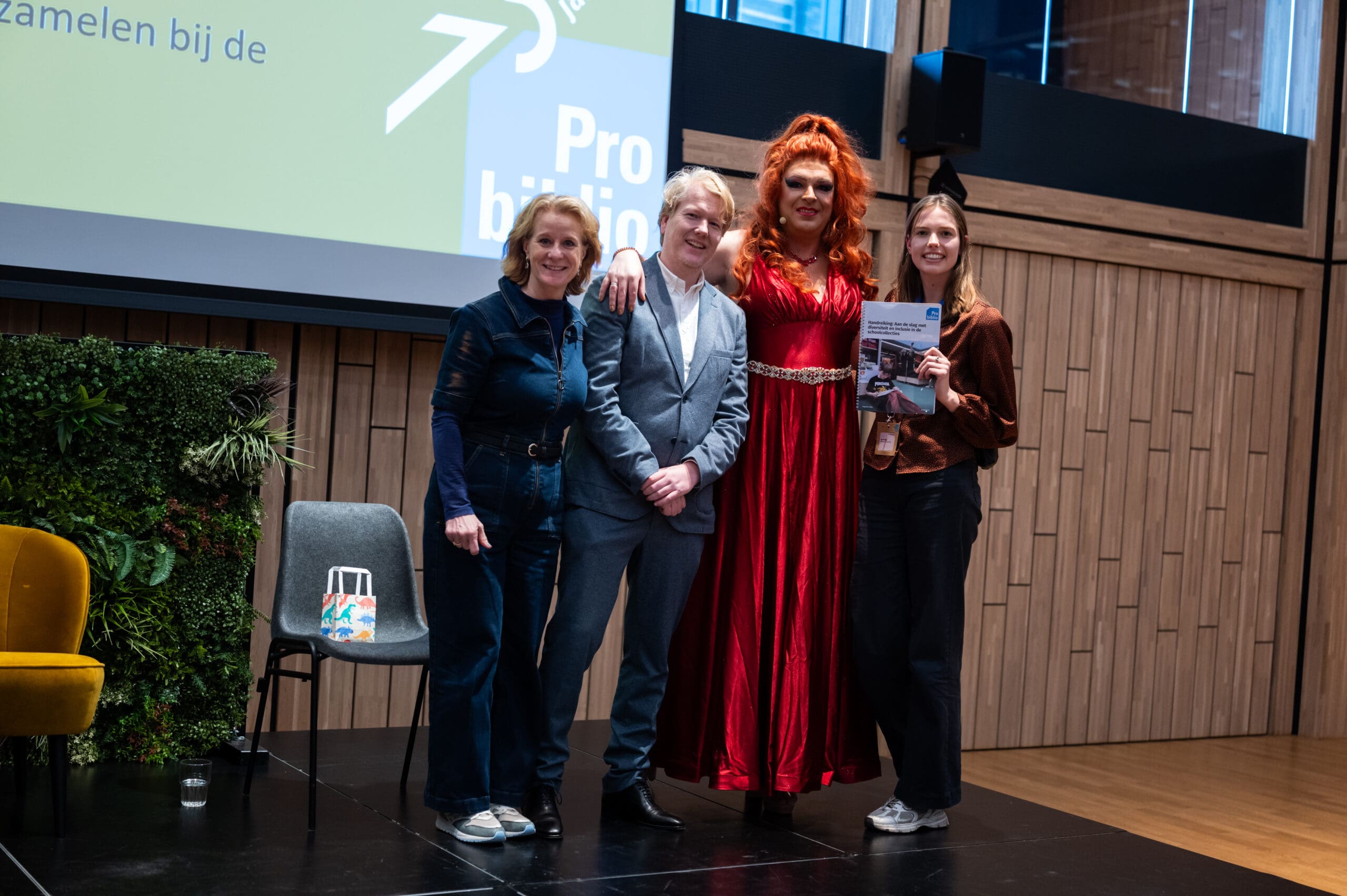 Met de handreiking ‘Aan de slag met diversiteit en inclusie‘ zet BplusC een stap richting meer diversiteit en inclusiviteit in schoolbibliotheken. Tijdens een kennisdag voor bibliotheekmedewerkers in Naturalis overhandigden Dina Diamond, de bekendste dragqueen van Leiden, en auteur Ilse Romeijn het document aan directeur Margot Nicolaes van BplusC.