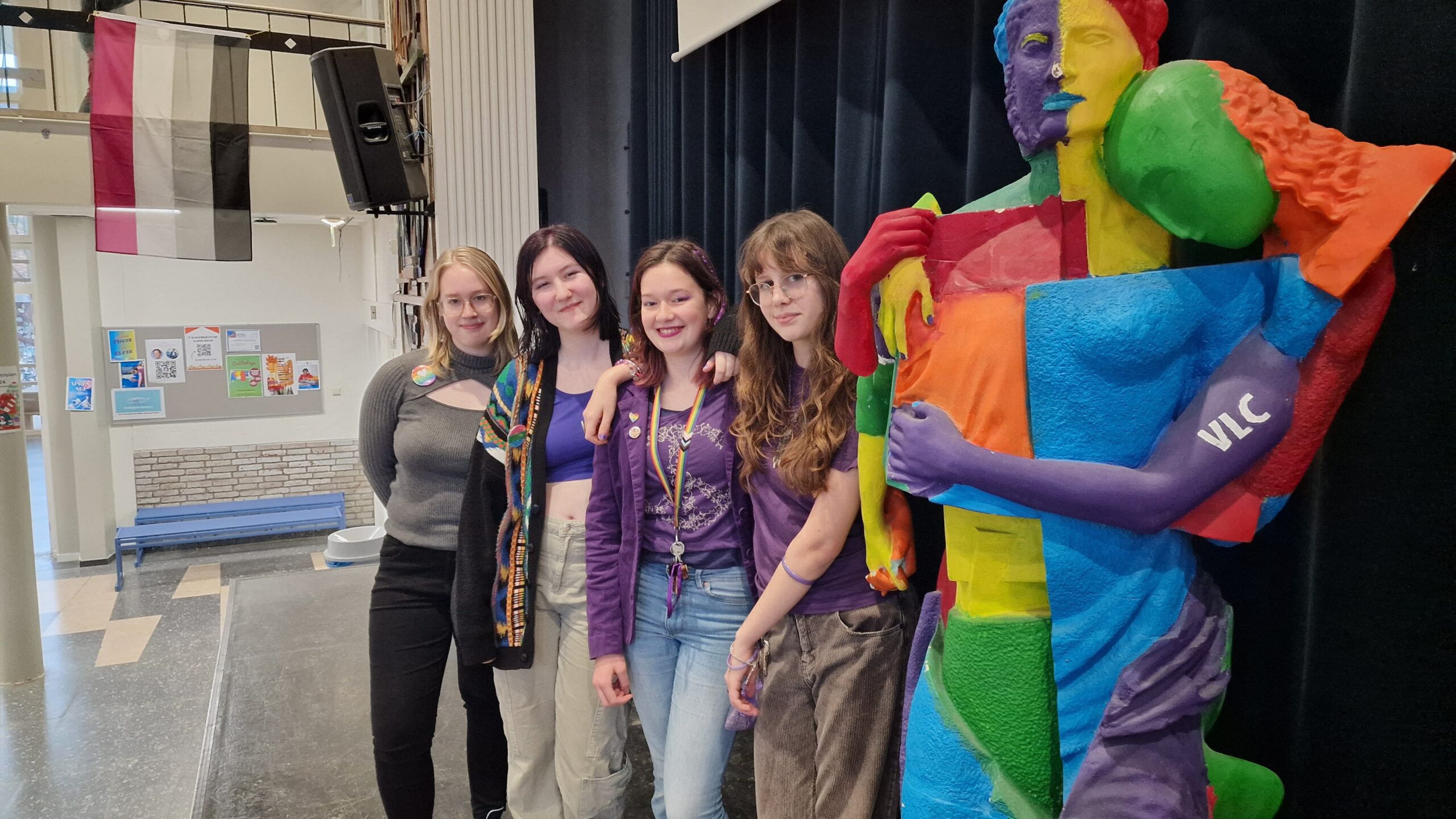 Toch kunnen queer-leerlingen niet altijd zichzelf zijn op school. “Het is wel beter dan eerst”, zegt Maya. “Maar ik heb wel soms dat ik me niet zo comfortabel voel als ik iets van Pride draag omdat mensen er wat van zeggen.” Dat er qua tolerantie nog veel te winnen is blijkt ook uit de versiering.