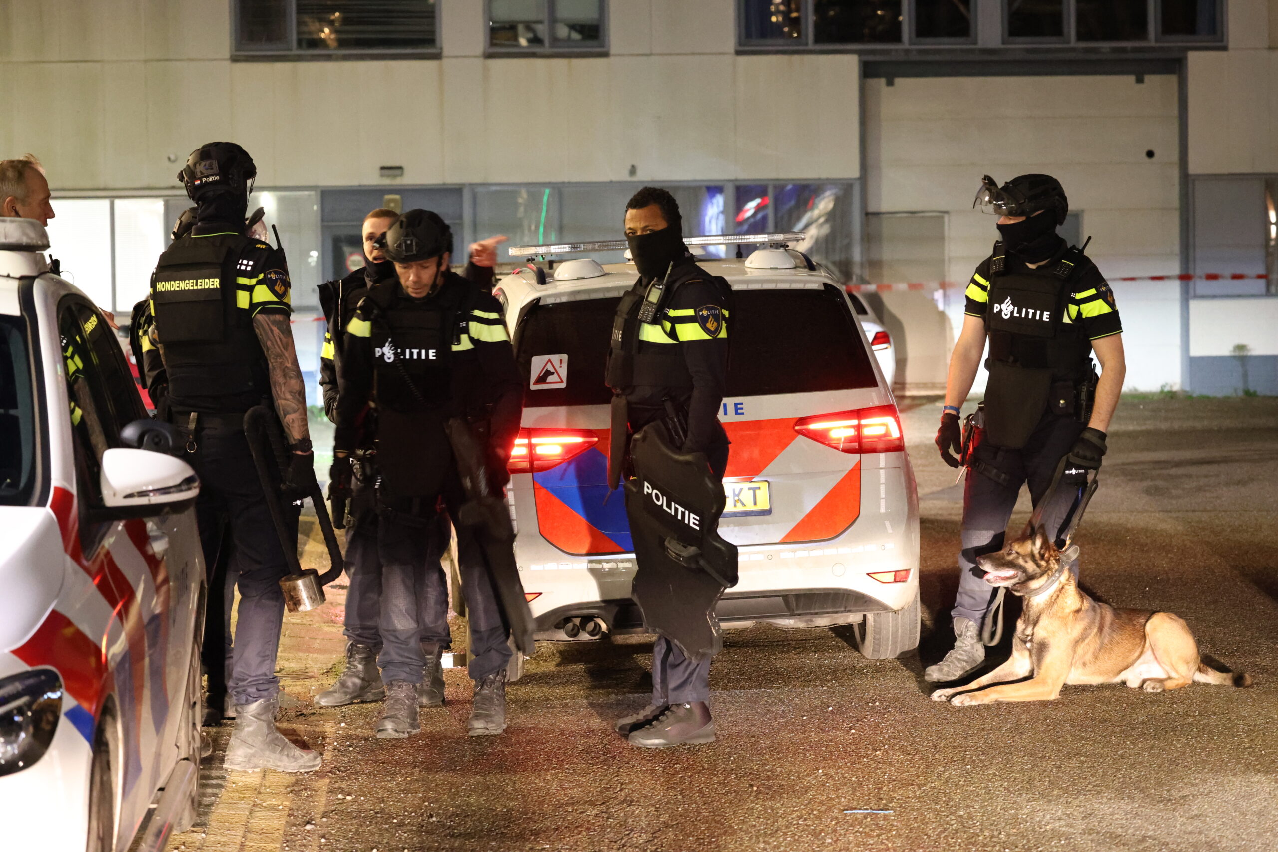 Bij het doorzoeken van het appartementencomplex is niemand aangetroffen of aangehouden. De politie spreekt graag met getuigen of mensen die informatie hebben over het incident.