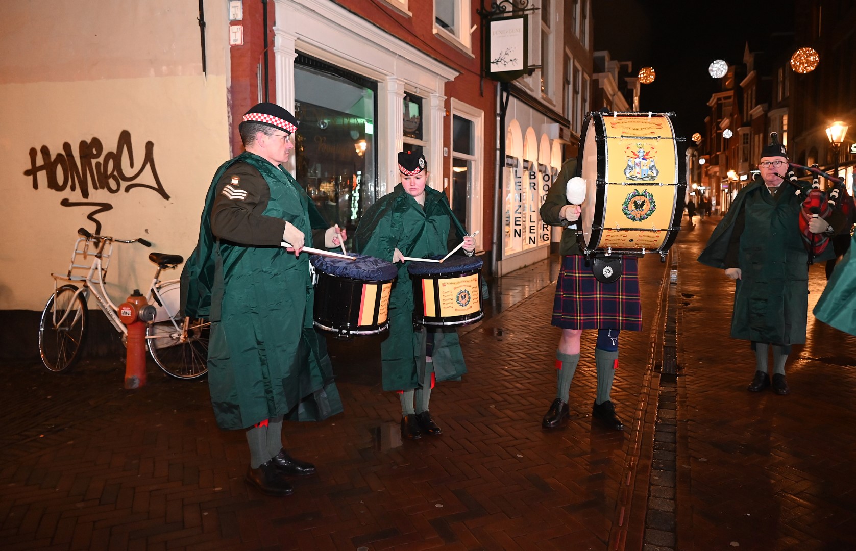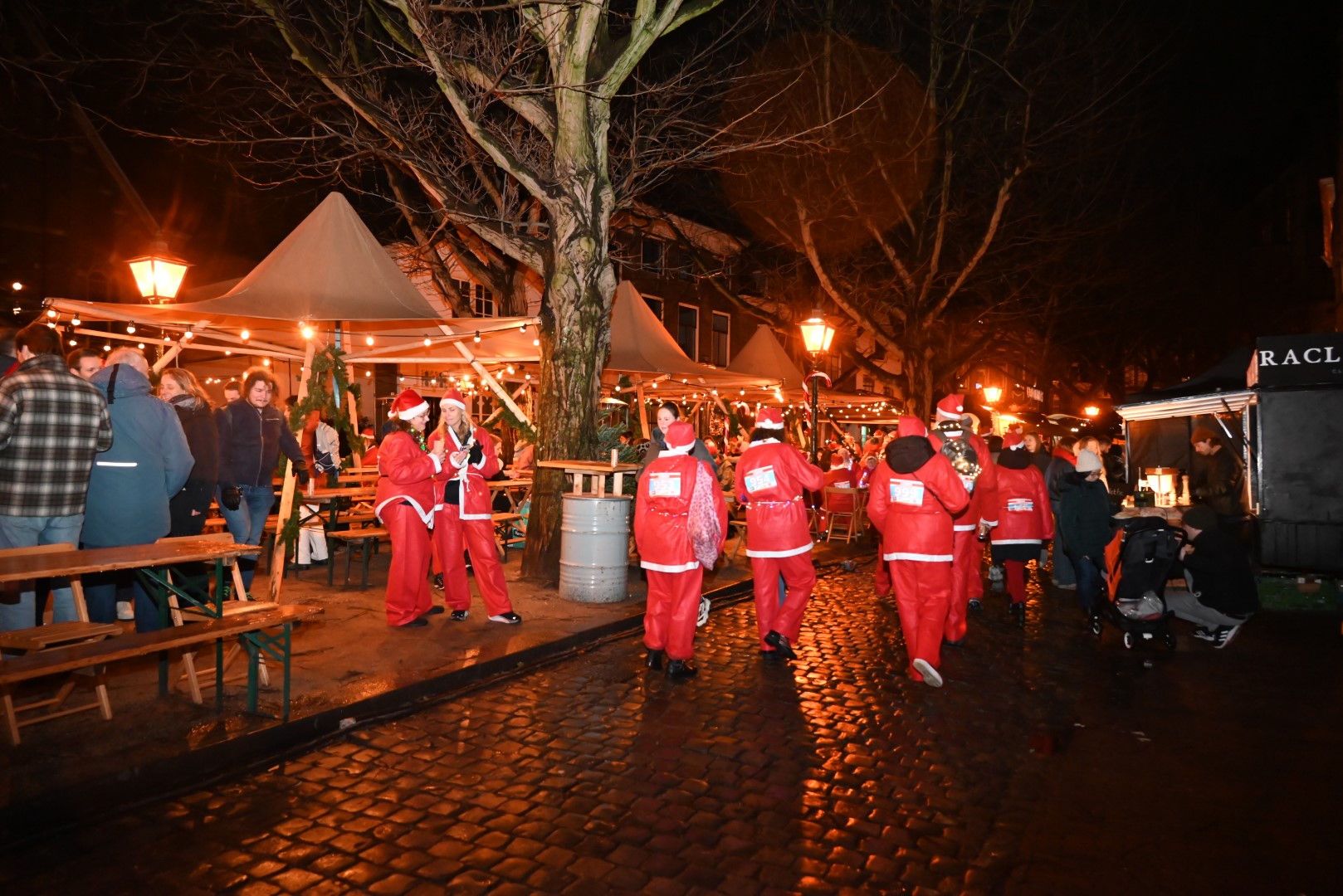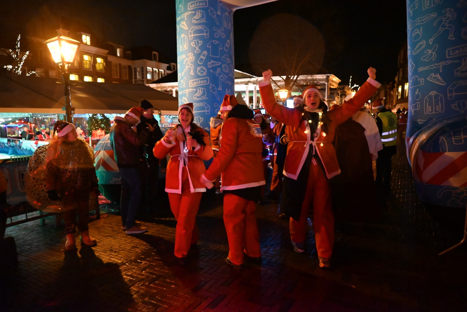 Ook tijdens deze vijfde editie werden de ‘Santa Runners’ onderweg ondersteund met motiverende impulsen van verschillende bandjes en stands met versnaperingen en terrassen in kerstsfeer. Ook de Nostalgische Kerstmarkt werd aangedaan. Dat halverwege de avond een spat regen viel, mocht de pret niet drukken. In een ‘lint van licht’ wandelden de deelnemers verder door het centrum van Leiden.