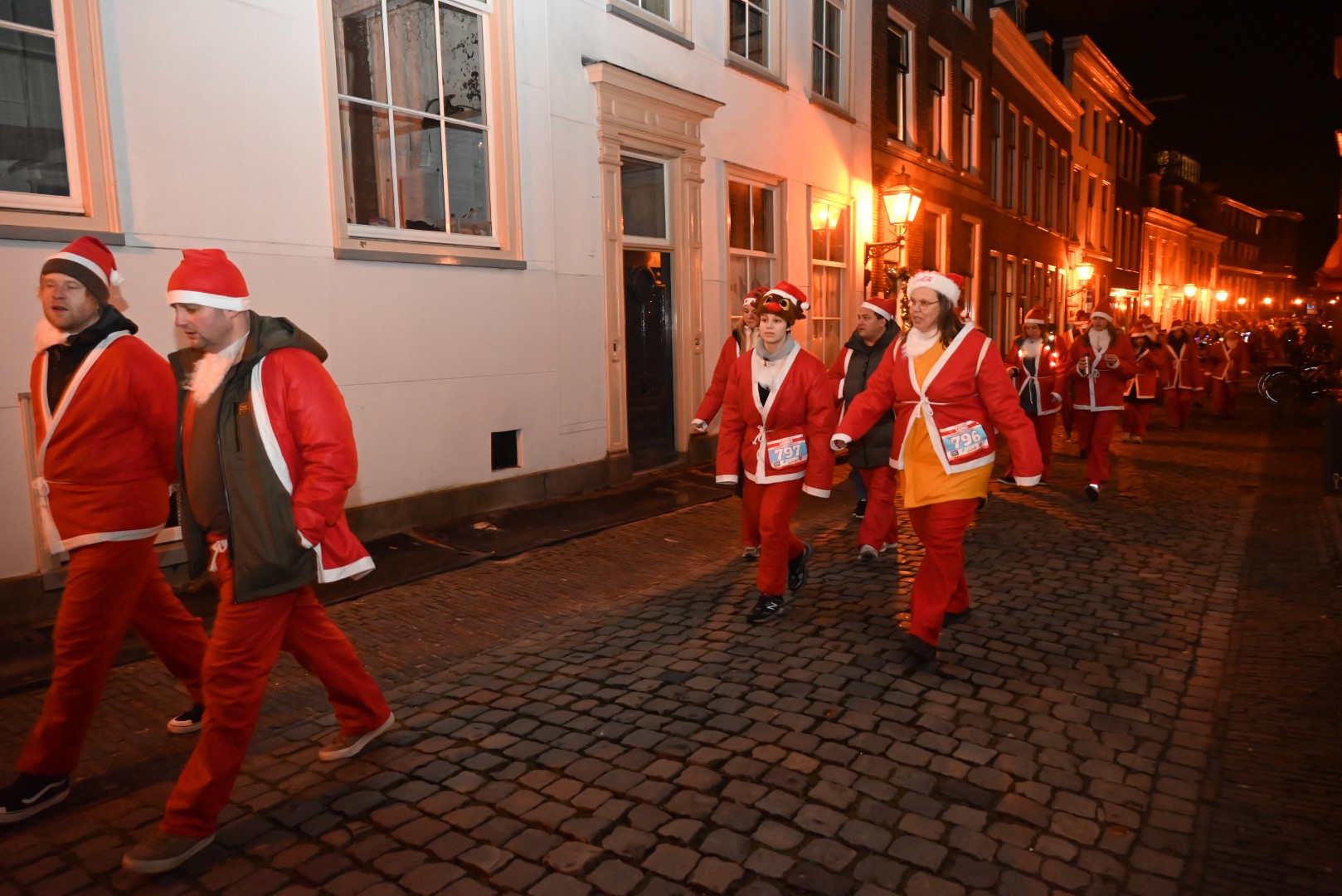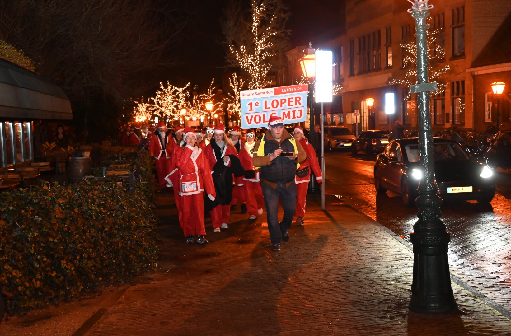 Het centrum van Leiden werd donderdagavond voor de vijfde maal overspoeld met kerstmannen, -vrouwen en -kinderen. In de jaarlijkse Rotary Santa Run Leiden liepen 1.574 mensen mee om geld in te zamelen voor drie goede doelen.