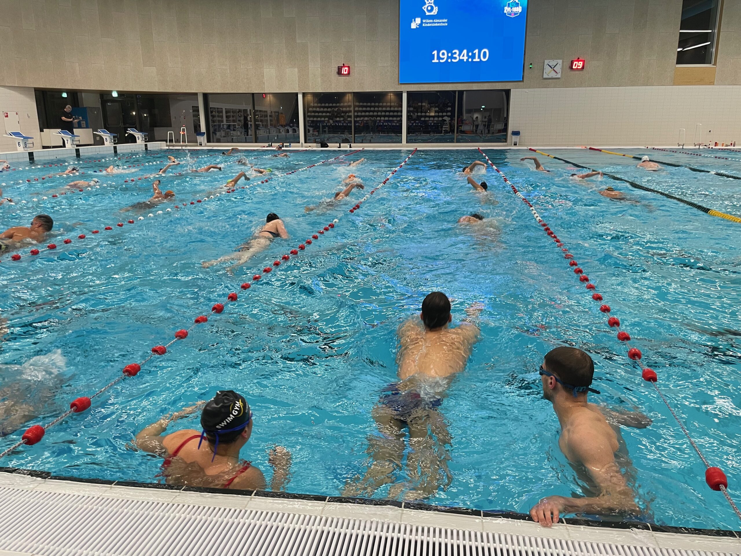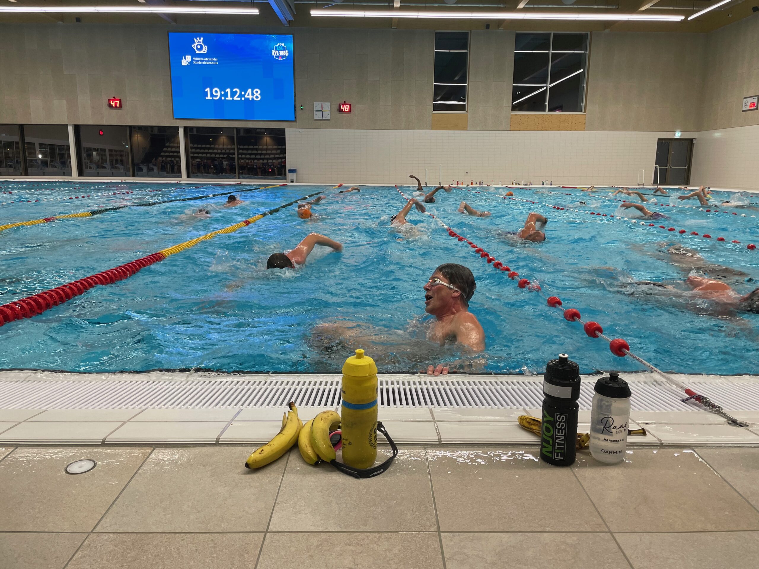 Het is de 18e editie van de 100×100, die na de dood van clubicoon Albert Spijker werd omgedoopt. “Ik ga voor het eerst 100×100 zwemmen”, zegt dochter Sterre Spijker, een van de organisatoren. “Ik ben best wel zenuwachtig of het gaat lukken. Maar het is vooral mooi om te zien hoe we hier als een vereniging samen zwemmen voor een goed doel.” Ook voorzitter Caspar Boendermaker is trots op zijn vereniging. Hij duikt zo ook het water in. “Ik ga voor de 100×75, dat vind ik uitdagend genoeg.”