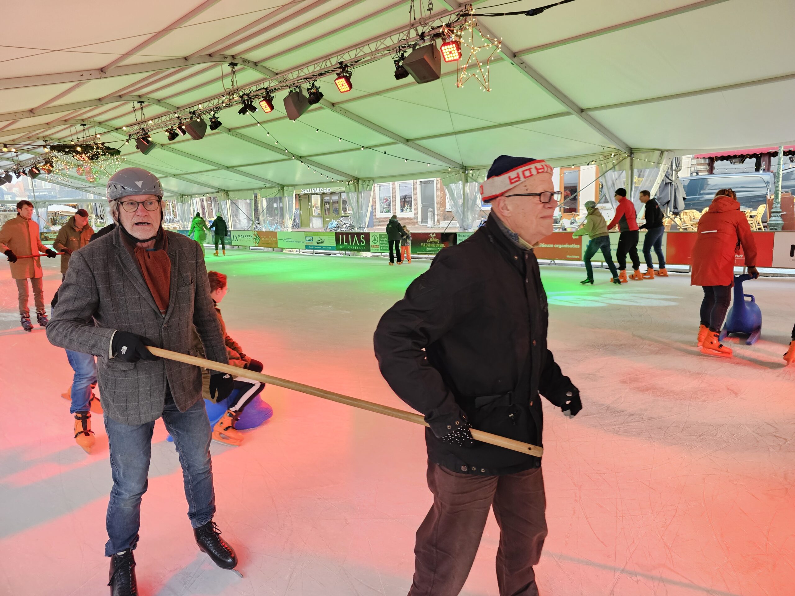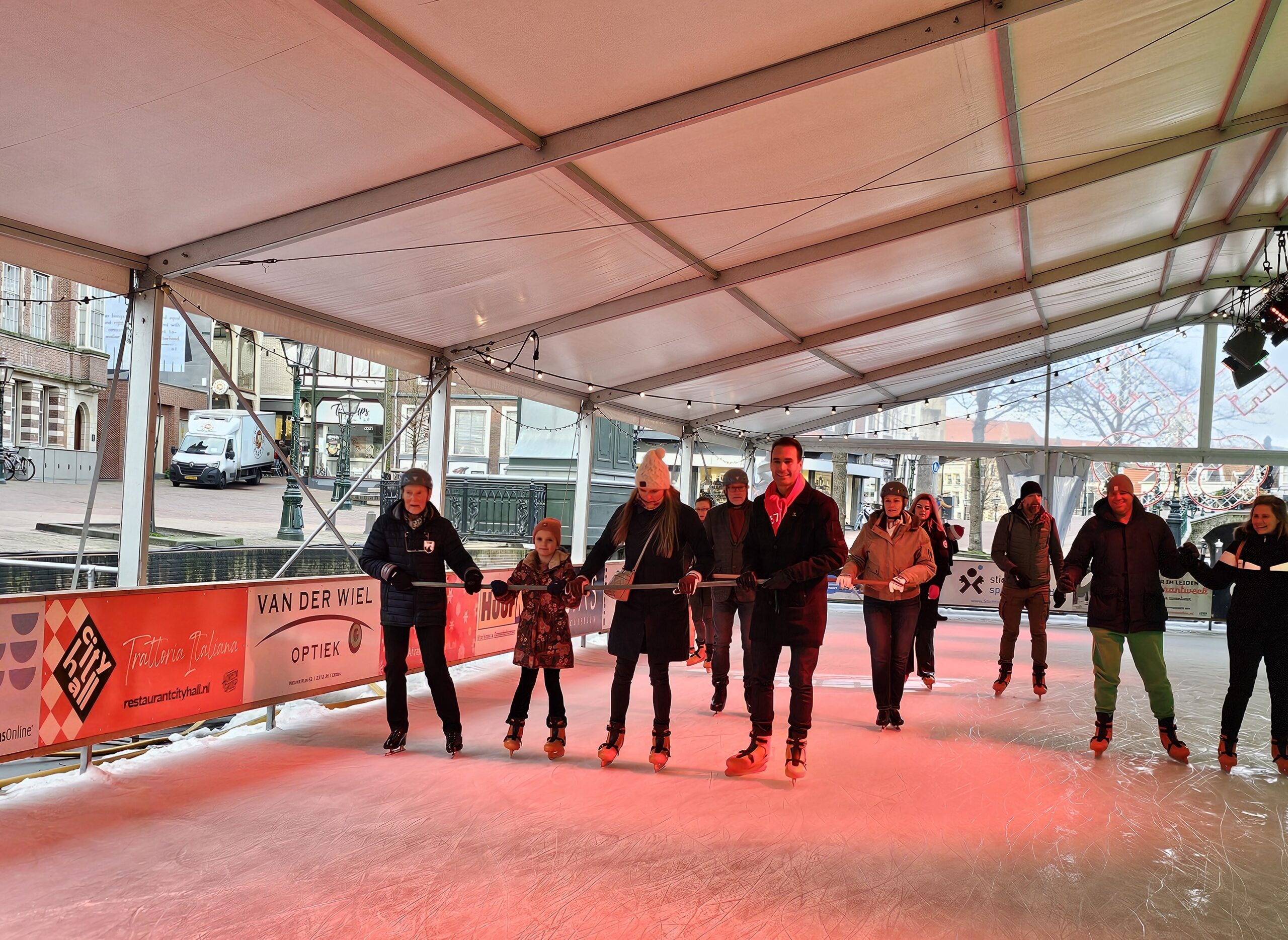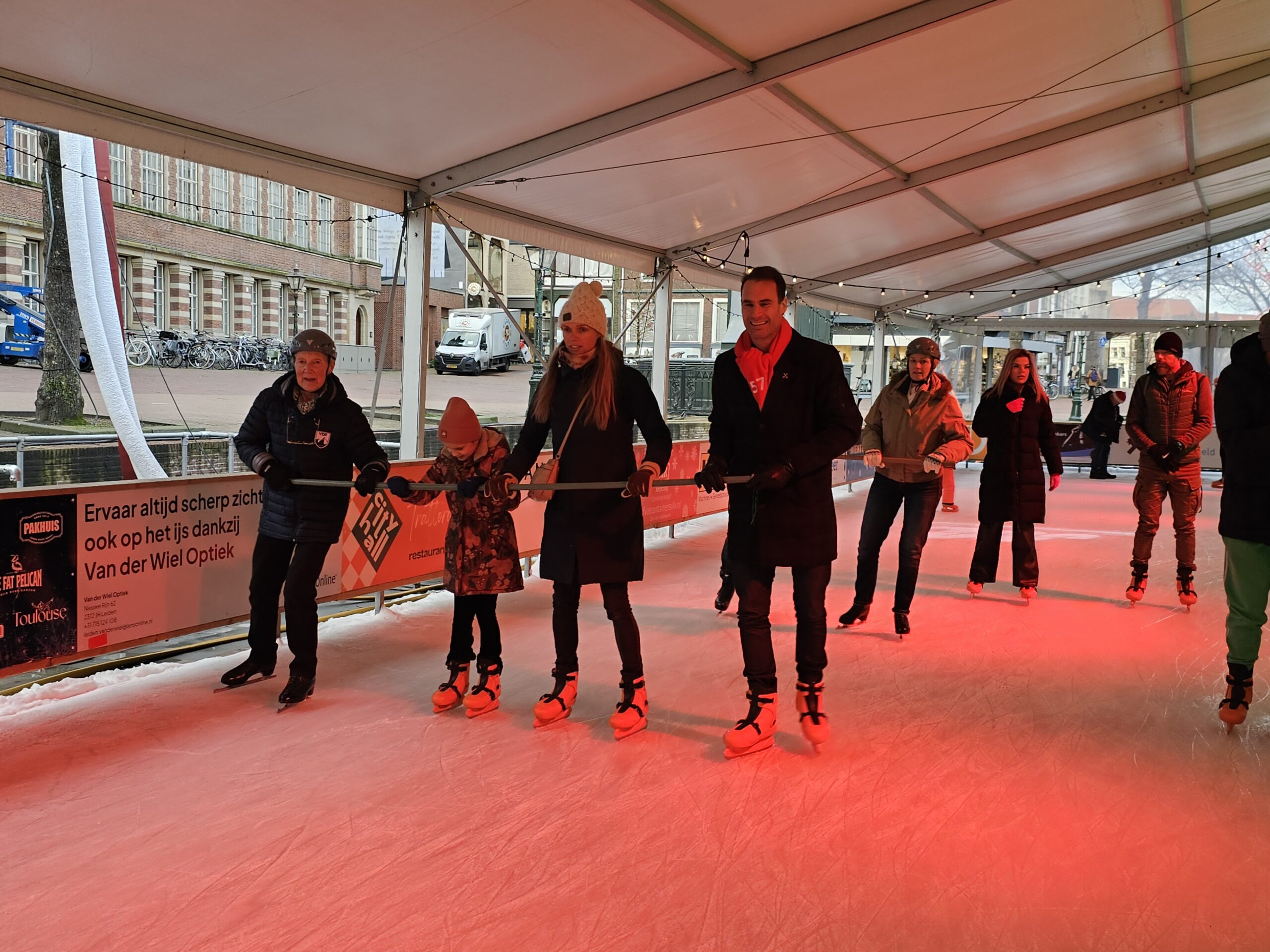 Een van de laatste speciale evenementen op de ijsbaan was afgelopen vrijdag ‘Skating Blind’, waarbij schaatsers met een visuele beperking het ijs op gingen met een buddy. Onder de deelnemers ook de Leidse burgemeester Peter Heijkoop die als maatje optrad voor zijn Leiderdorpse college Tjarda Struik. “Ik zie er wel tegen op hoor”, zei vooraf. Opmerkelijk, want wie de bijna blinde burgemeester al wat langer volgt via haar sociale mediakanalen, heeft haar zelfs al zien skiën. “Maar dat is echt veel minder eng”, zo bezweert ze. Even later blijkt het haar prima af te gaan en zwiert ze met buddy Heijkoop en haar kinderen over het ijs.