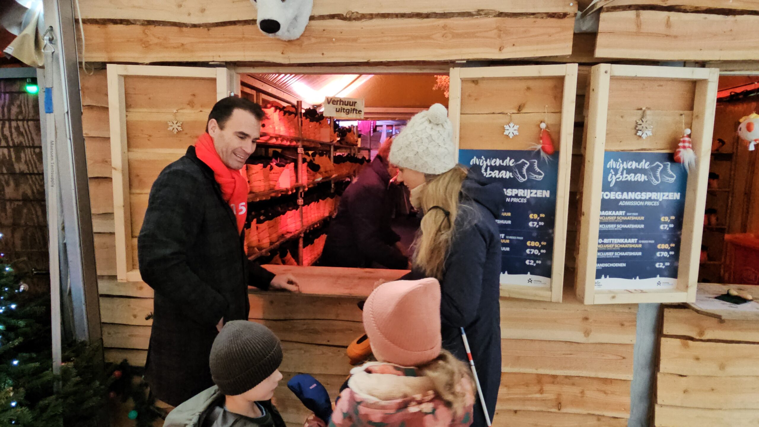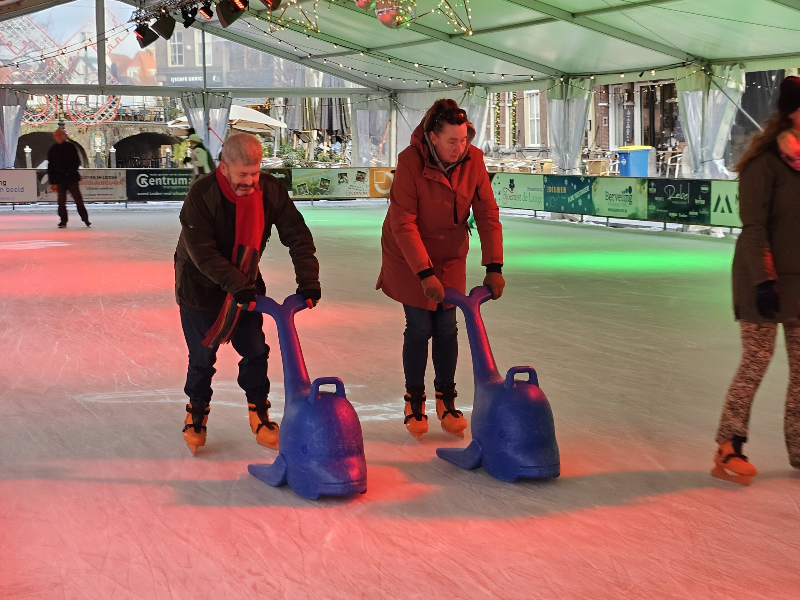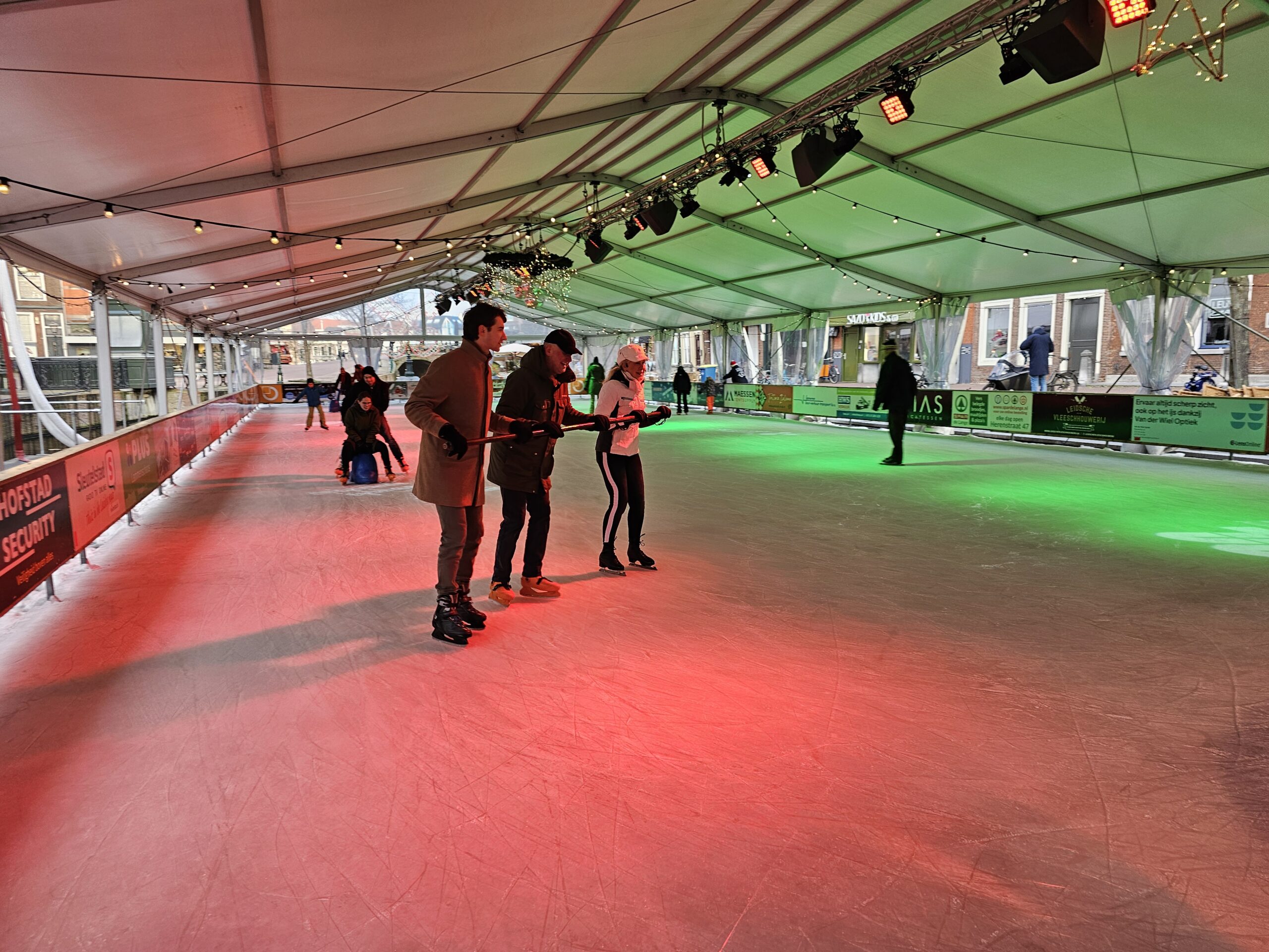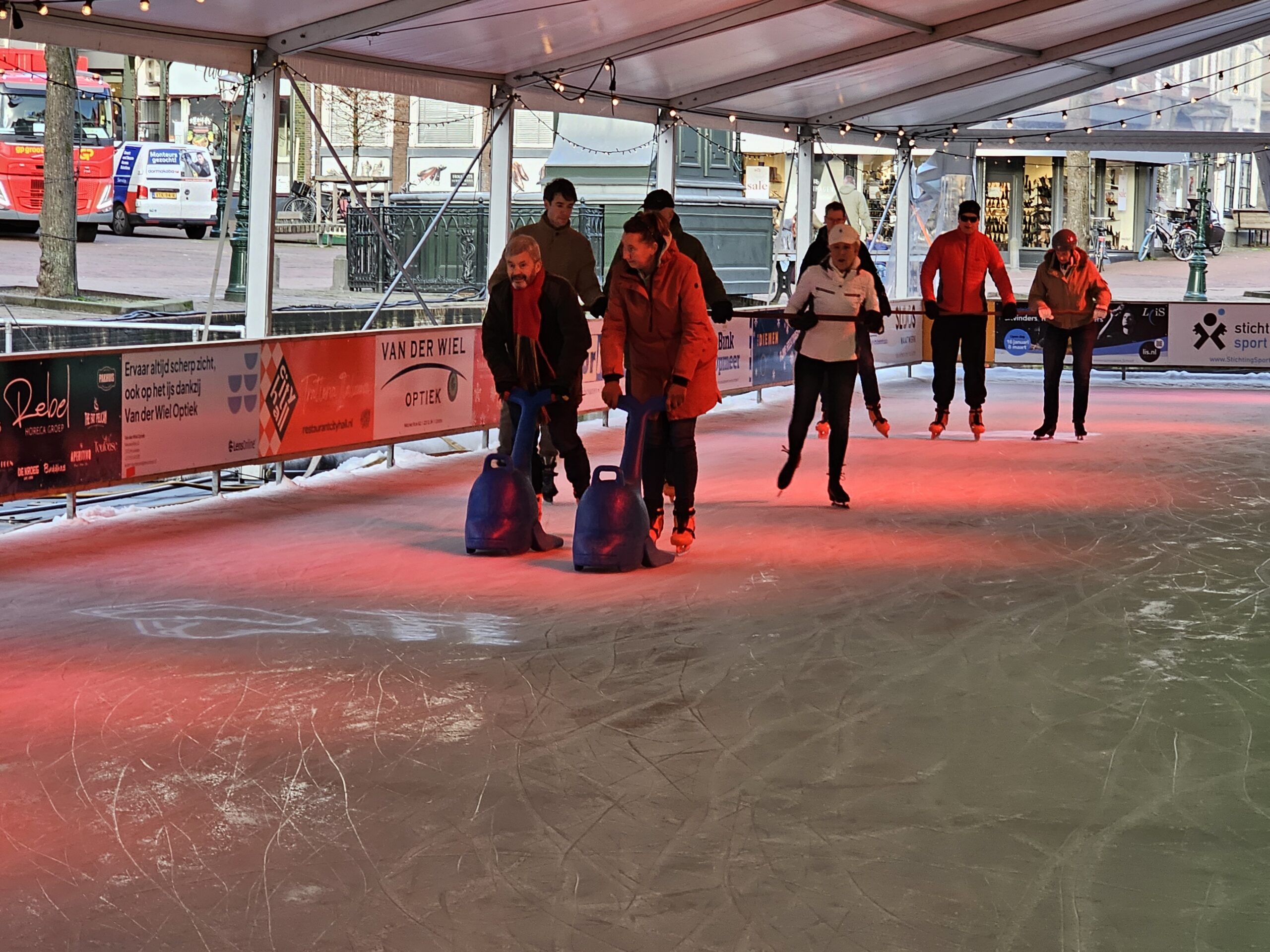 Een van de laatste speciale evenementen op de ijsbaan was afgelopen vrijdag ‘Skating Blind’, waarbij schaatsers met een visuele beperking het ijs op gingen met een buddy. Onder de deelnemers ook de Leidse burgemeester Peter Heijkoop die als maatje optrad voor zijn Leiderdorpse college Tjarda Struik. “Ik zie er wel tegen op hoor”, zei vooraf. Opmerkelijk, want wie de bijna blinde burgemeester al wat langer volgt via haar sociale mediakanalen, heeft haar zelfs al zien skiën. “Maar dat is echt veel minder eng”, zo bezweert ze. Even later blijkt het haar prima af te gaan en zwiert ze met buddy Heijkoop en haar kinderen over het ijs.