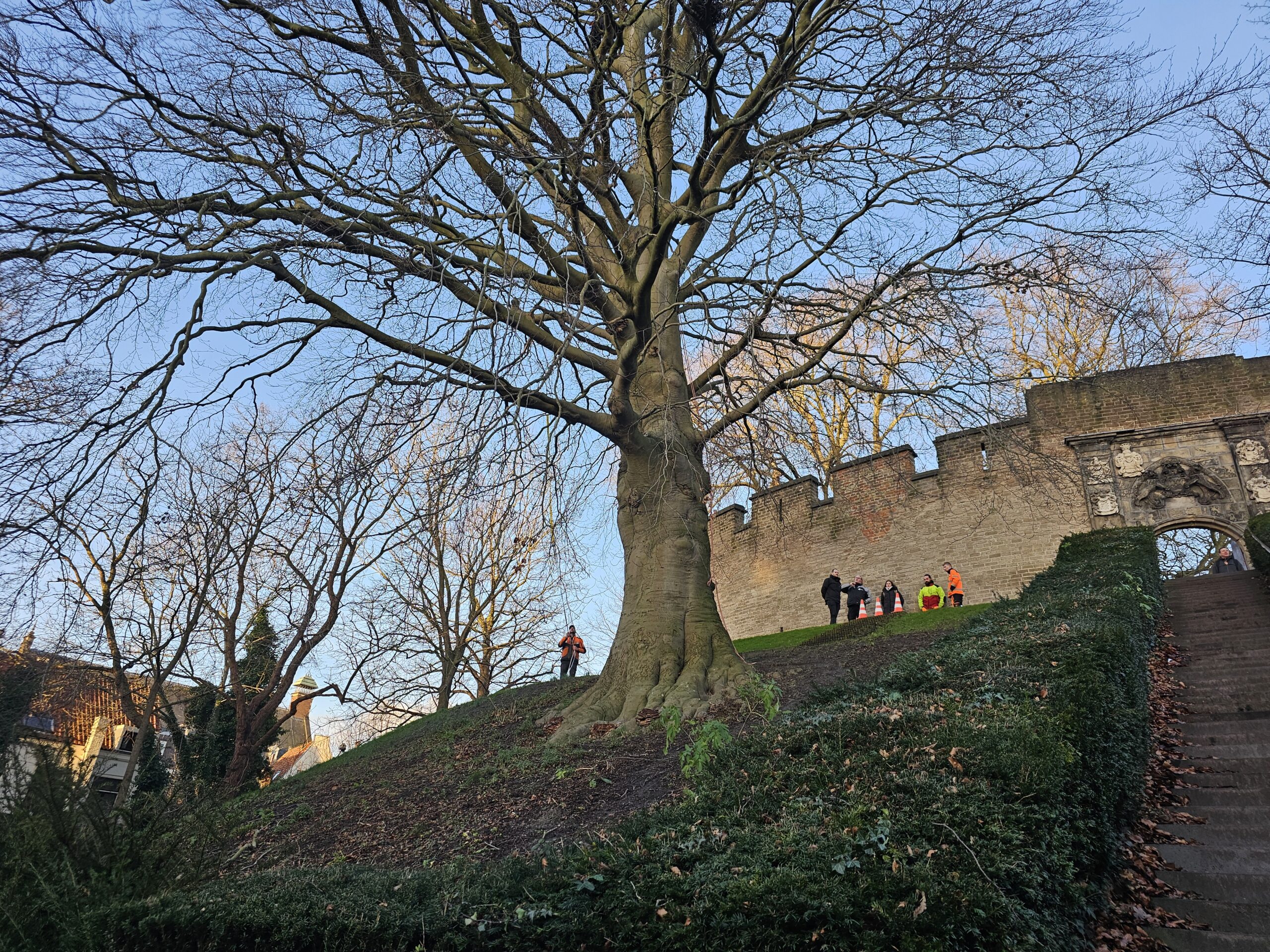 De Rode Beuk op de Burcht is getroffen door een ziekmakende en dodelijke reuzenzwam. Omdat de zwam de wortels van de beuk aantast, is de kans groot dat de boom instabiel wordt.