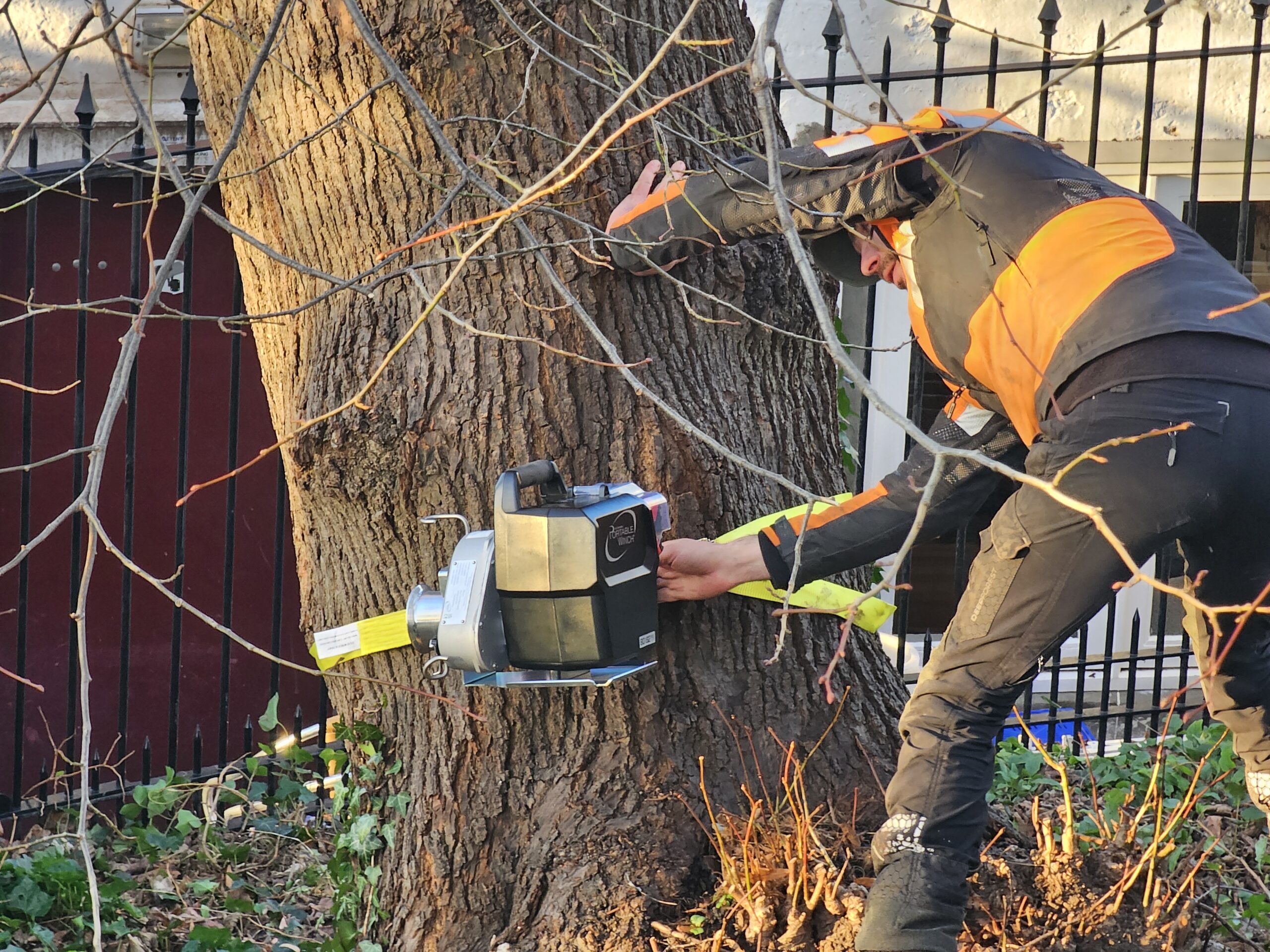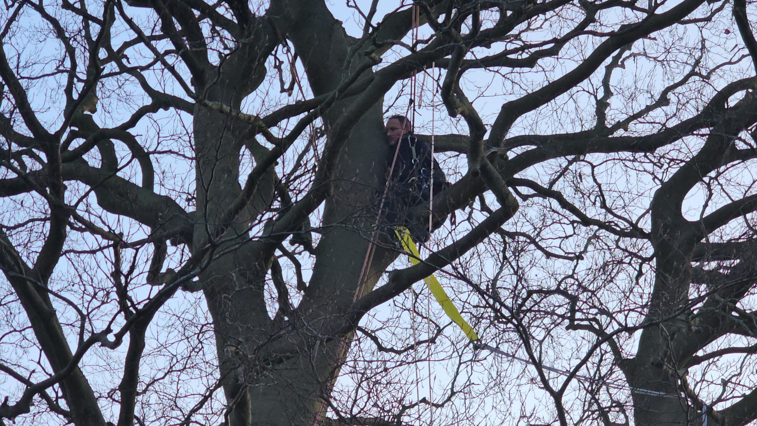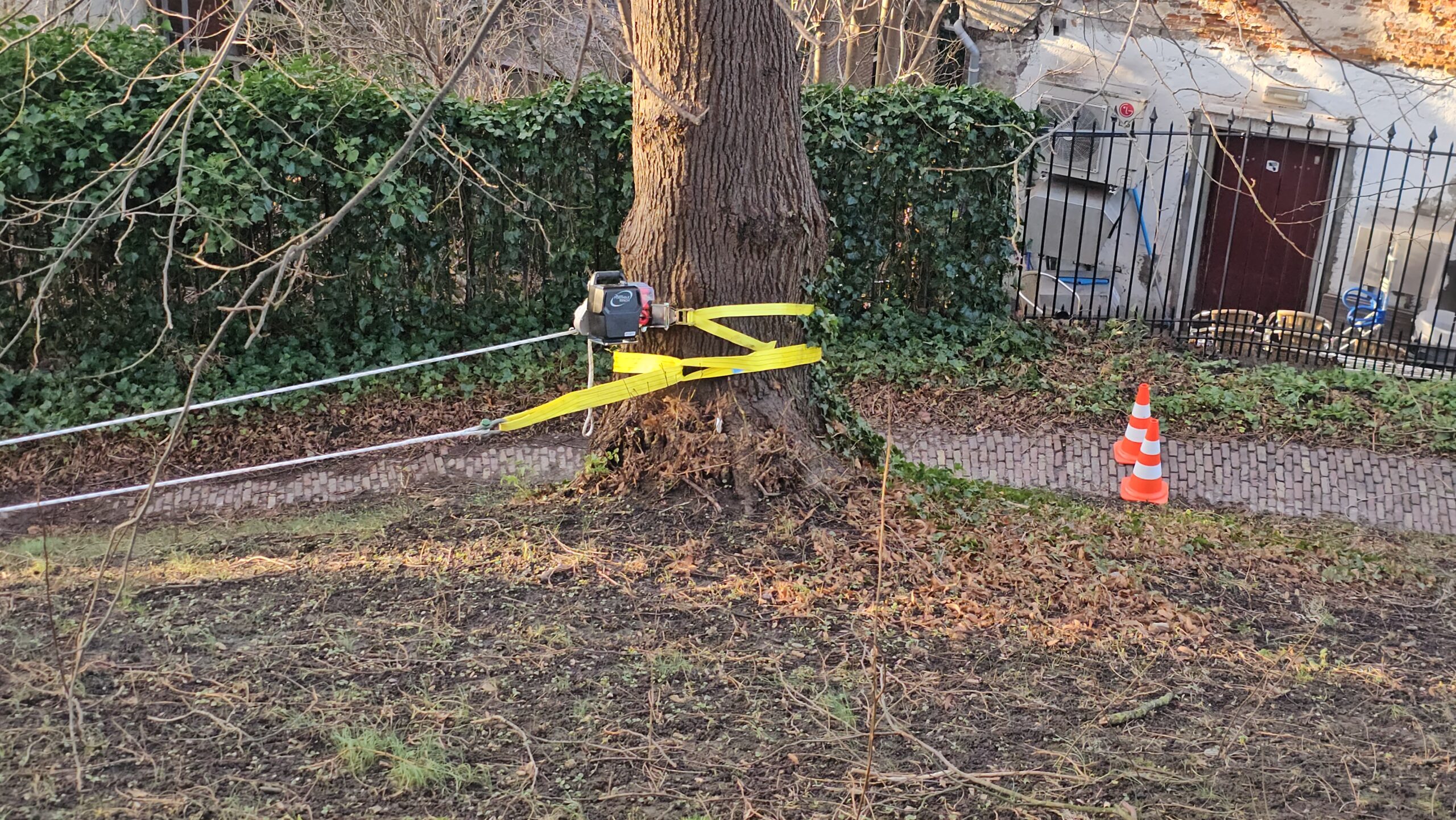 Om de veiligheid voor de omgeving voor de komende tijd te garanderen, is woensdag een zogenaamde trekproef uitgevoerd op de beuk. Er wordt gemeten hoe stabiel de beuk nog in de grond staat. Met touwen en spanbanden is de test door een gespecialiseerd bedrijf uitgevoerd. Een aantal keer trok een lier met een kracht van 1.600 kilo aan de onderzijde van de beuk. Geavanceerde meetapparatuur registreerde hoeveel het onderste stuk van de stam daarbij bewoog.