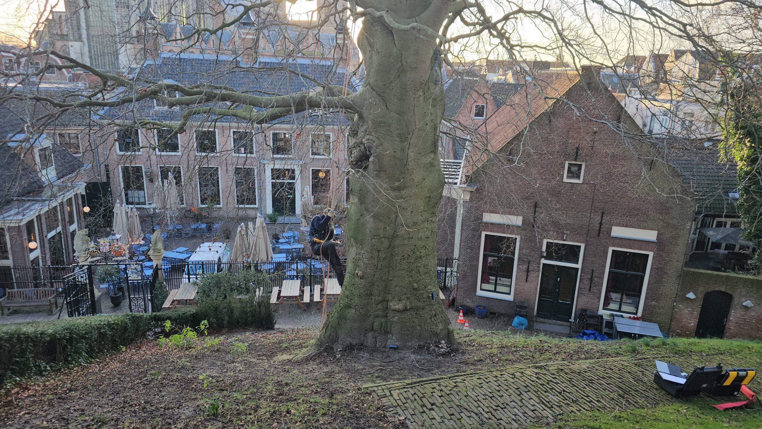 Aan de hand van deze meetgegevens wordt een rapport opgemaakt met een advies over de toekomst van de beuk is. Vast staat dat de beuk op termijn gekapt moet worden, want eenmaal geïnfecteerd met de zwam betekent het einde van de boom. Dat is op zich ook niet zo gek, want de boom is waarschijnlijk al zo’n tweehonderd jaar oud. “We hebben een afbeelding van de boom uit 1835 en toen was het nog een klein boompje”, vertelt bomendeskundige Roelant Jonker van de gemeente Leiden. “Dat is uit de tijd dat hier nog hertjes rondliepen.”