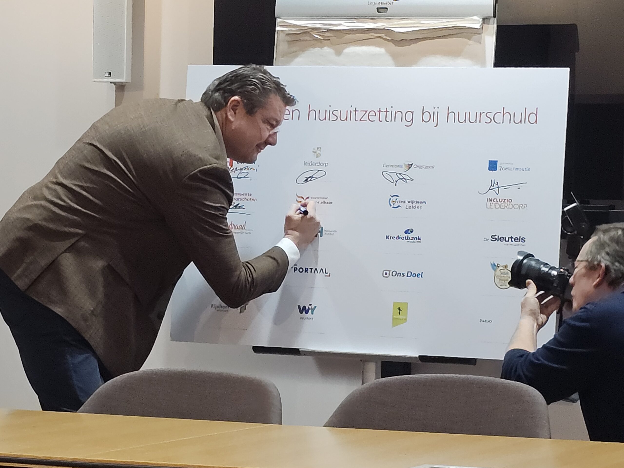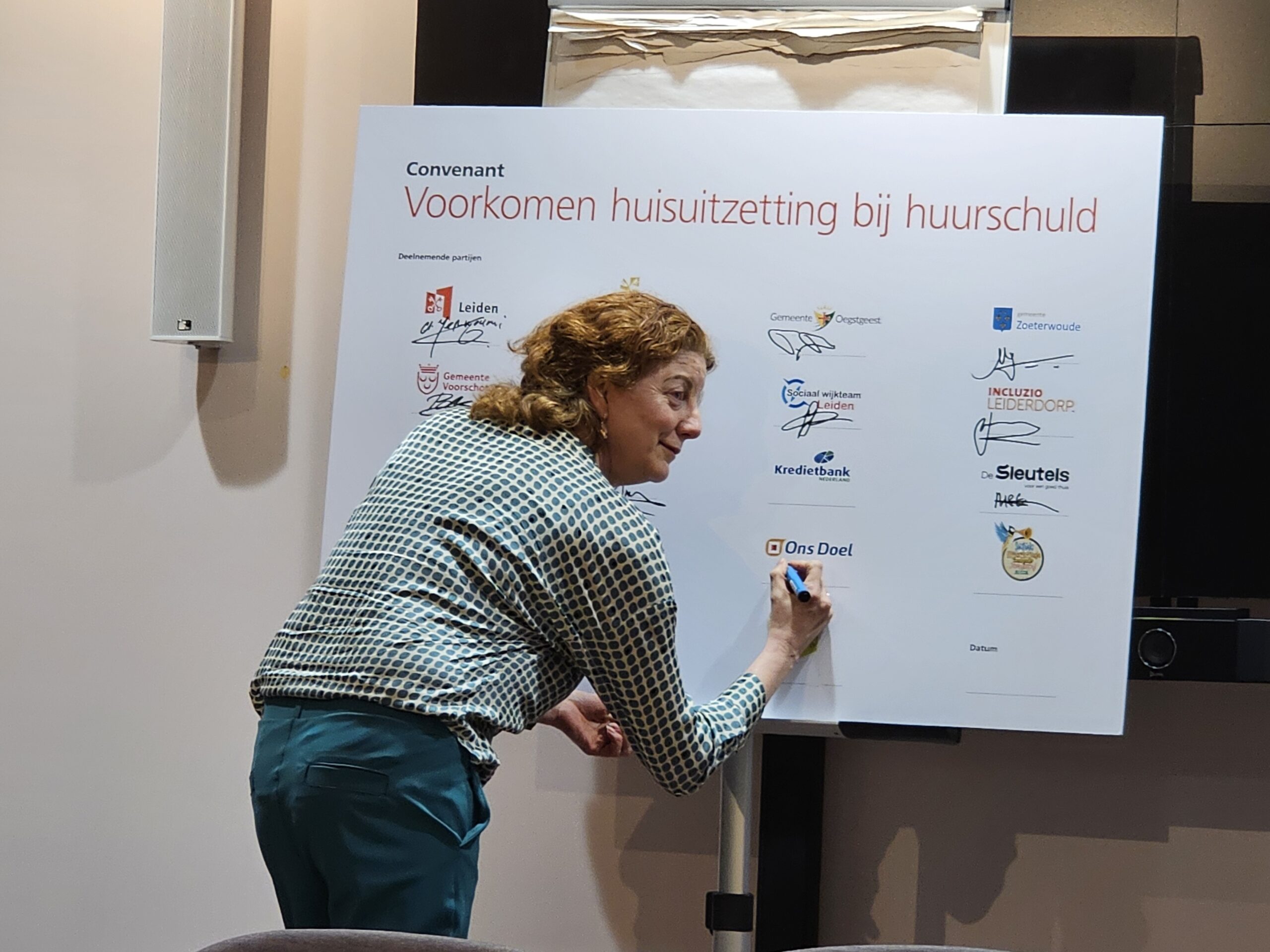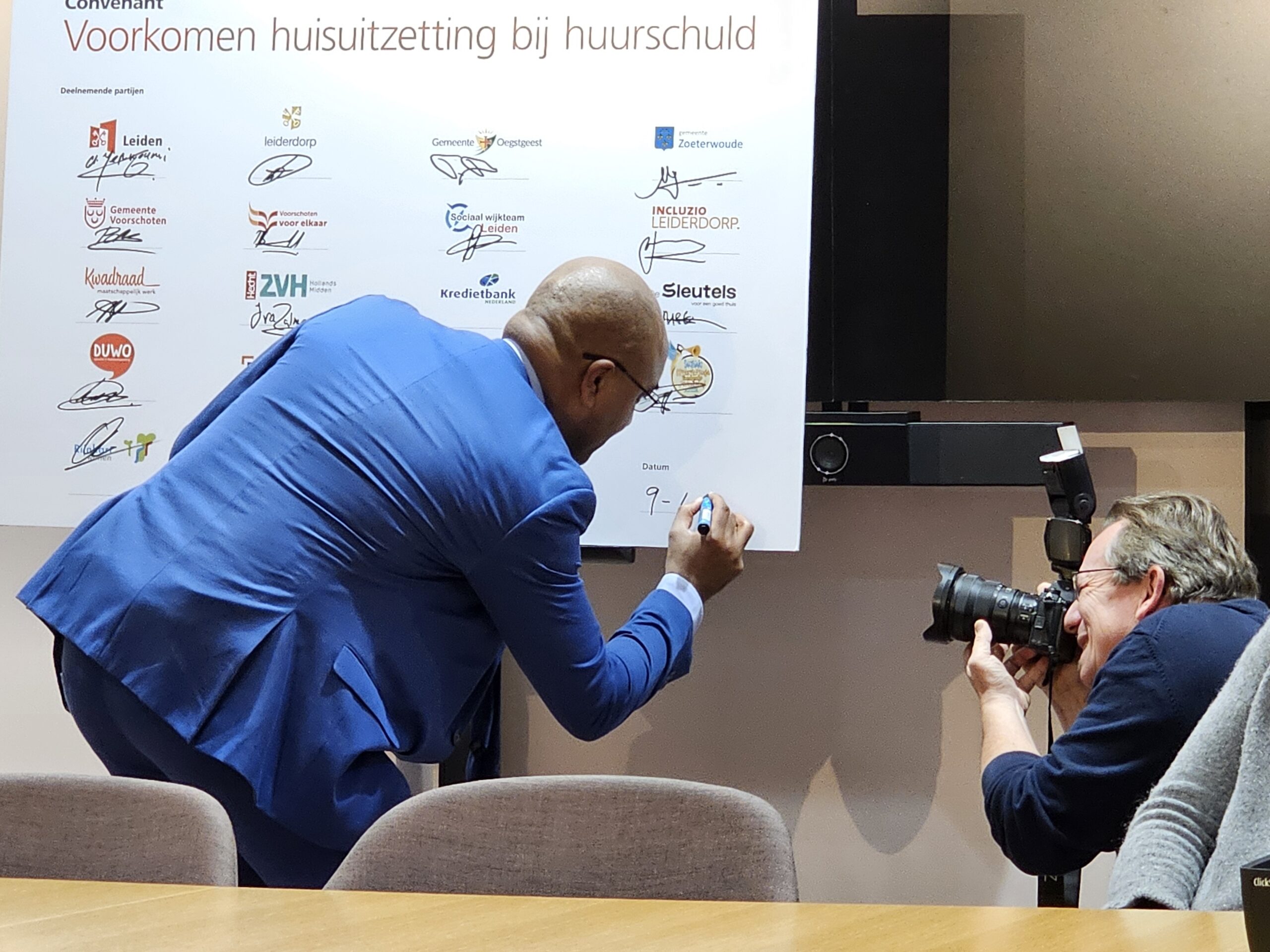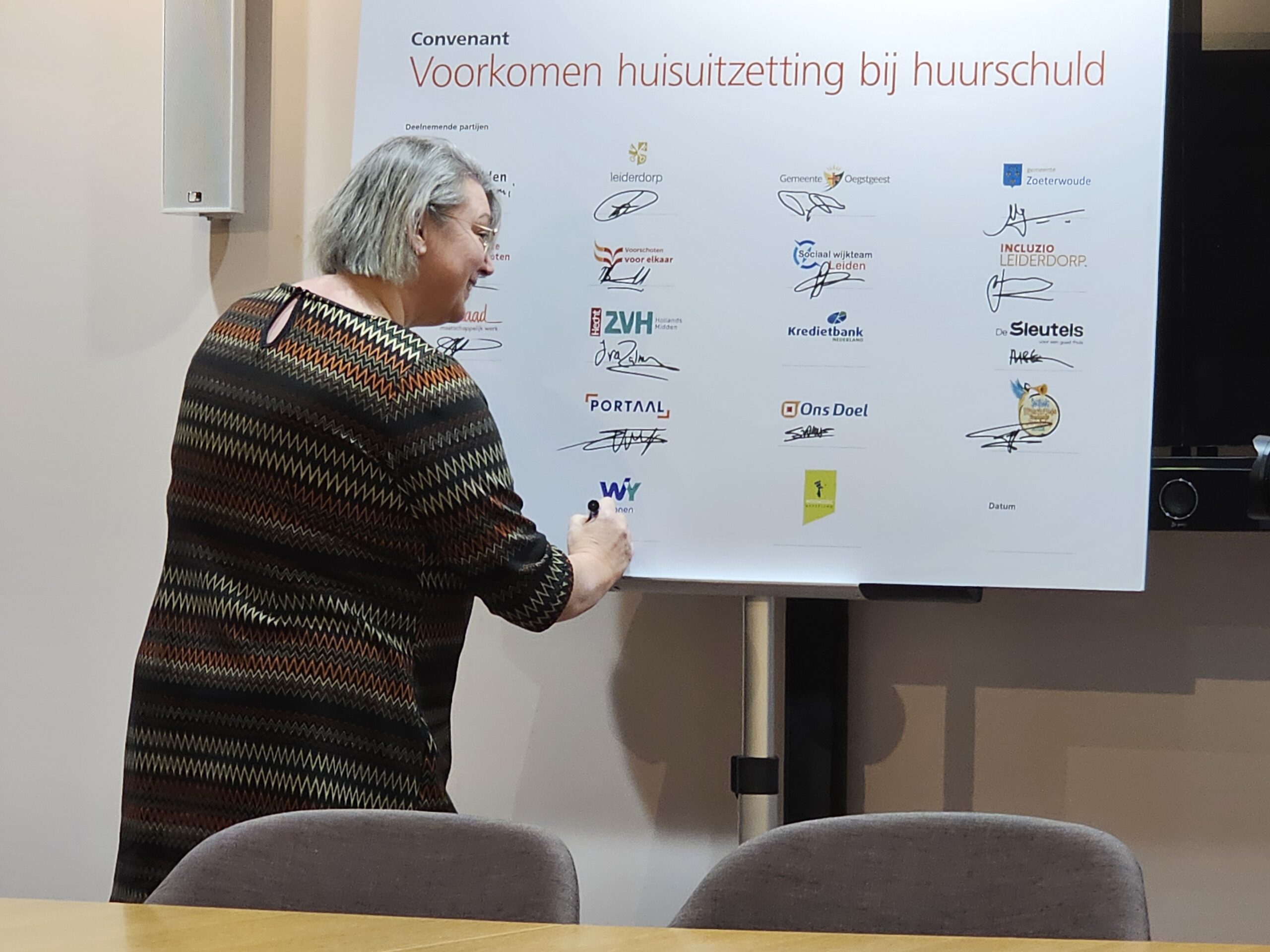 Naast een aantal maatschappelijke organisaties hebben donderdagmiddag ook alle woningcorporaties die in onze regio actief zijn hun handtekening onder de afspraken gezet. Naast de algemene Leidse corporaties De Sleutels en Ons Doel zijn dat ook studentenhuisvester DUWO en de Stichting Huisvesting Werkende Jongeren. Uit de regiogemeenten tekenden Rijnhart Wonen en WYwonen mee.