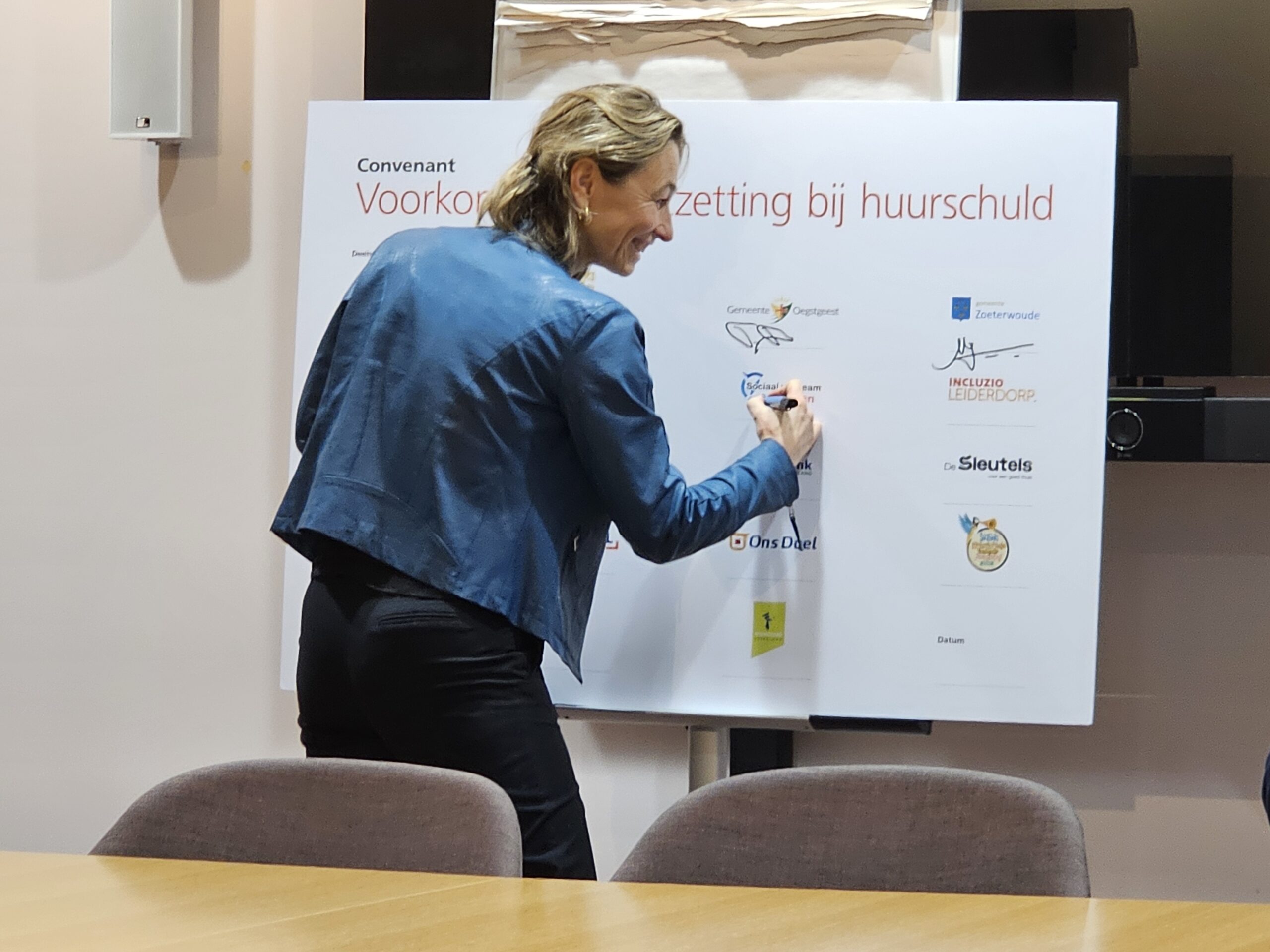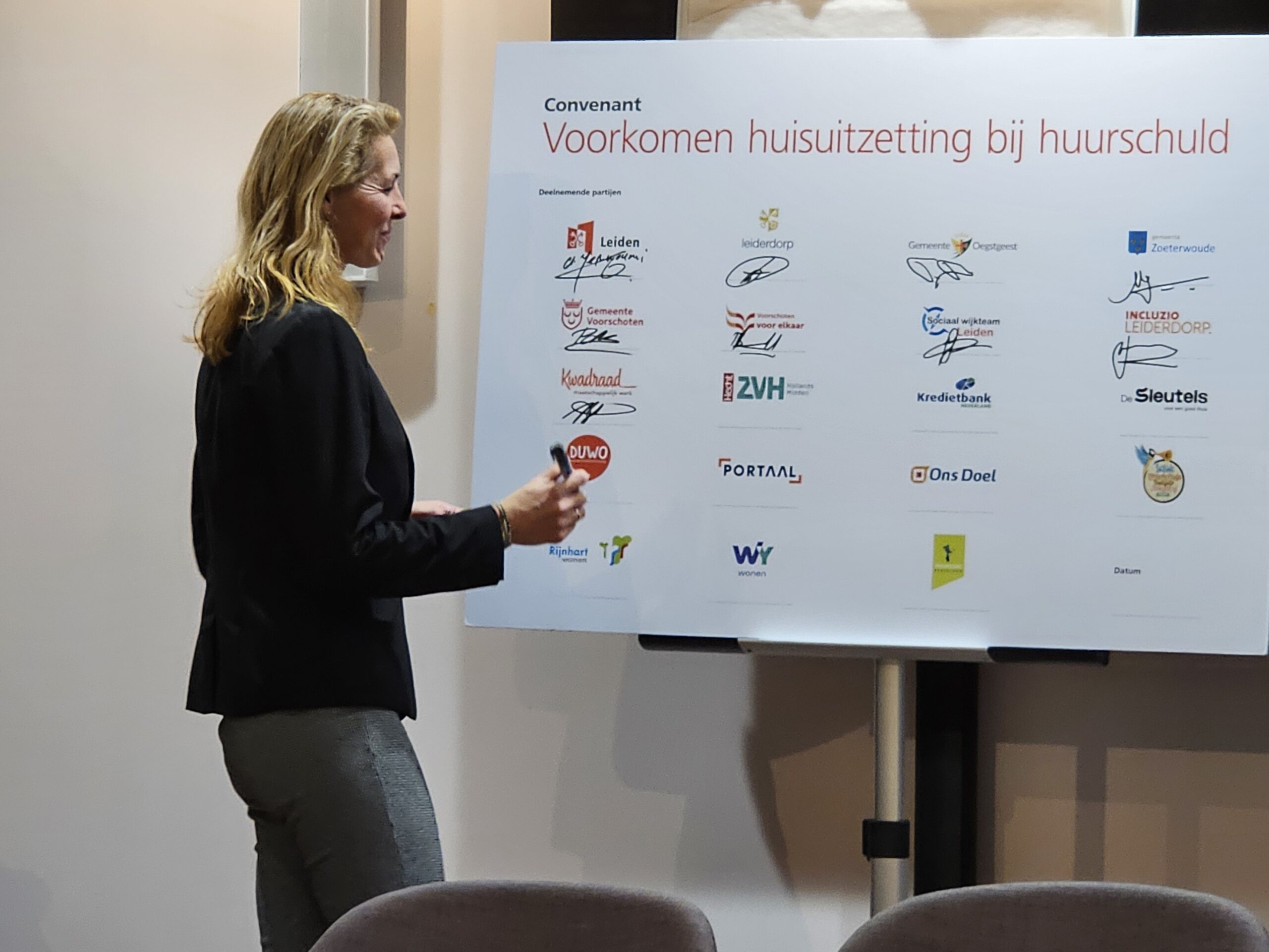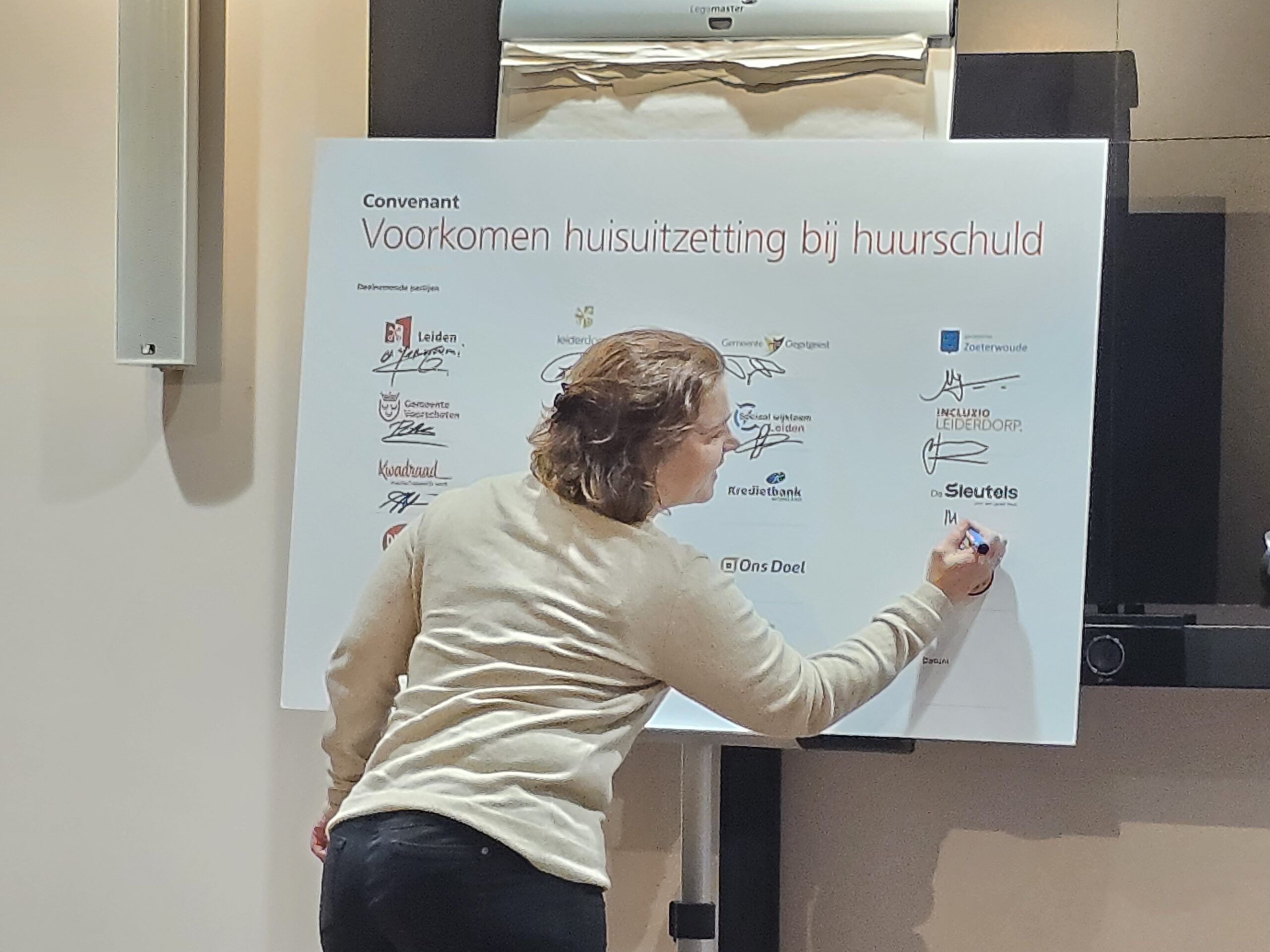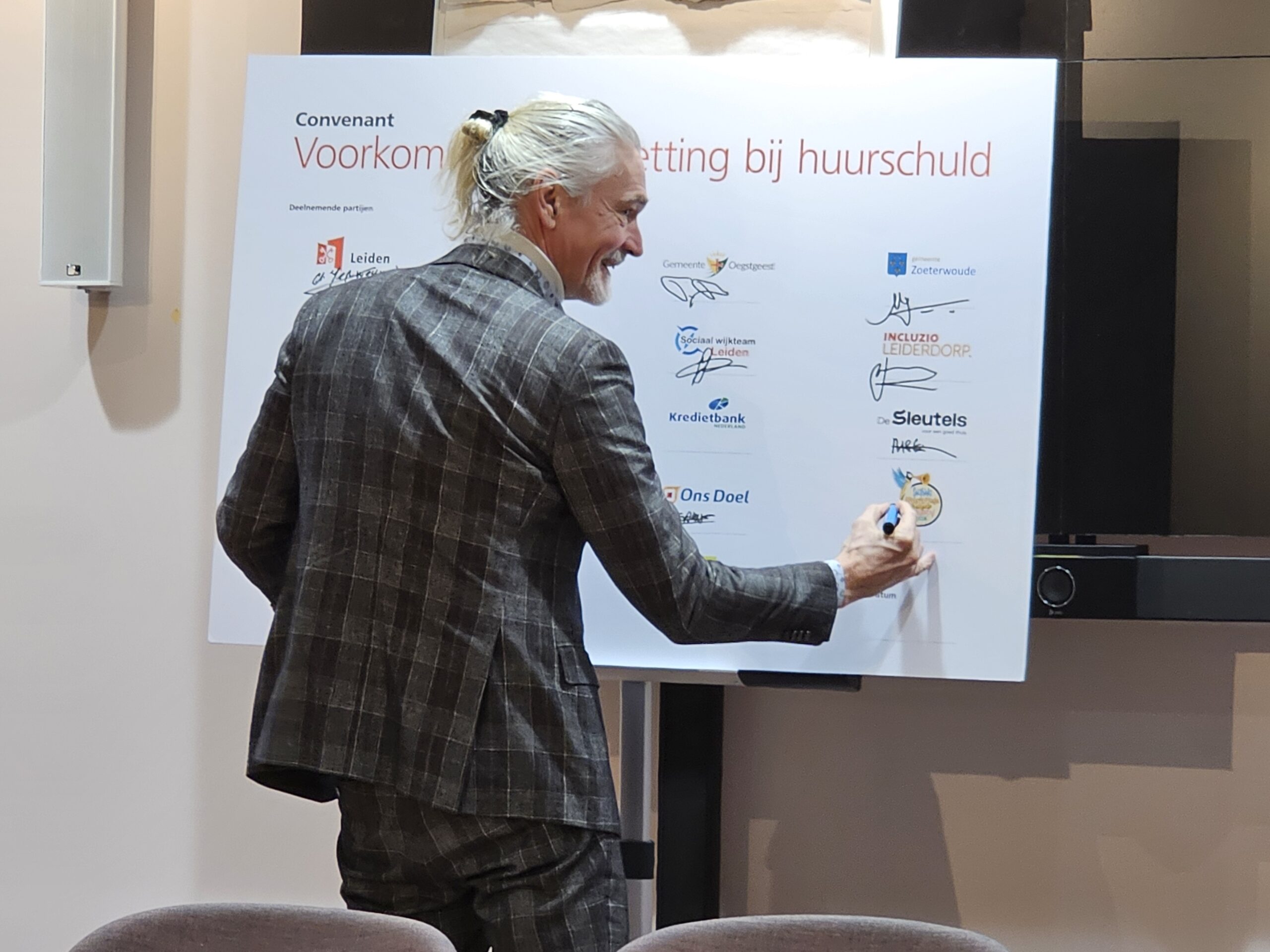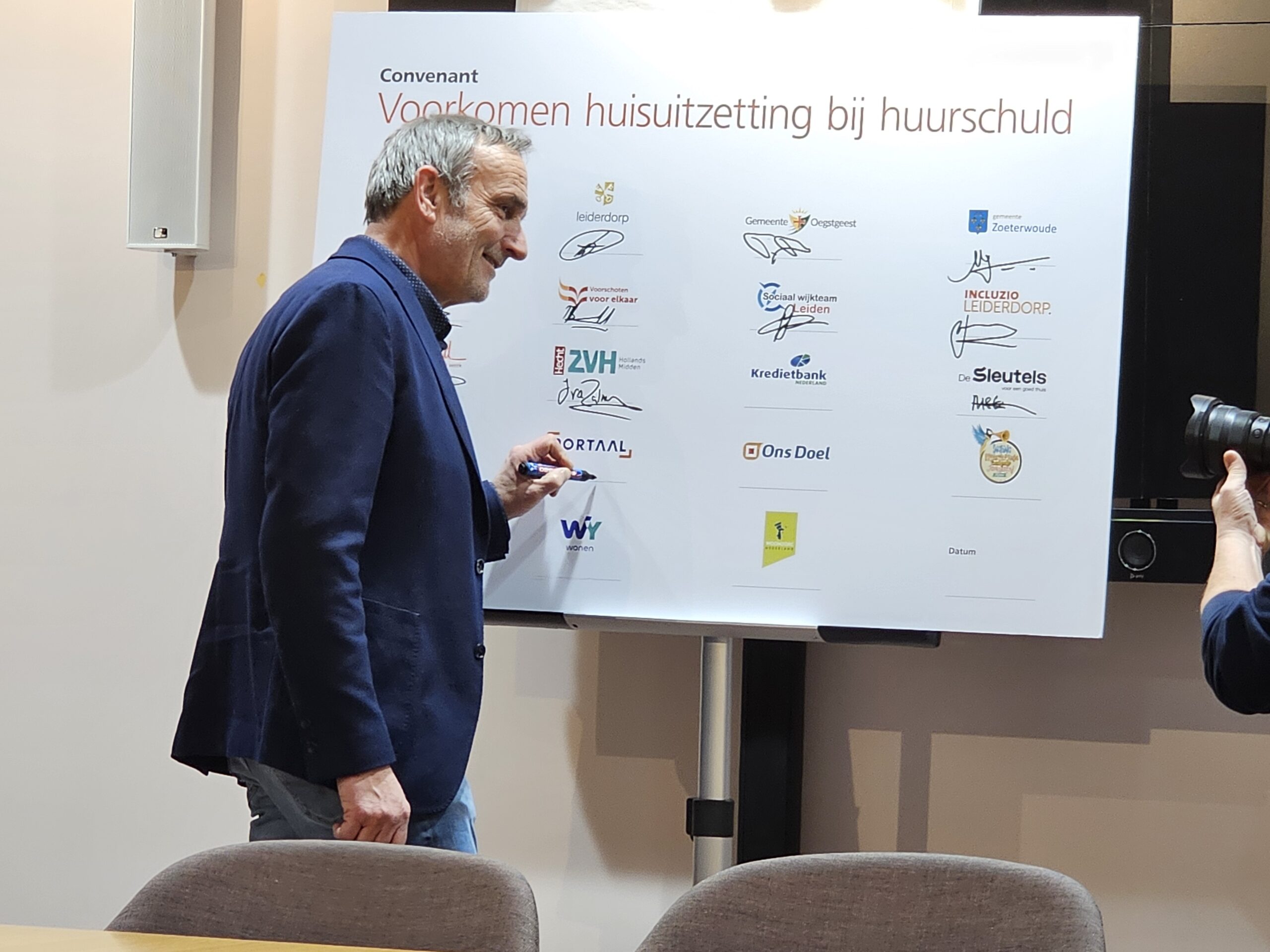 Naast een aantal maatschappelijke organisaties hebben donderdagmiddag ook alle woningcorporaties die in onze regio actief zijn hun handtekening onder de afspraken gezet. Naast de algemene Leidse corporaties De Sleutels en Ons Doel zijn dat ook studentenhuisvester DUWO en de Stichting Huisvesting Werkende Jongeren. Uit de regiogemeenten tekenden Rijnhart Wonen en WYwonen mee.