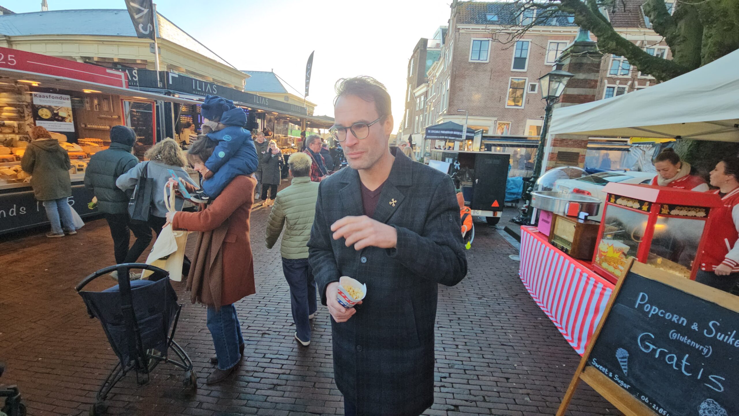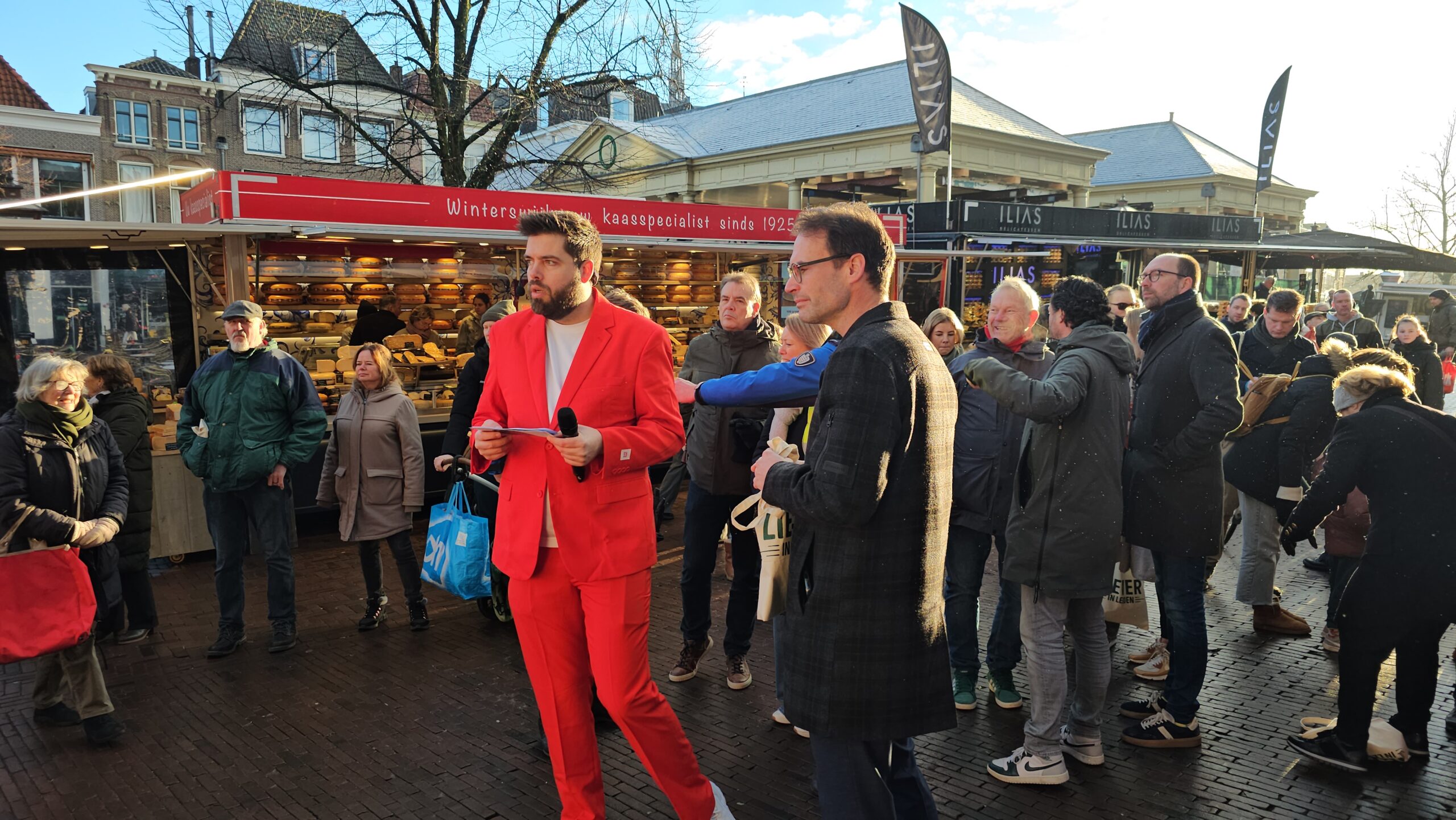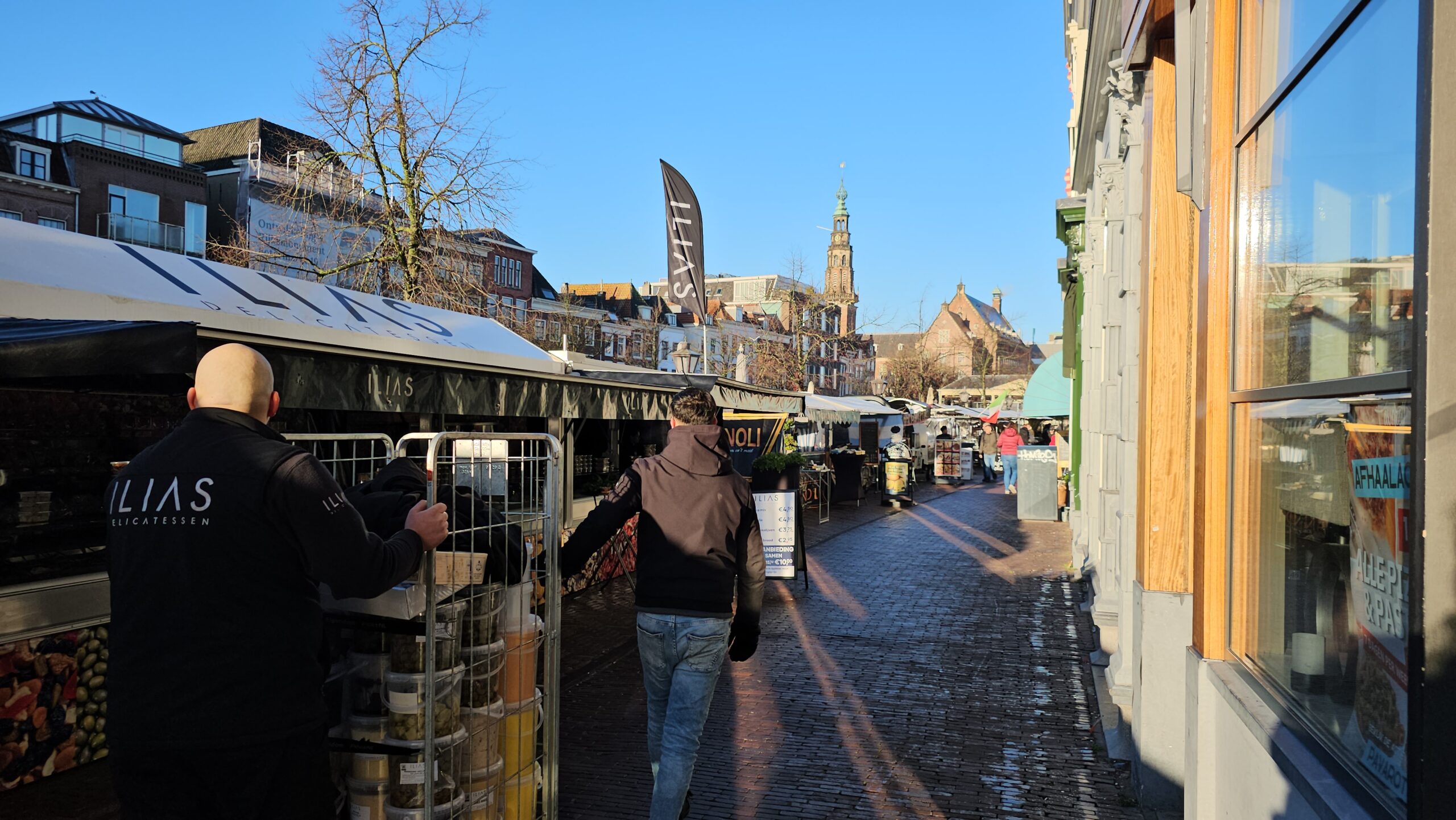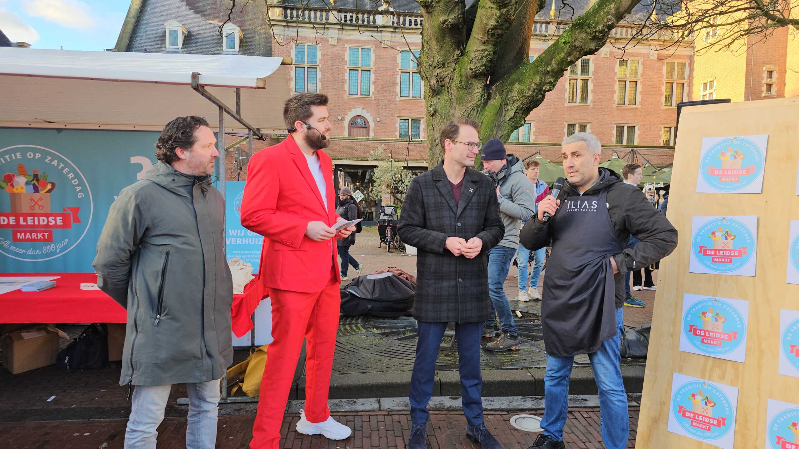Burgemeester Peter Heijkoop en voorzitter Soufian El Marsse van de Marktcommissie over de opnieuw ingedeelde zaterdagmarkt.