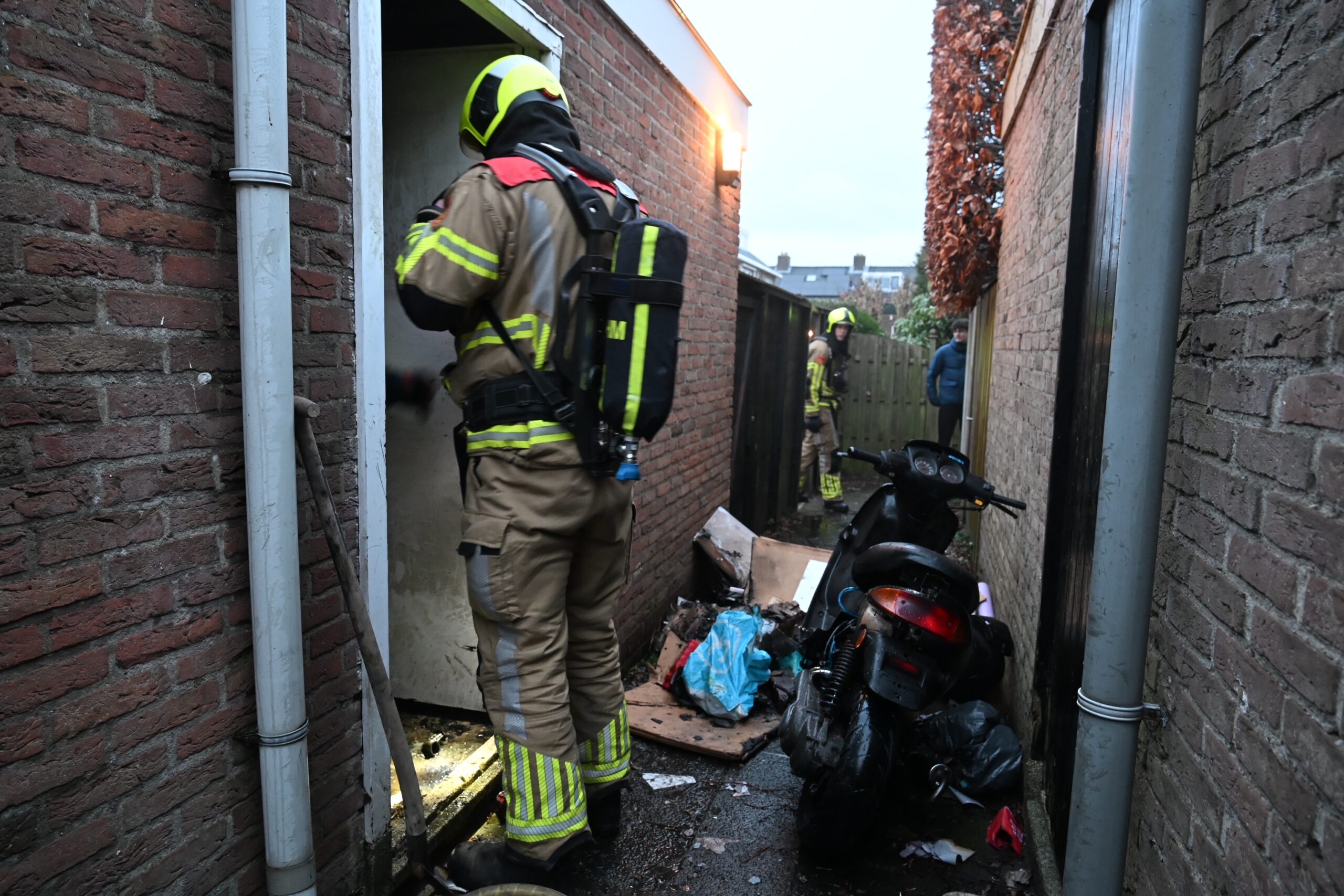 In een schuur van een woning aan de Strawinskilaan in Voorschoten is zondagmiddag rond 17.00 uur door nog onbekende oorzaak brand uitgebroken. Daardoor vatte ook een scooter vlam. In de schuur gingen meerder opgeslagen spullen verloren.