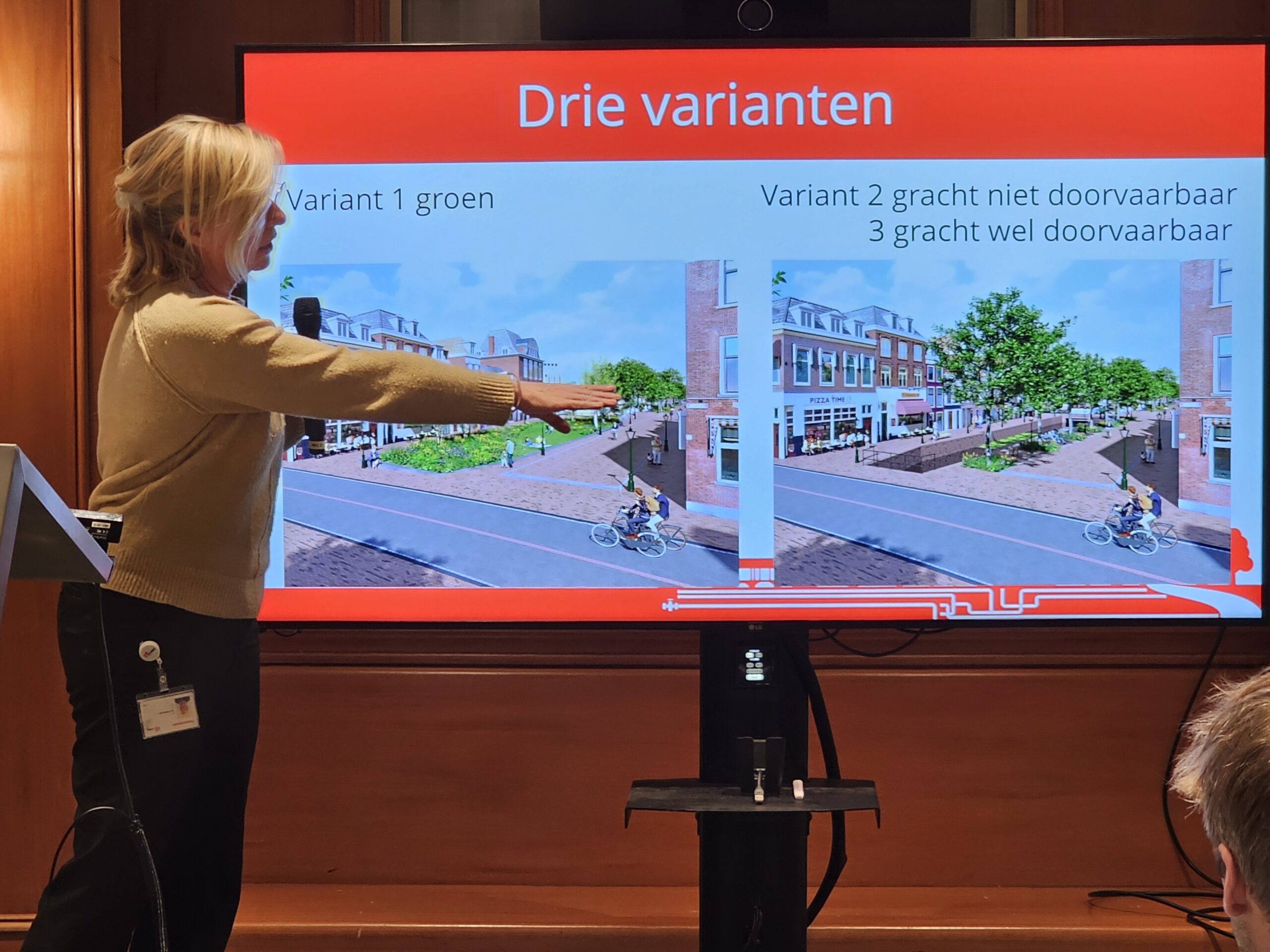 De eerste optie is het vergroenen van de bestaande straat. De tweede en de derde gaan allebei over het weer openmaken van de gracht. Het verschil tussen deze twee opties is dat in het ene geval het water alleen weer zichtbaar wordt gemaakt, terwijl in de meest vergaande variant het ook weer doorvaarbaar gemaakt wordt. Die laatste optie is wat de meeste mensen graag willen, maar het is ook de duurste.