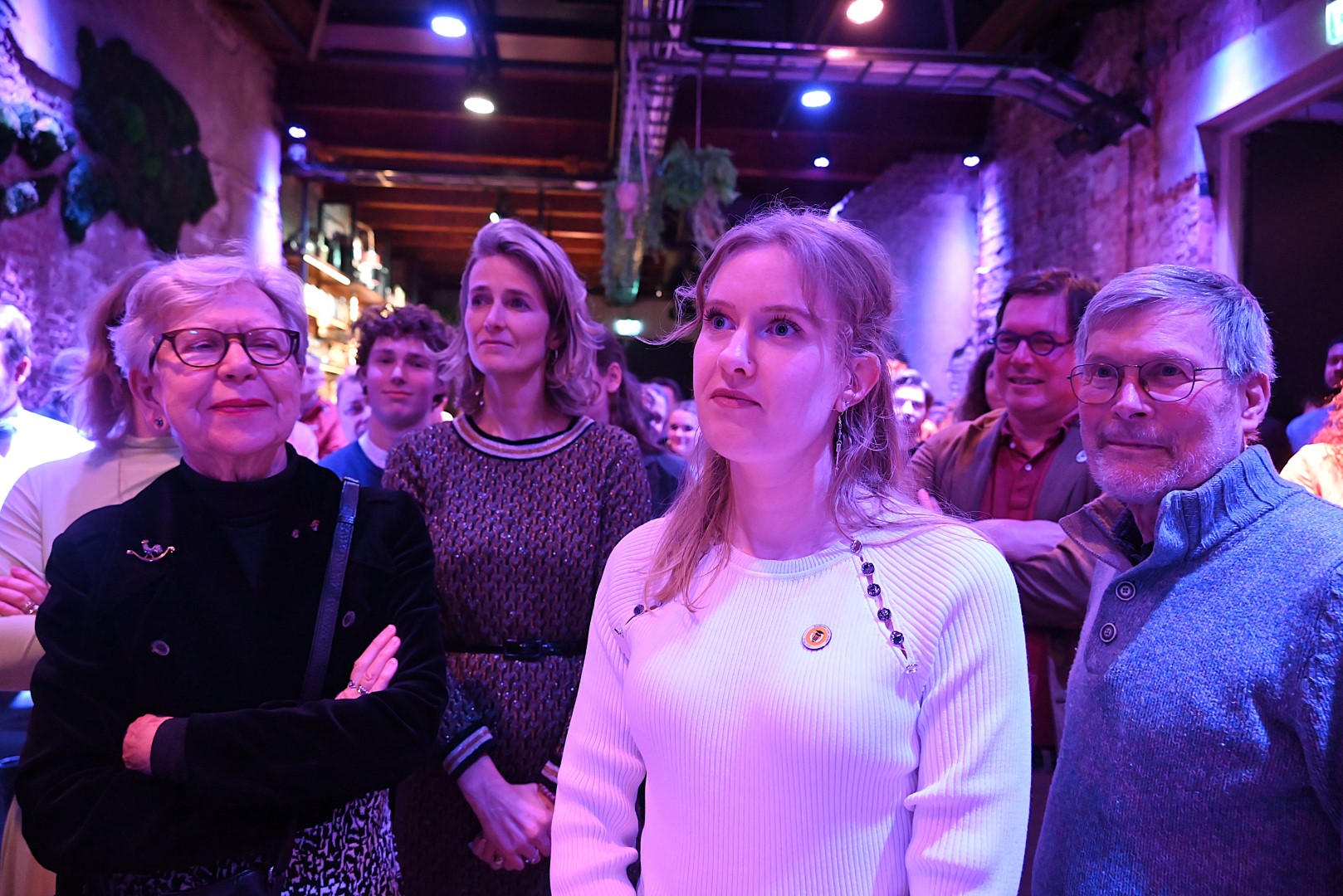 Voor Jordan is een nieuwjaarsborrel niet haar natuurlijke habitat, zo geeft ze zelf toe nadat ze het beeld van het duimpje omhoog kreeg van Van der Velden. “Ik ben de gemeentepolitiek ingegaan om kennis over de energietransitie te delen. Er is heel veel kennis in de stad, vraag anderen om je te helpen.”