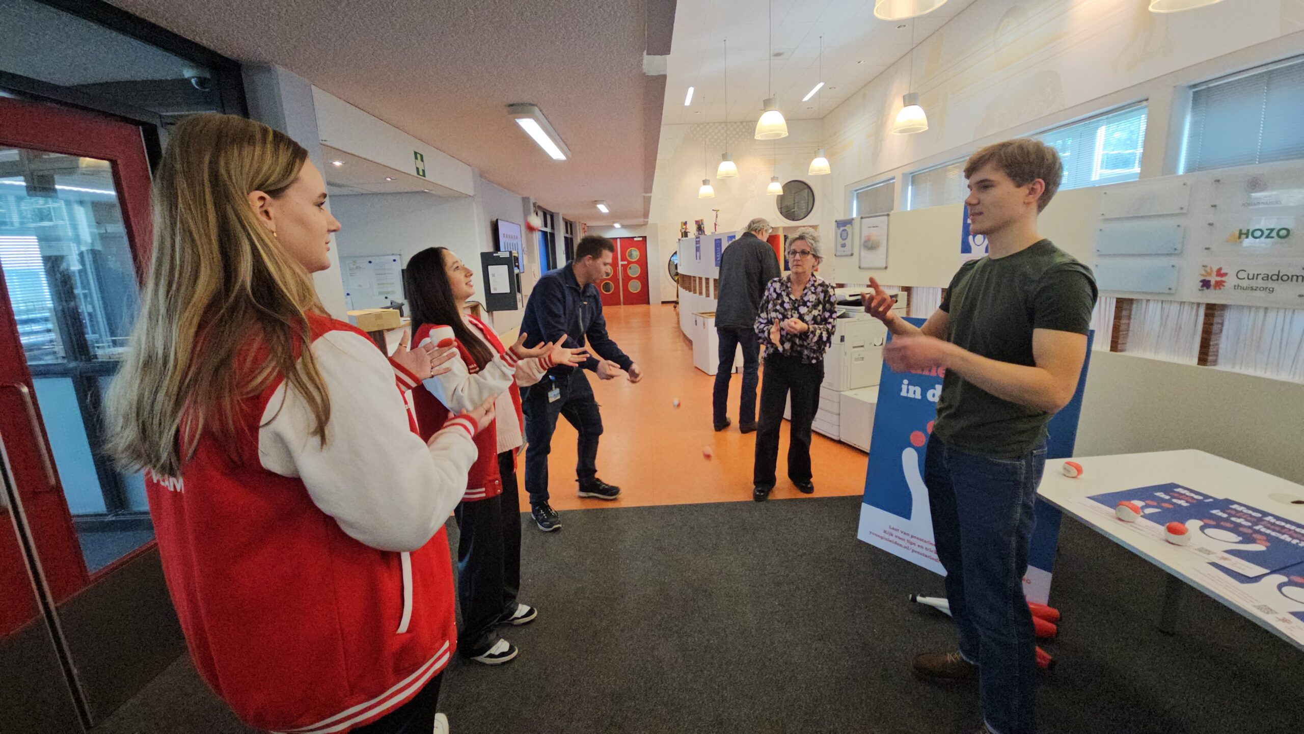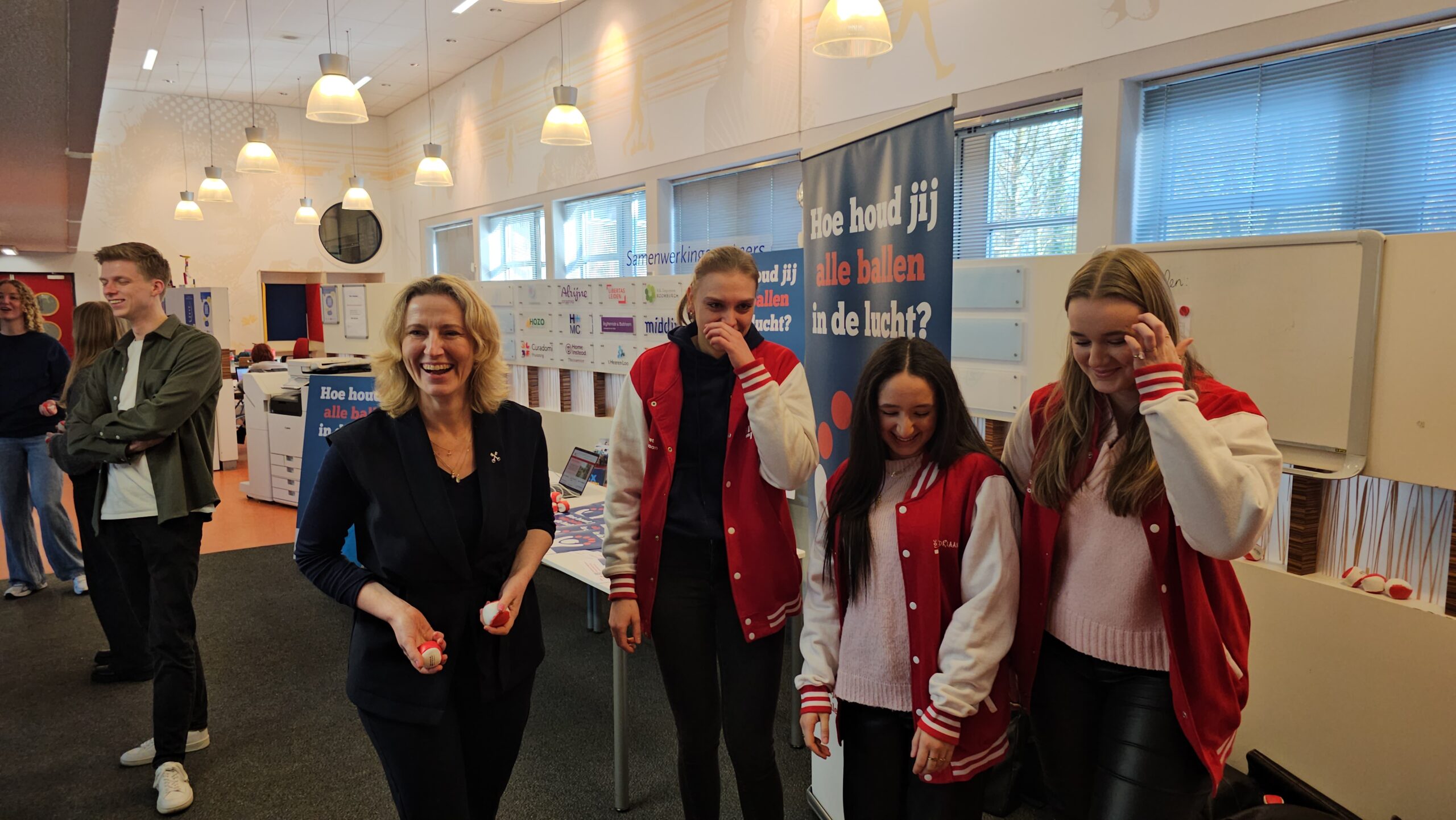 Bij ROC Mondriaan aan de Vondellaan in Leiden werd donderdagmiddag stilgestaan bij die negatieve prestatiedruk. Met het initiatief ‘Hoe houd jij alle ballen in de lucht?’ trapten trainees van DisGover de campagne af die studenten moet wijzen op alle tools die er in Leiden worden aangeboden. Ze zijn verzameld op de website YounginLeiden.nl die de komende tijd dan ook extra gepromoot gaat worden.