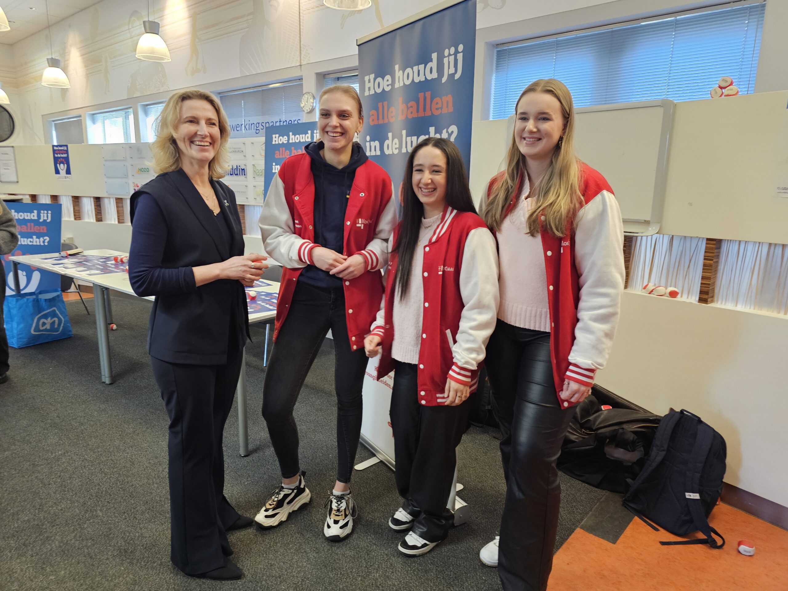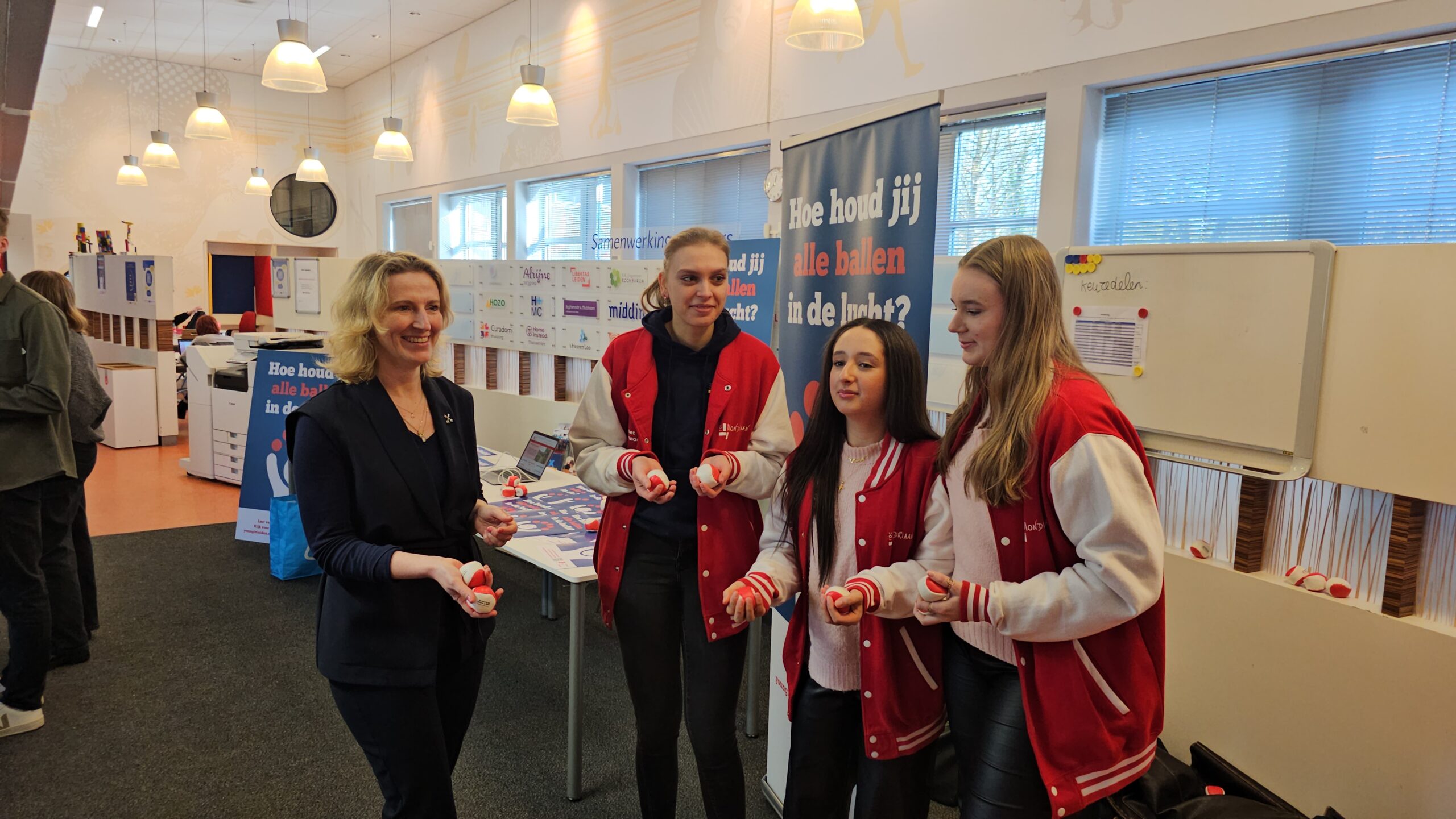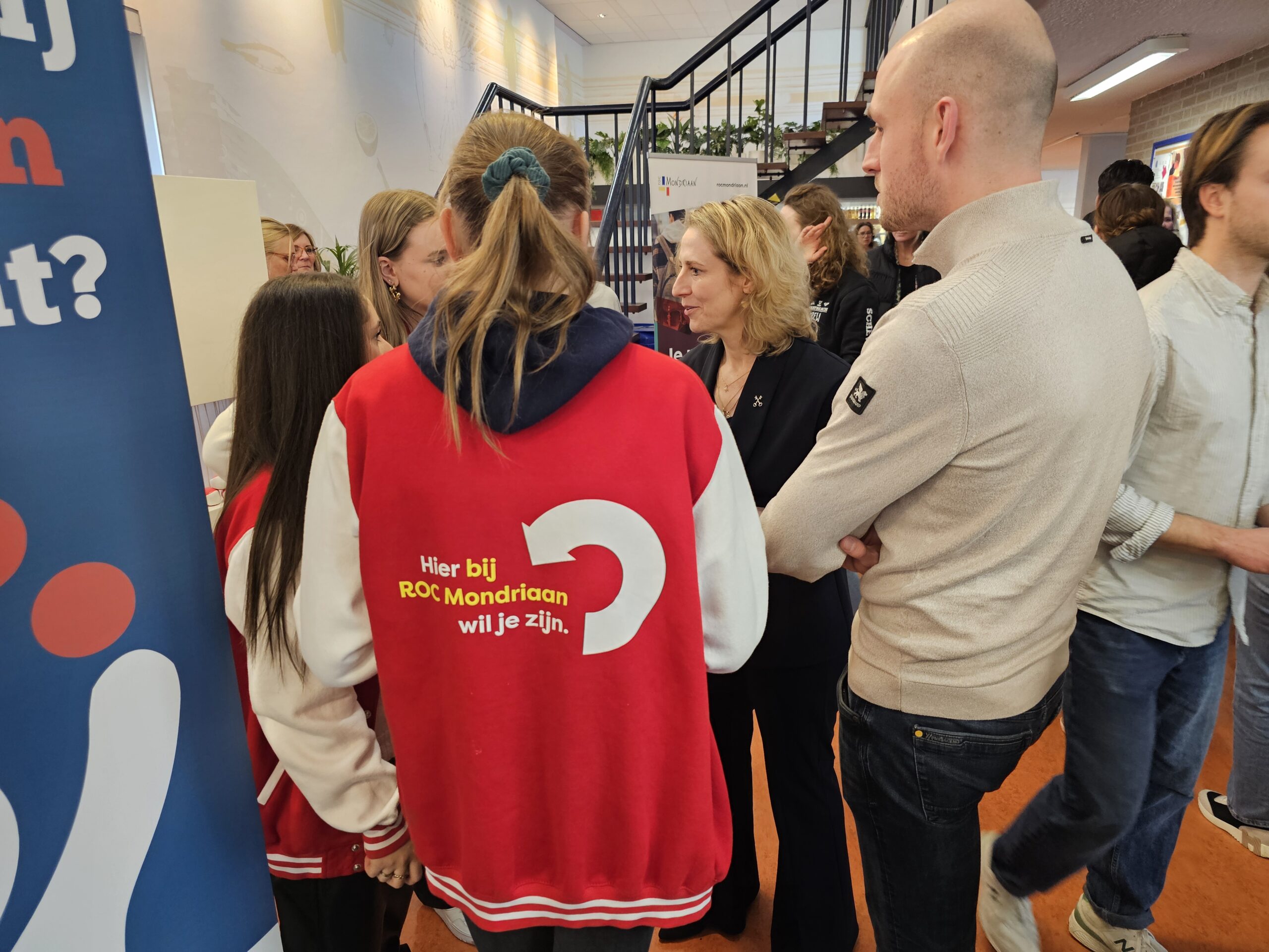 De nieuwe kenniswethouder Wietske Veltman kwam ook een kijkje nemen bij de campagnestart en ging uitgebreid in gesprek met een aantal studenten van ROC Mondriaan die stuk voor stuk bevestigen dat de druk soms wel erg hoog is. “School, stage, een bijbaantje en dan ook nog tijd zien te vinden om leuke dingen te doen met vrienden. Het is allemaal wel eens teveel”, vertellen bijna alle studenten.
