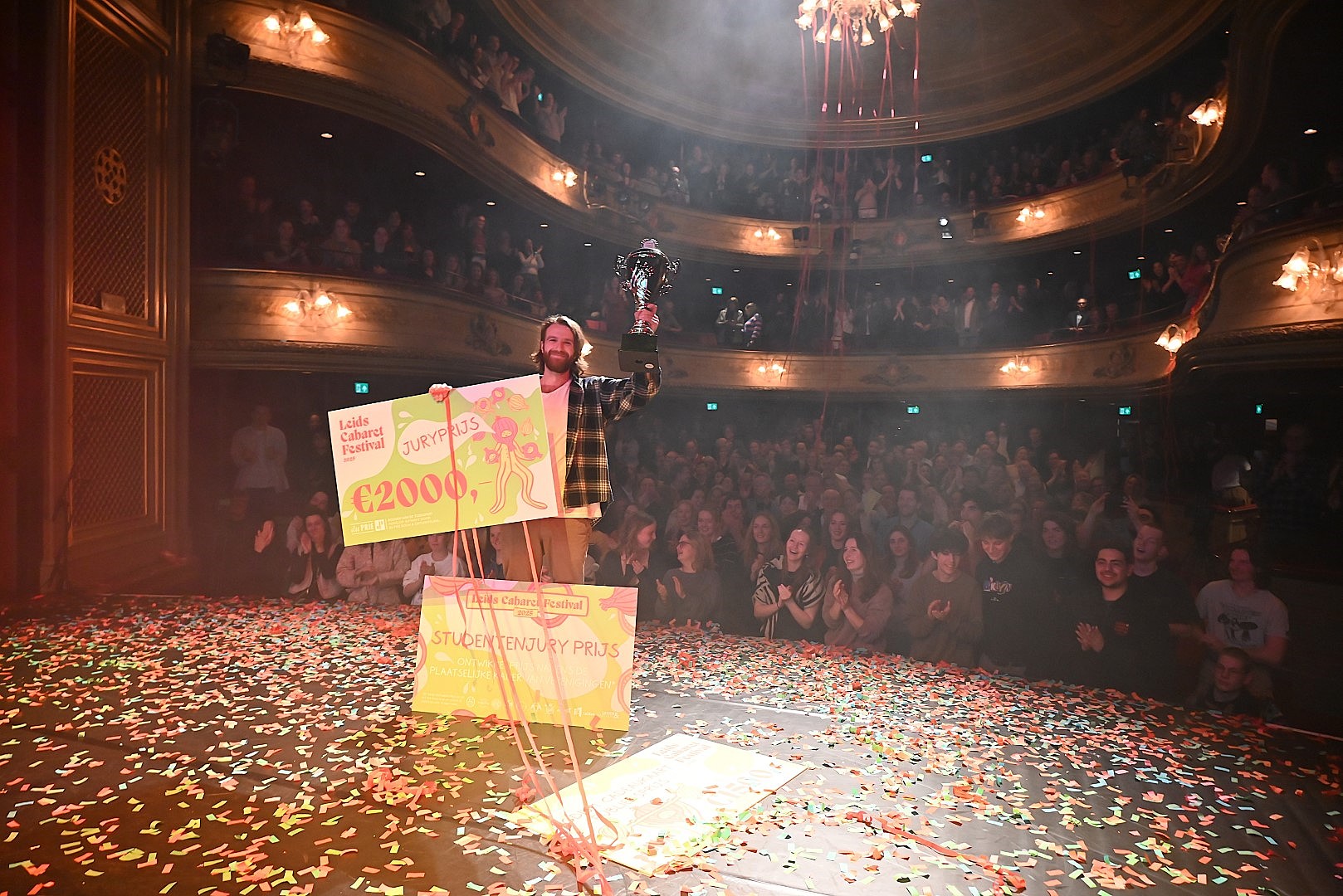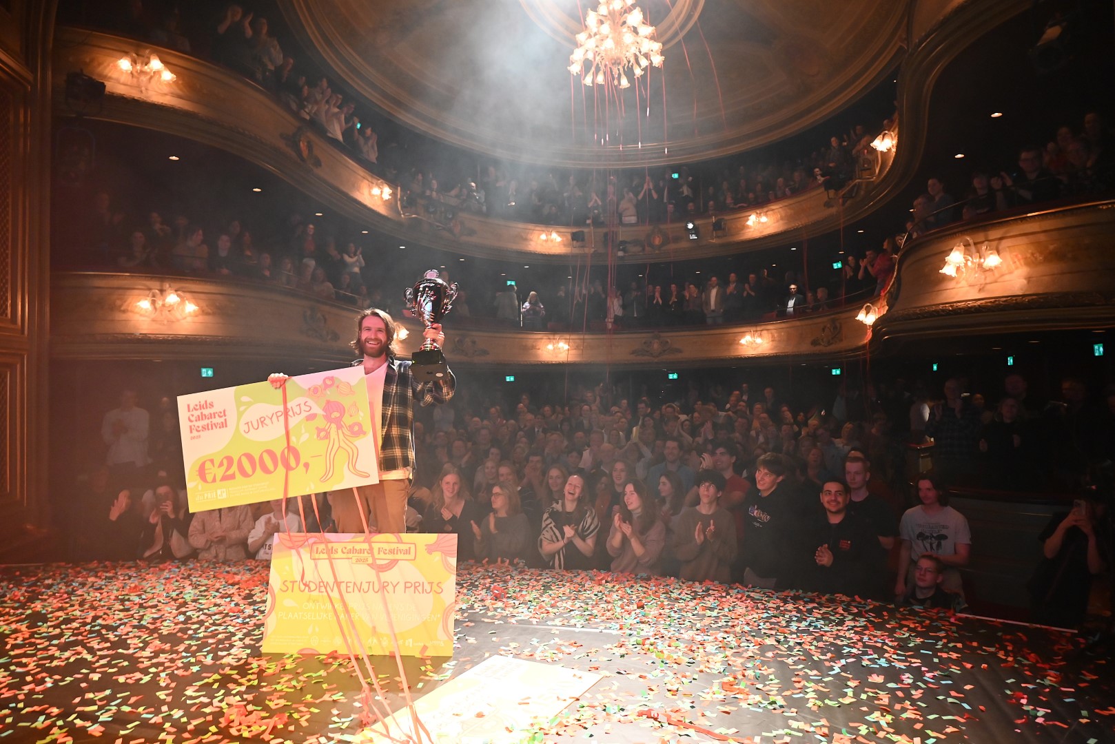Na een geweldige en spannende droomfinale met drie topcabaretiers sleepte David van Rosmalen zowel de studentenprijs, publieksprijs als ook de juryprijs in de wacht.