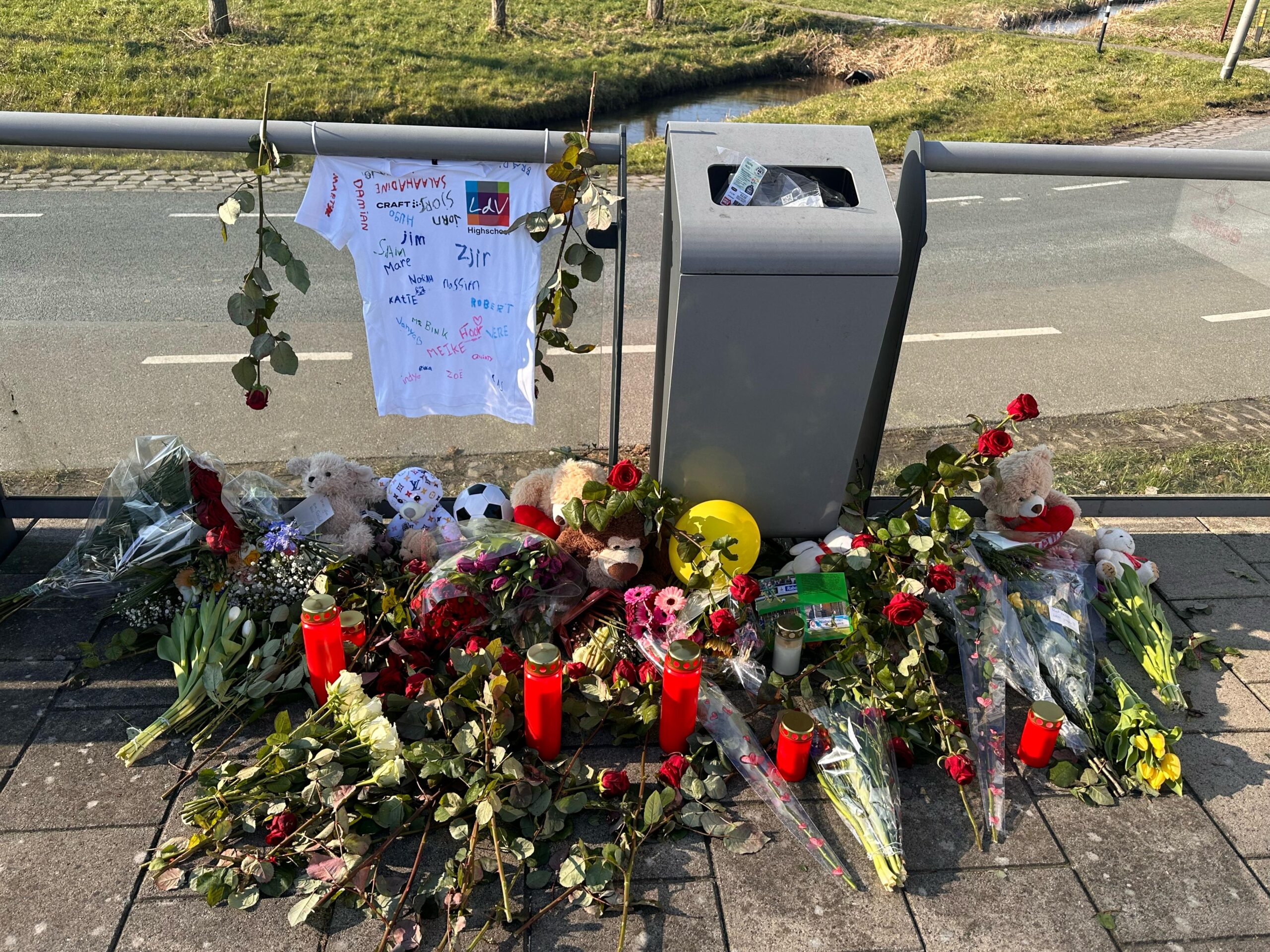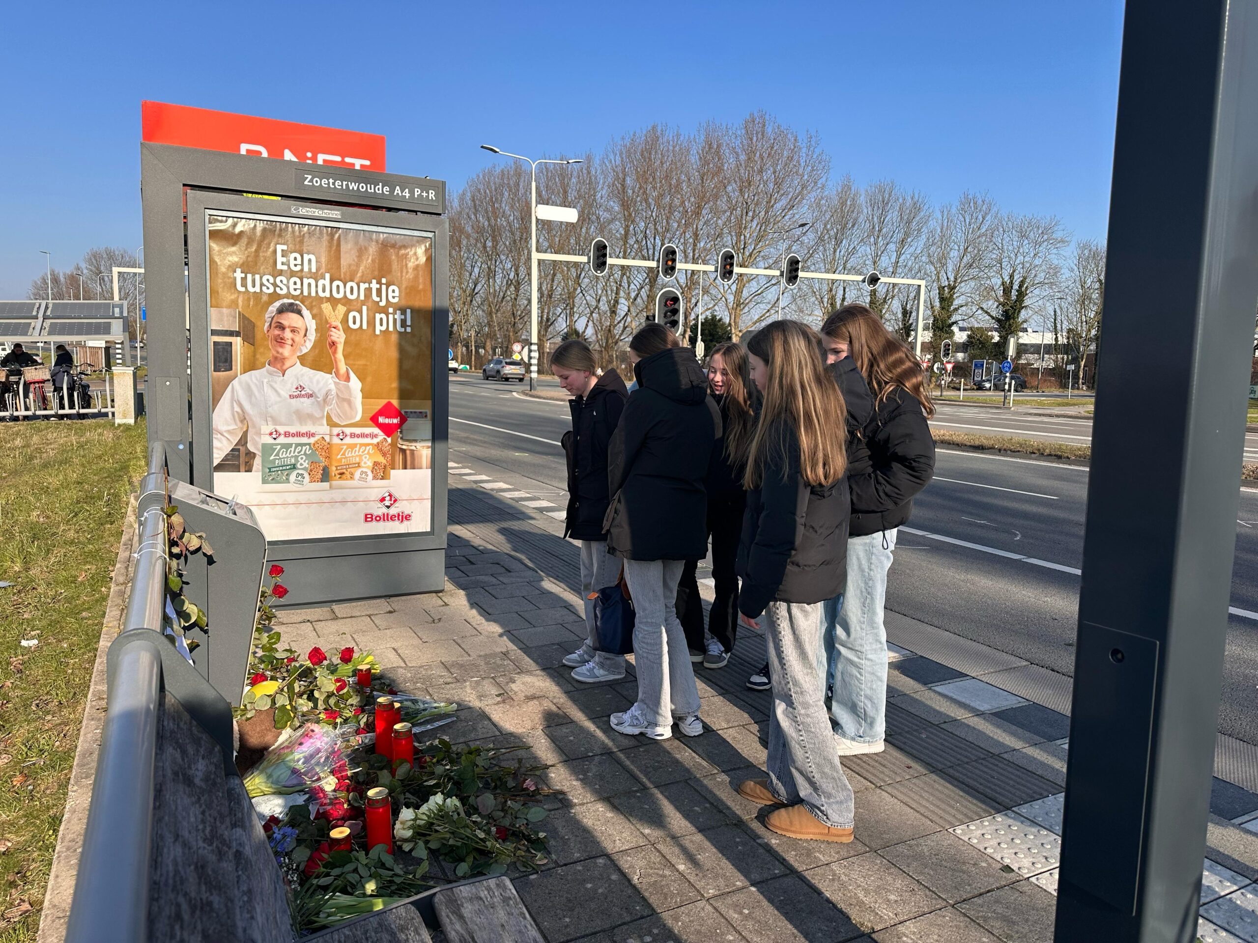 Enkele tientallen mensen hebben maandagmiddag de 13-jarige Raphael uit Zoeterwoude herdacht. Op de plek waar het ongeval plaatsvond, liggen bloemen en knuffels. Verkeersregelaars hebben op verzoek van de gemeente alles in goede banen geleid.