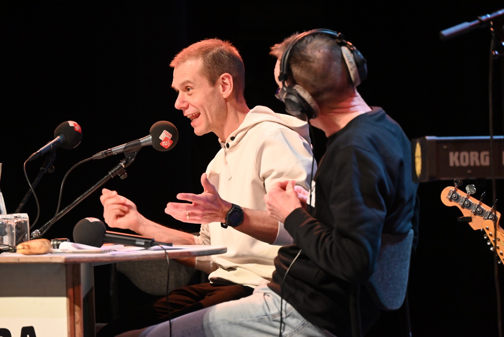 Naast het cabaret en gasten waaronder Klaas van Eerden en Ruben van Haften over de podcast ‘Na het applaus’, Ingrid de Bruijn en Bram Langeveld over fossielen op het strand, BNR verslaggeefster Michal van der Toorn over haar podcast ‘Make Europa great again’ en Karim Amghar die een boek schreef over onderwaardering van mbo’ers, was het voornamelijk Leiden wat de klok sloeg.