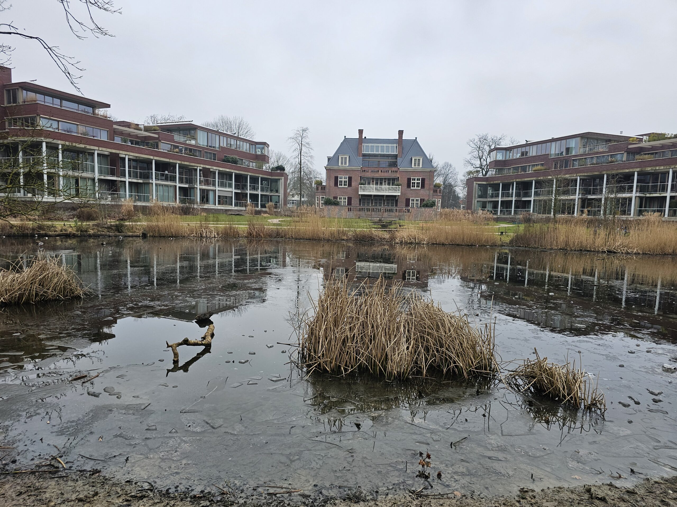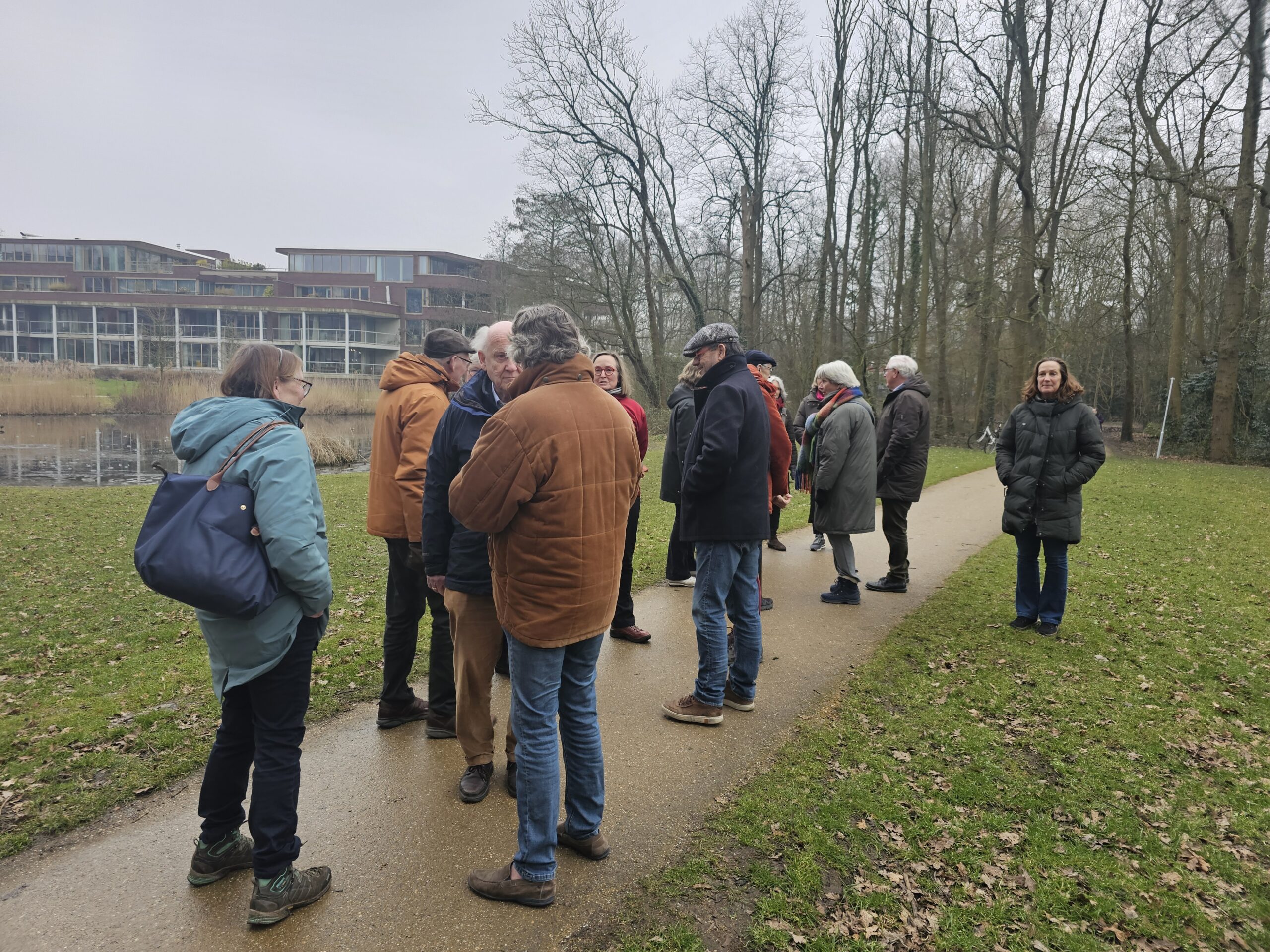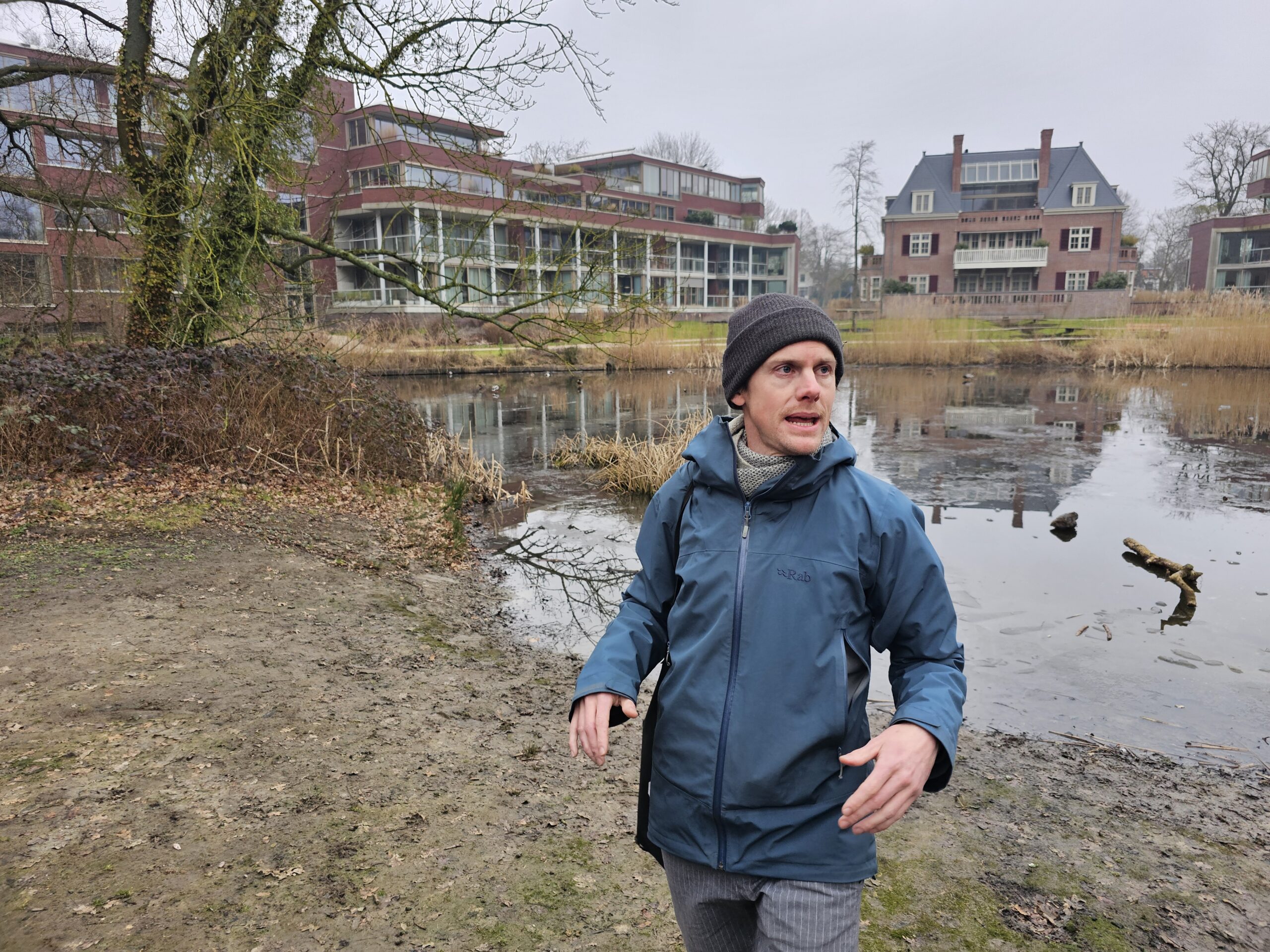 Over de nieuwe natuurvriendelijke oever van de vijver zijn de omwonenden wel te spreken. Die is echt een hele verbetering, al ligt het er nu nog wat modderig bij. “We gaan niks aanplanten, er zit voldoende zaad in de bodem”, weet Karin Bosma van de gemeente Leiden. “Dat komt de komende tijd vanzelf allemaal op.” Haar collega Moerland is ook enthousiast over de vijver. “Kijk daar bijvoorbeeld, die eend met die bruine zijkant en een groene kop. Dat is een slobeend. Best bijzonder om die hier te zien. En kijk… daar gaat een ijsvogel.”