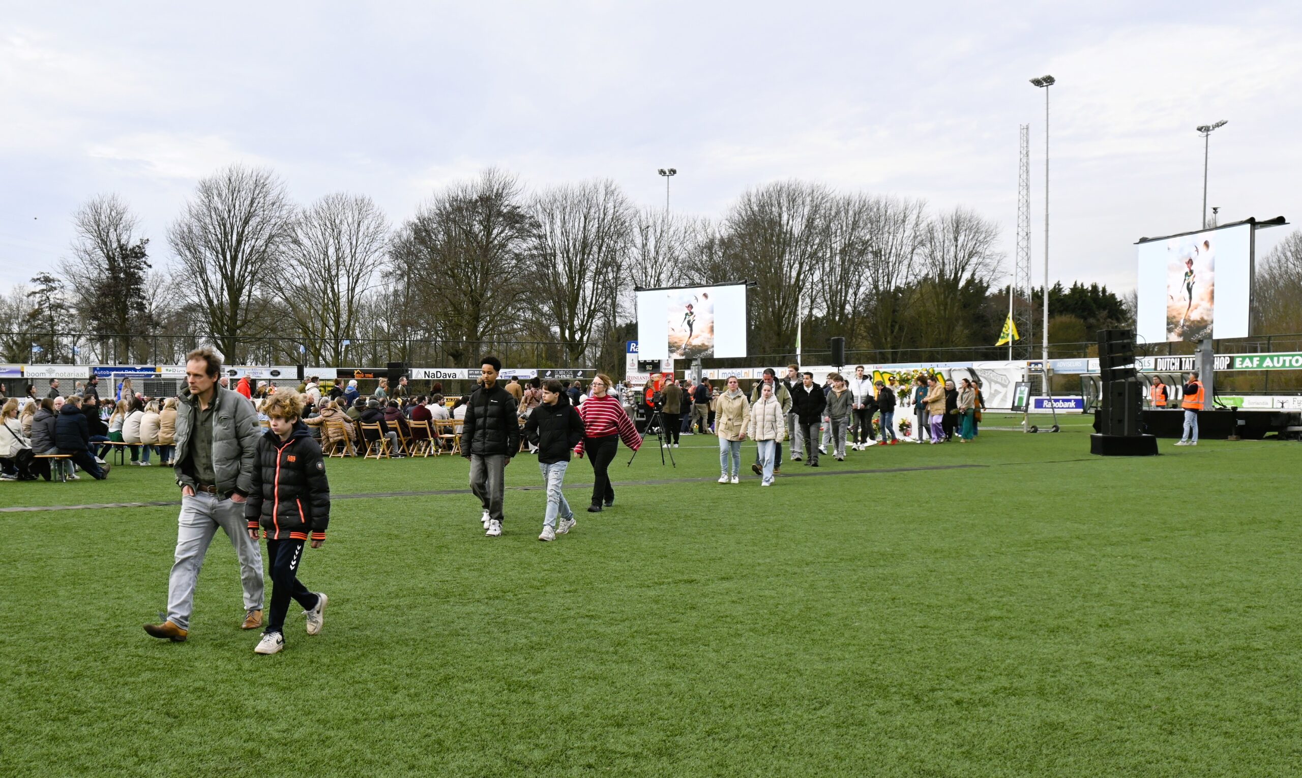 En weer een afscheidsdienst op het hoofdveld van Voorschoten’97. Ging het vorig jaar juni om de 22-jarige speler Luca van Zijl die werd doodgestoken, vrijdagmiddag werd tijdens een indrukwekkende bijeenkomst afscheid genomen van de 13-jarige Raphael Heijboer. Het jonge voetbaltalent kwam afgelopen weekend om bij een verkeersongeluk.