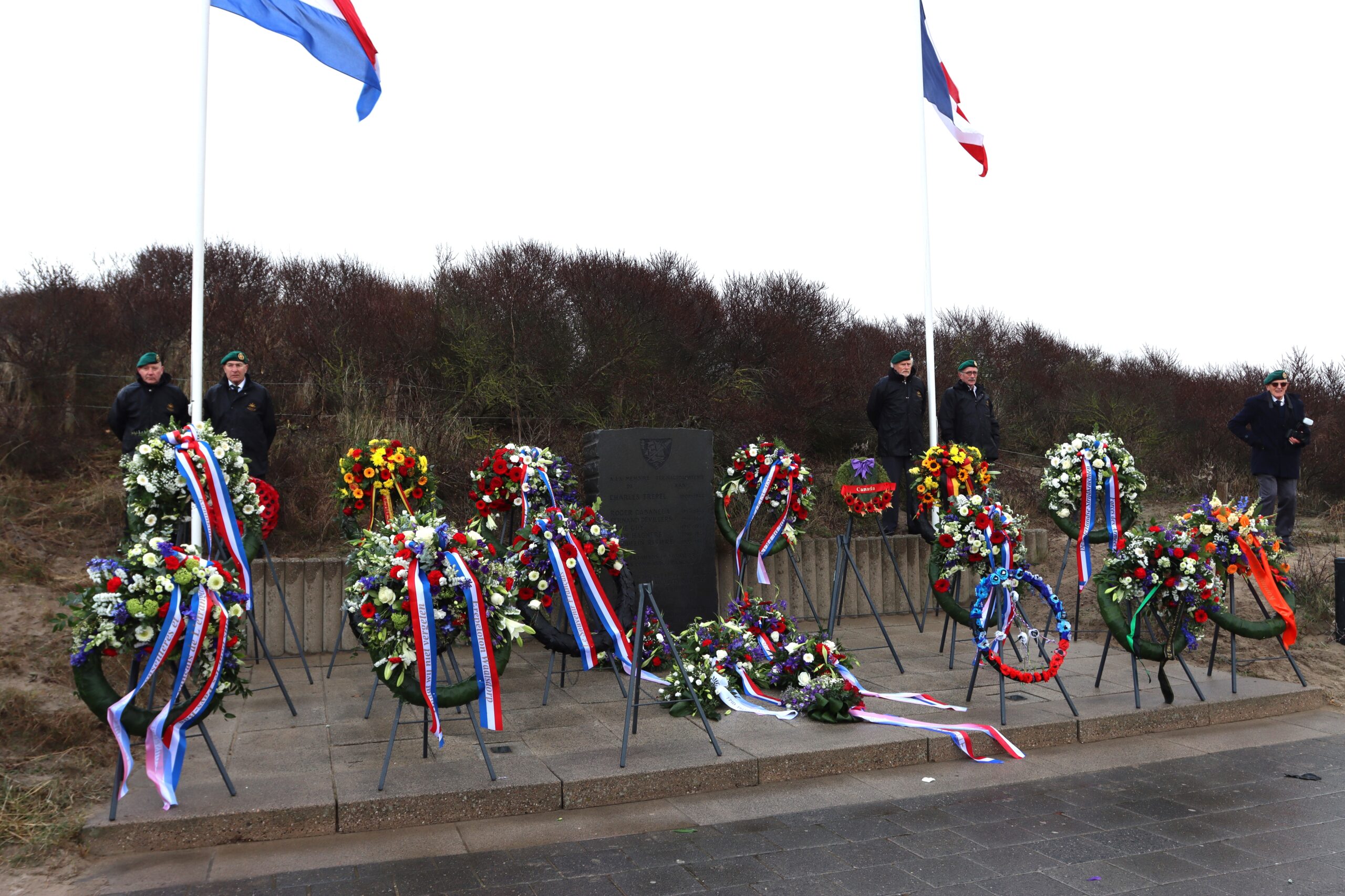 Zij legden samen een krans namens de Franse ambassade en het consulaat. Daarna volgden kransleggingen door diverse ambassades, vertegenwoordigers van het ministerie van Defensie en verschillende Franse en Nederlandse organisaties. De Lange benadrukte in een toespraak het blijvende belang van herdenken en de lessen die uit het verleden getrokken moeten worden. “Vandaag herdenken wij de Franse commando’s, Kapitein Trépel en zijn mannen die in februari 1944 stierven voor onze vrijheid. Hun namen blijven voortleven en het is onze plicht hun moed en offer nooit te vergeten”, sprak De Lange de aanwezigen toe.