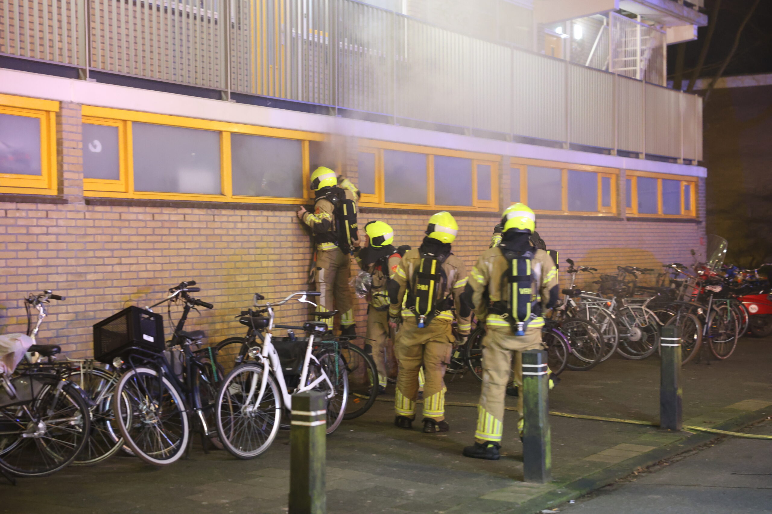 De brandweer en politie waren snel ter plaatse en gingen met de brandslang naar binnen om te blussen. De brandweer heeft verschillende kelderboxen open gebroken om te controleren of alles uit is.