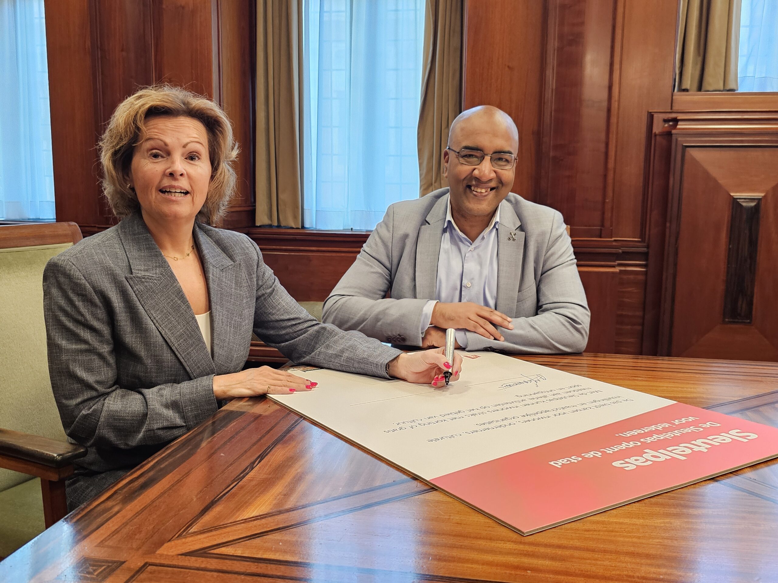 Wethouder Abdelhaq Jermoumi (kansengelijkheid) en directeur Marije Gravemaker van het bedrijf BS&F hebben woensdagmorgen de overeenkomst ondertekend voor de uitvoering van de Sleutelpas. Met die pas kunnen inwoners straks met korting of gratis meedoen aan allerlei activiteiten op het gebied van cultuur, sport en ontspanning.