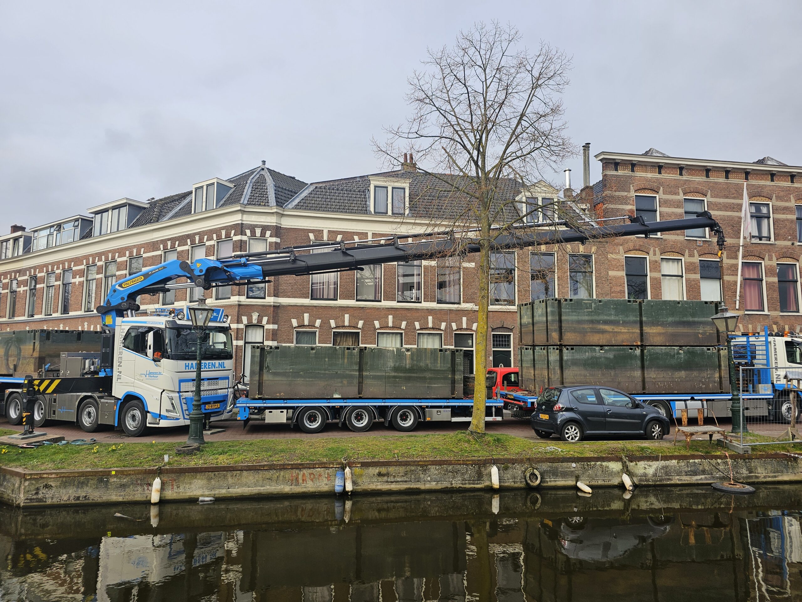 Het grootste deel van de kadeherstelwerkzaamheden bij de Schelpenkade is afgerond. Het zware materiaal en de pontons zijn daarom deze week weggehaald. Momenteel is de aannemer bezig met het bestraten van de nu bredere Schelpenkade.