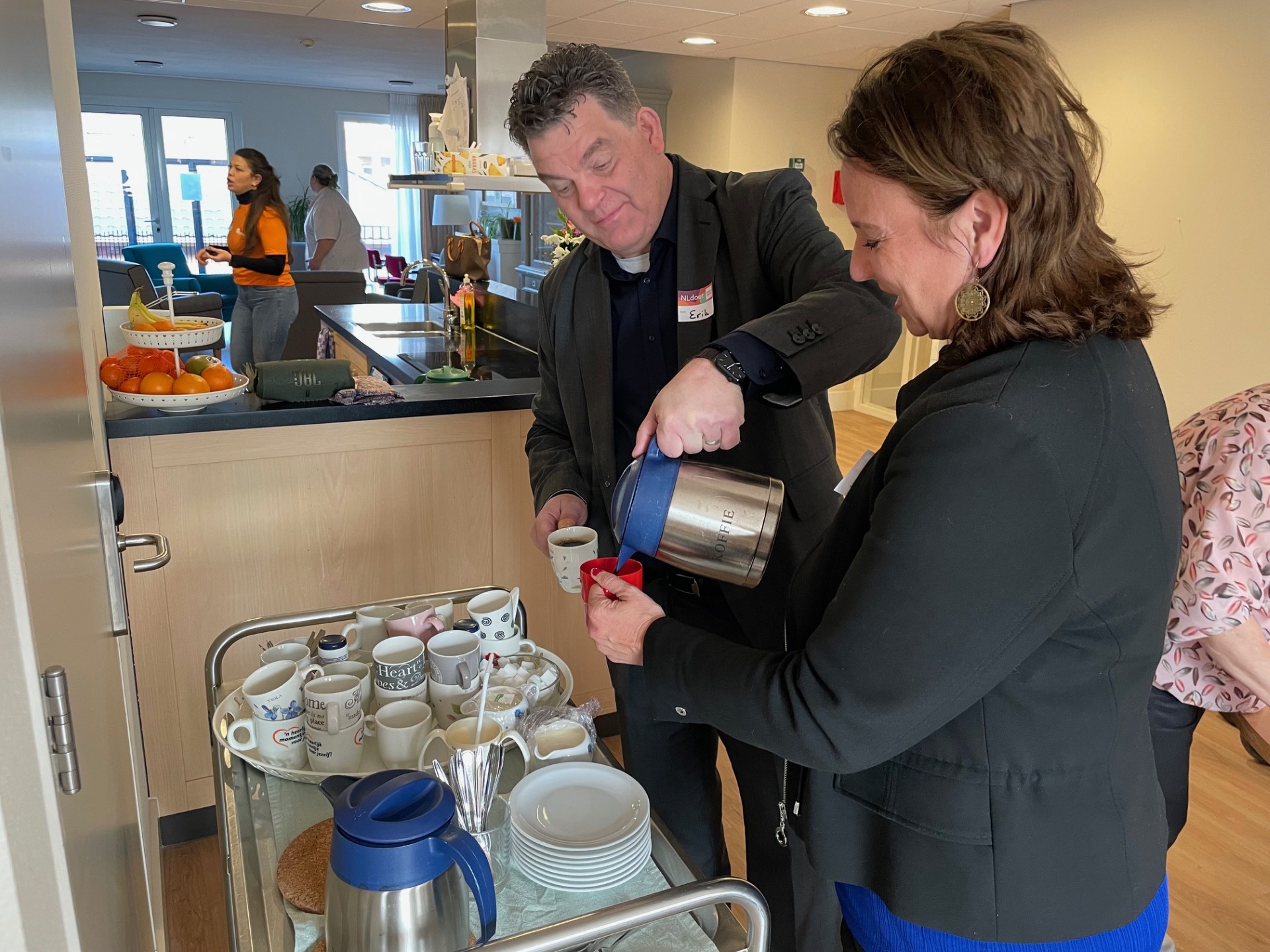Burgemeester Stemerdink mocht koffie en thee schenken op de afdeling en had gebak meegenomen. De wethouders werden elders in het woonzorgcentrum te werk gesteld. “NLDoet is ongelofelijk belangrijk”, vindt burgemeester Stemerdink. “Samen bezig zijn voor de samenleving, of dat nou gaat om het opruimen van een schoolplein, verven bij de scouting of koffie en thee uitdelen.”