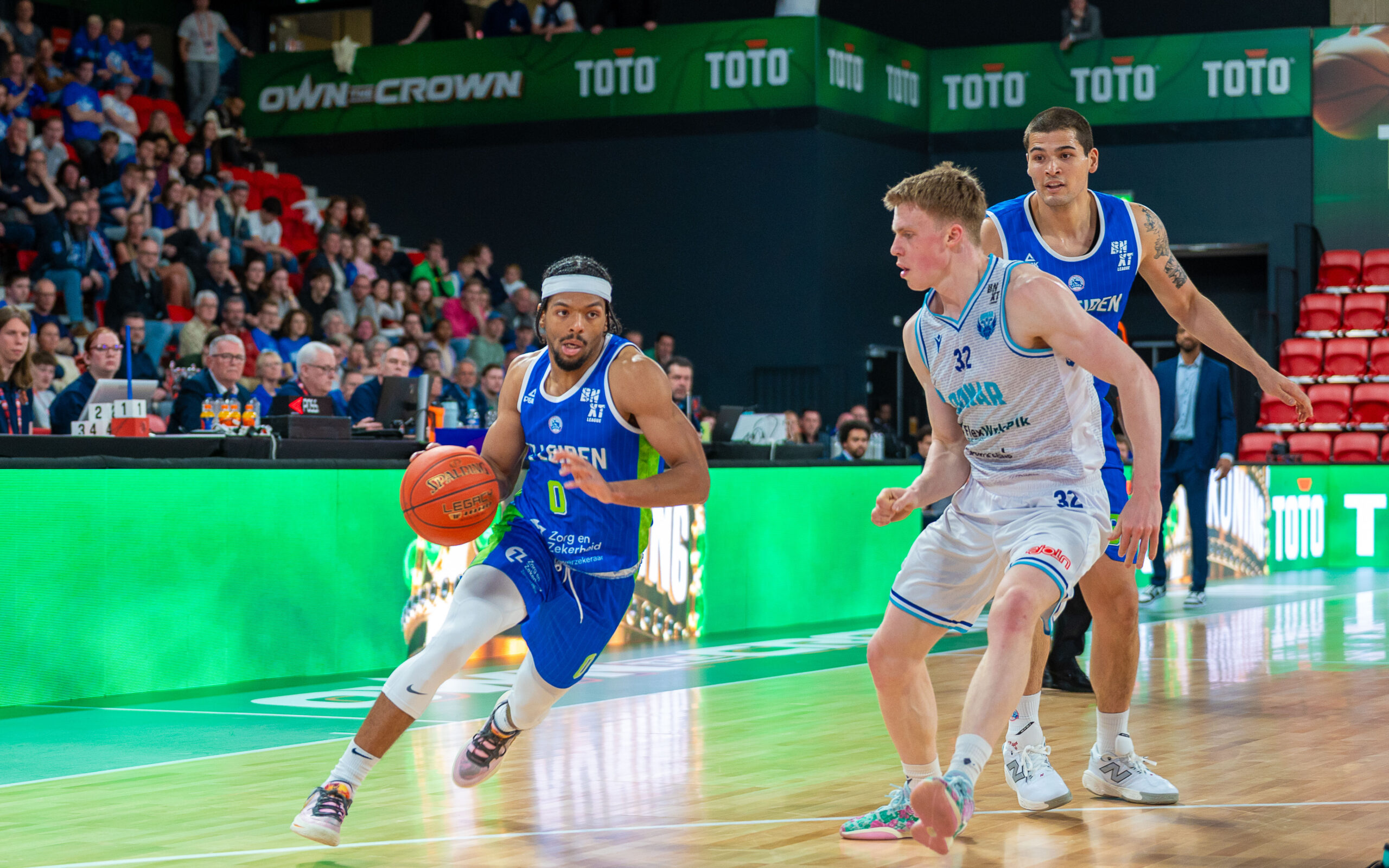 Na de pauze speelde Donar beter. De Leidse verdediging kreeg geen vat op de razendsnelle en met scherp schietende Tavian Dunn-Martin (30 punten, 10 rebounds en 6 assists). Via 50-50 na drie kwarten werd het een verdiende 77-69 overwinning voor Donar op de Sportcampus Zuiderpark in Den Haag.
