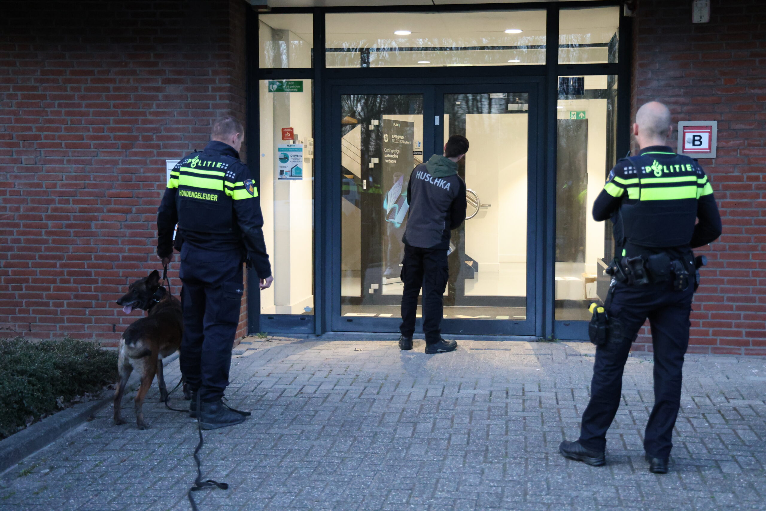Een autoladder van de brandweer is op verzoek van de politie ter plaatse gekomen, zodat agenten van bovenaf op het dak konden kijken. Ook ging de politie met een speurhond het pand binnen om het pand te ‘schonen’. Zo wordt het genoemd als de politie zeker stelt dat geen ongewenste personen meer binnen zijn.