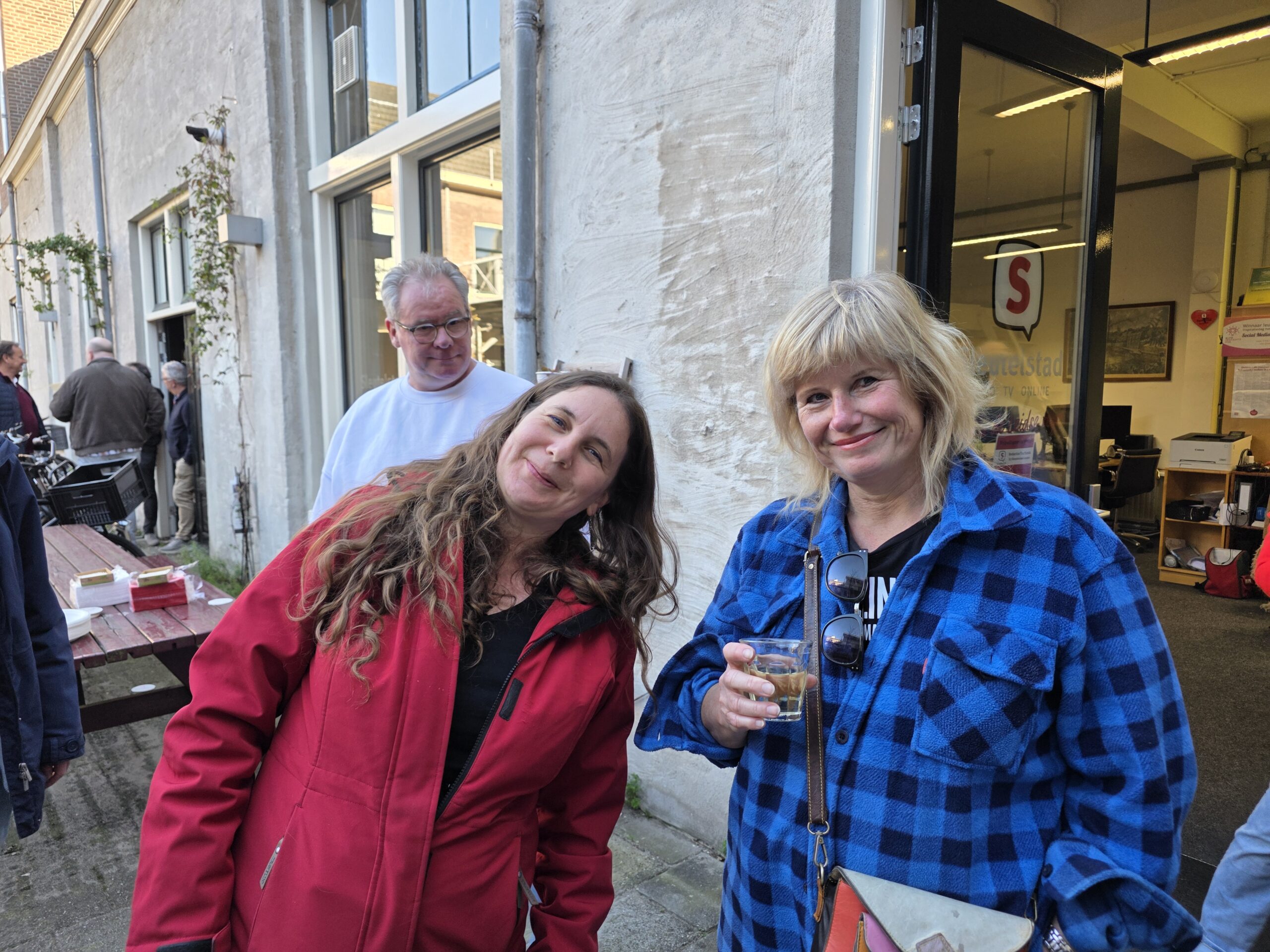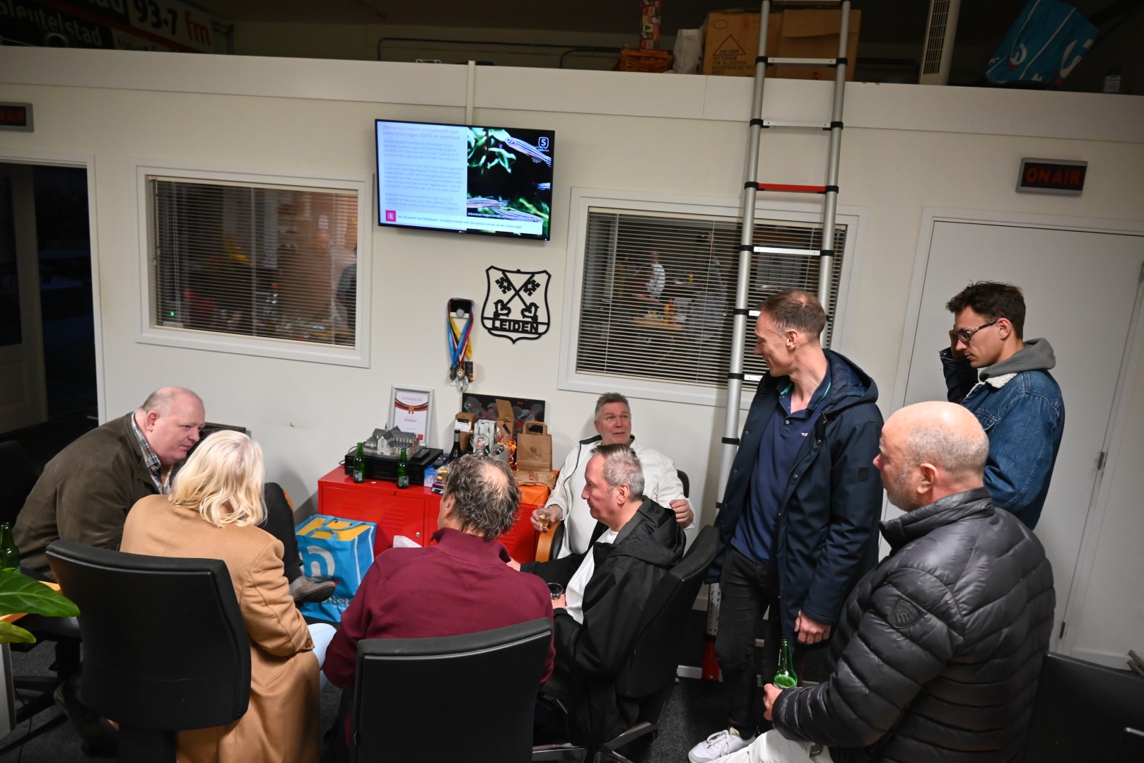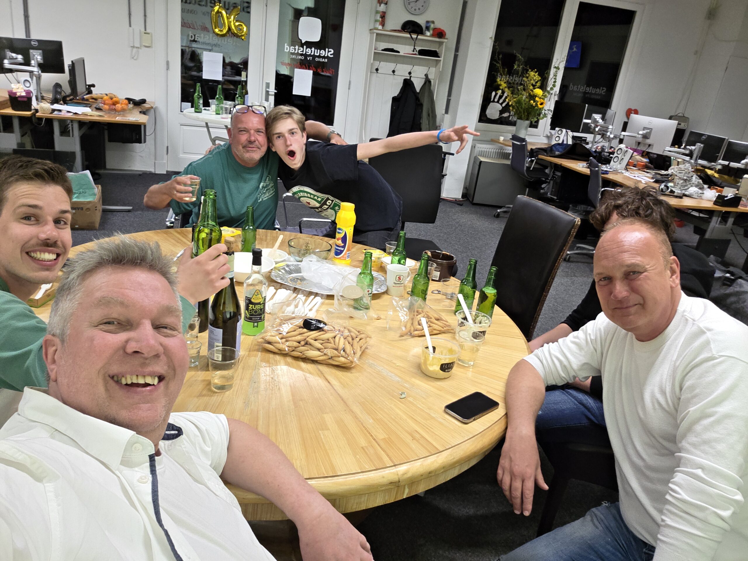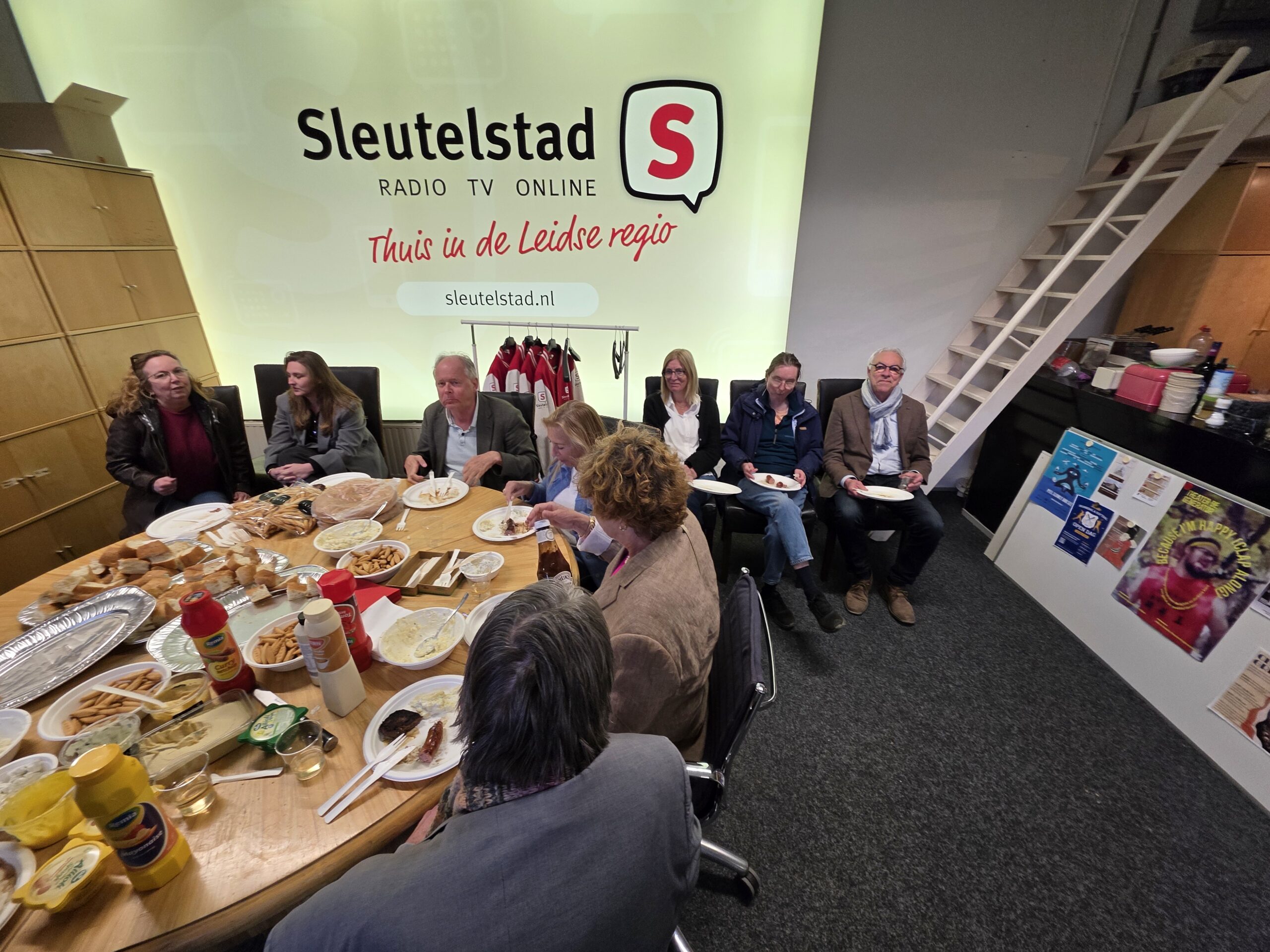 Het kantoor, de studio en de binnenplaats van Omroep Sleutelstad liepen zaterdag vol met medewerkers, vrijwilligers en vrienden van de omroep om een gezellig feestje te vieren.