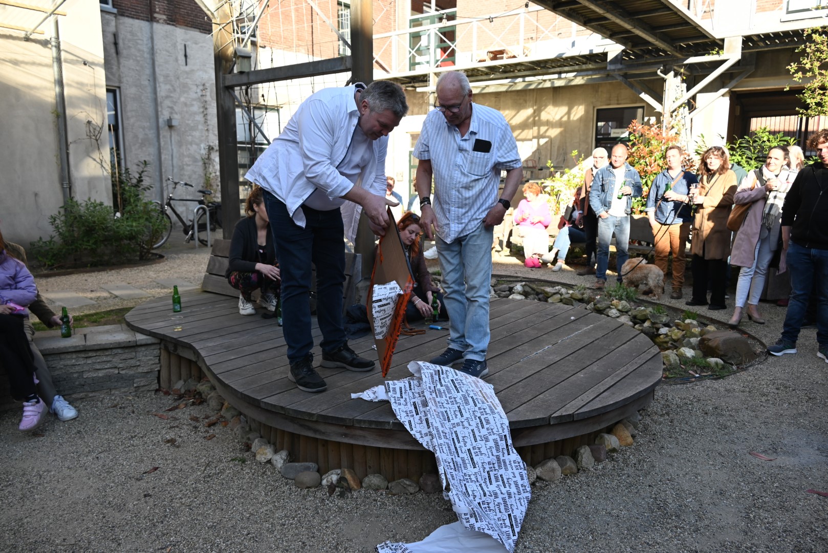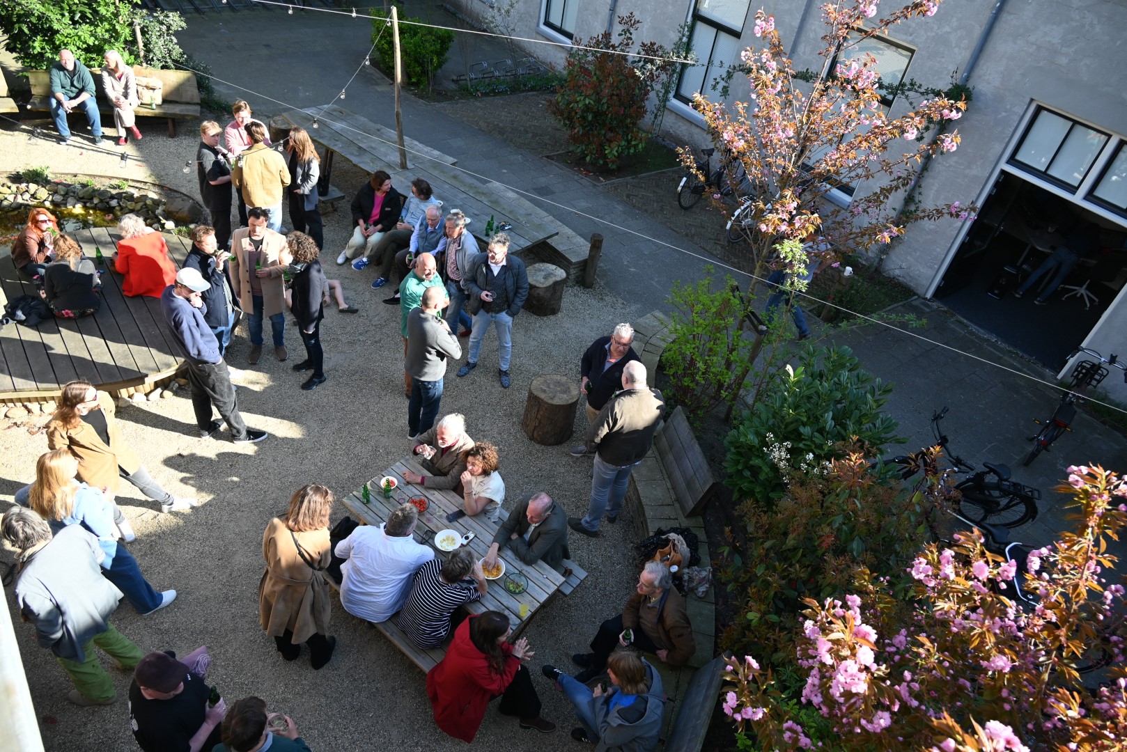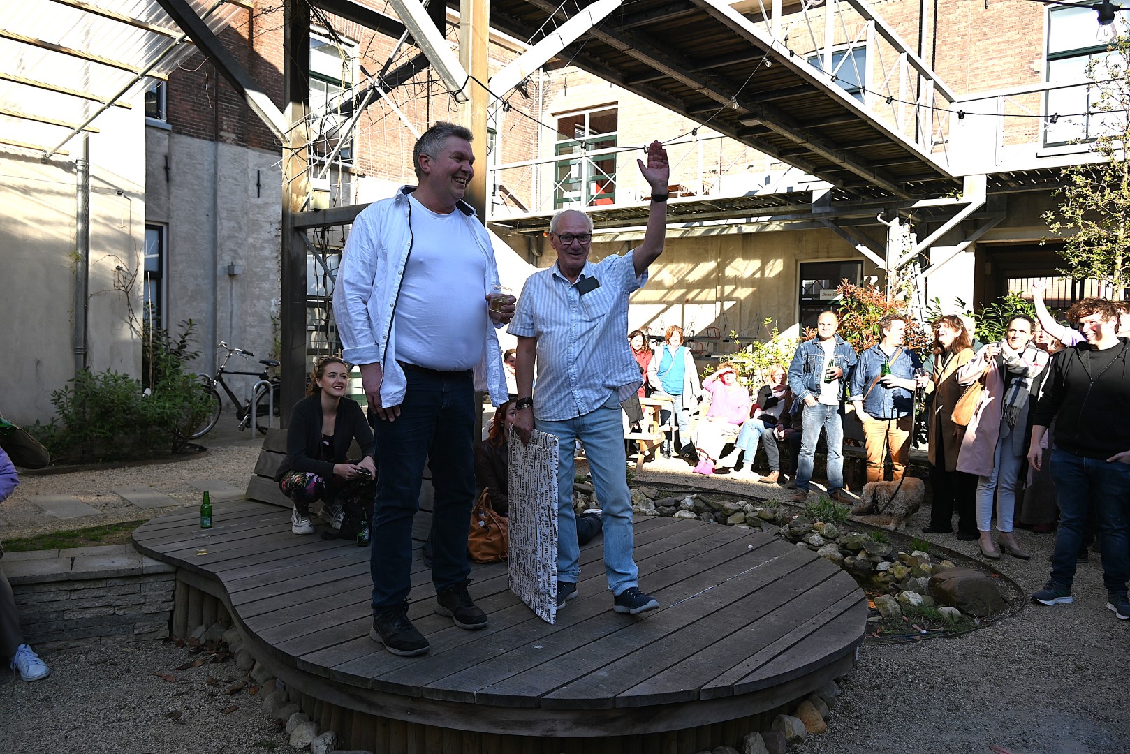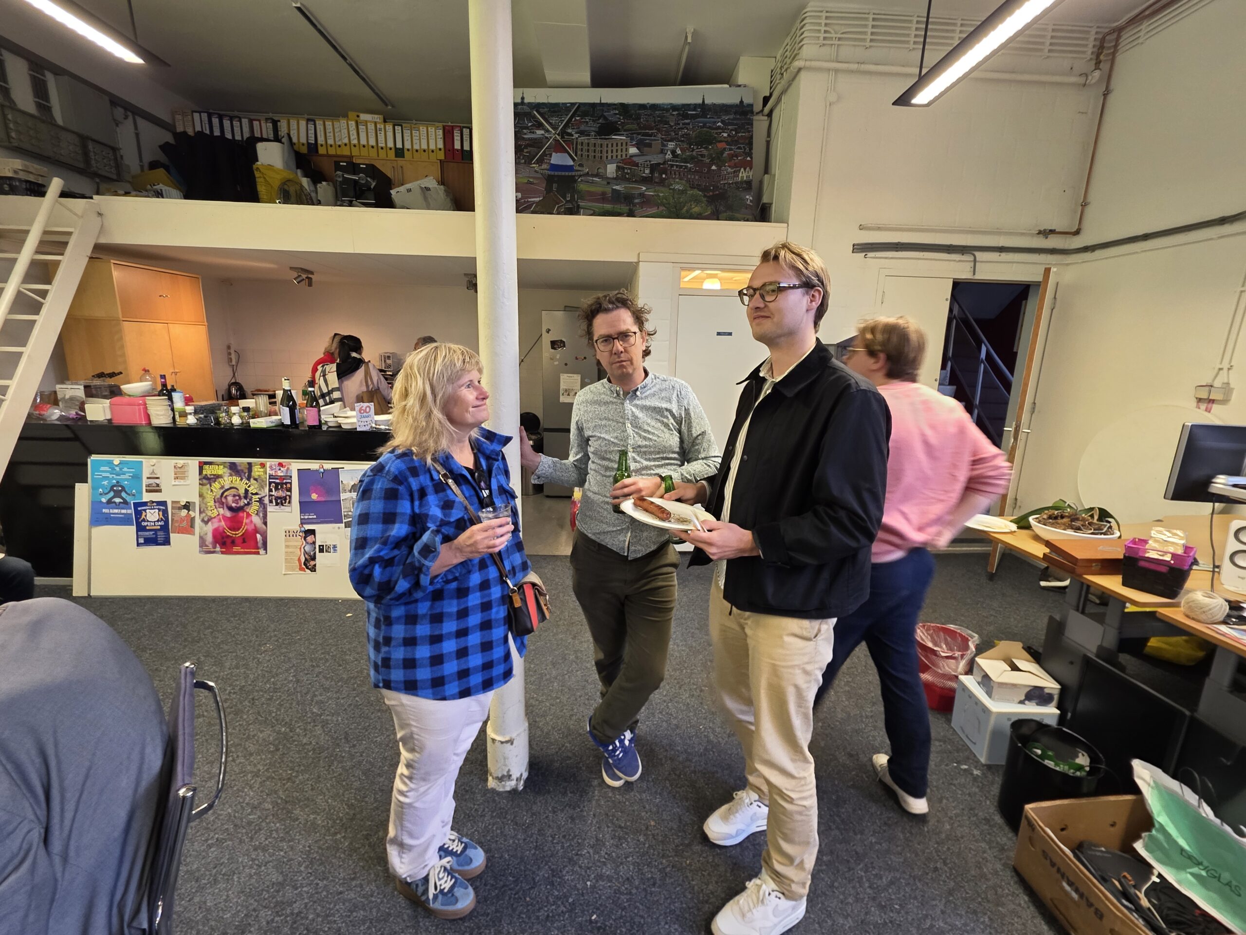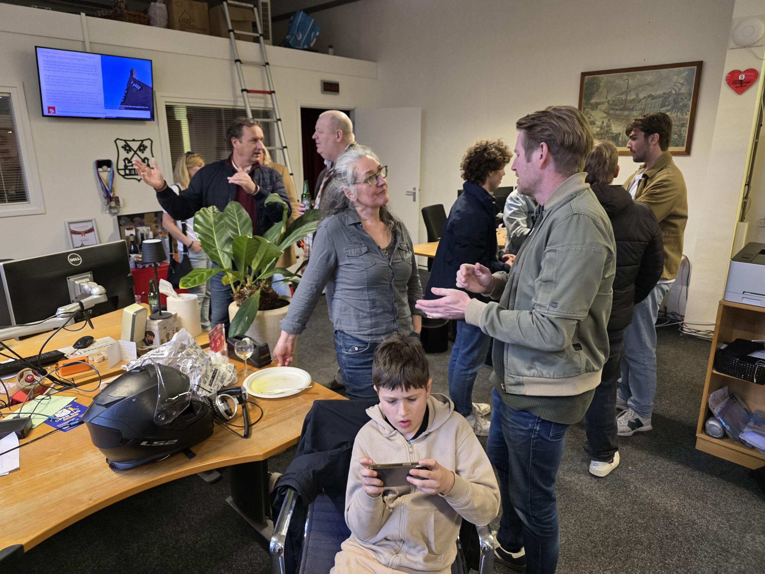 Het kantoor, de studio en de binnenplaats van Omroep Sleutelstad liepen zaterdag vol met medewerkers, vrijwilligers en vrienden van de omroep om een gezellig feestje te vieren.