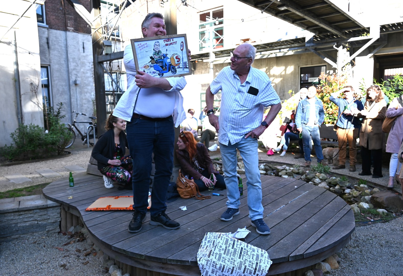 Chris de Waard, oprichter en hoofdredacteur van Sleutelstad werd afgelopen week zestig jaar en vond dat een mooie gelegenheid voor een feest. De verjaardag was een aanleiding om elkaar weer eens te ontmoeten in een ontspannen sfeer, na een behoorlijk hectisch jaar. De vaste kern van Sleutelstad bood Chris de Waard een enveloppe met inhoud aan en een cartoon gemaakt door de Leidse Vrij Nederland en Leidsch Dagblad cartoonist Maarten Wolterink.