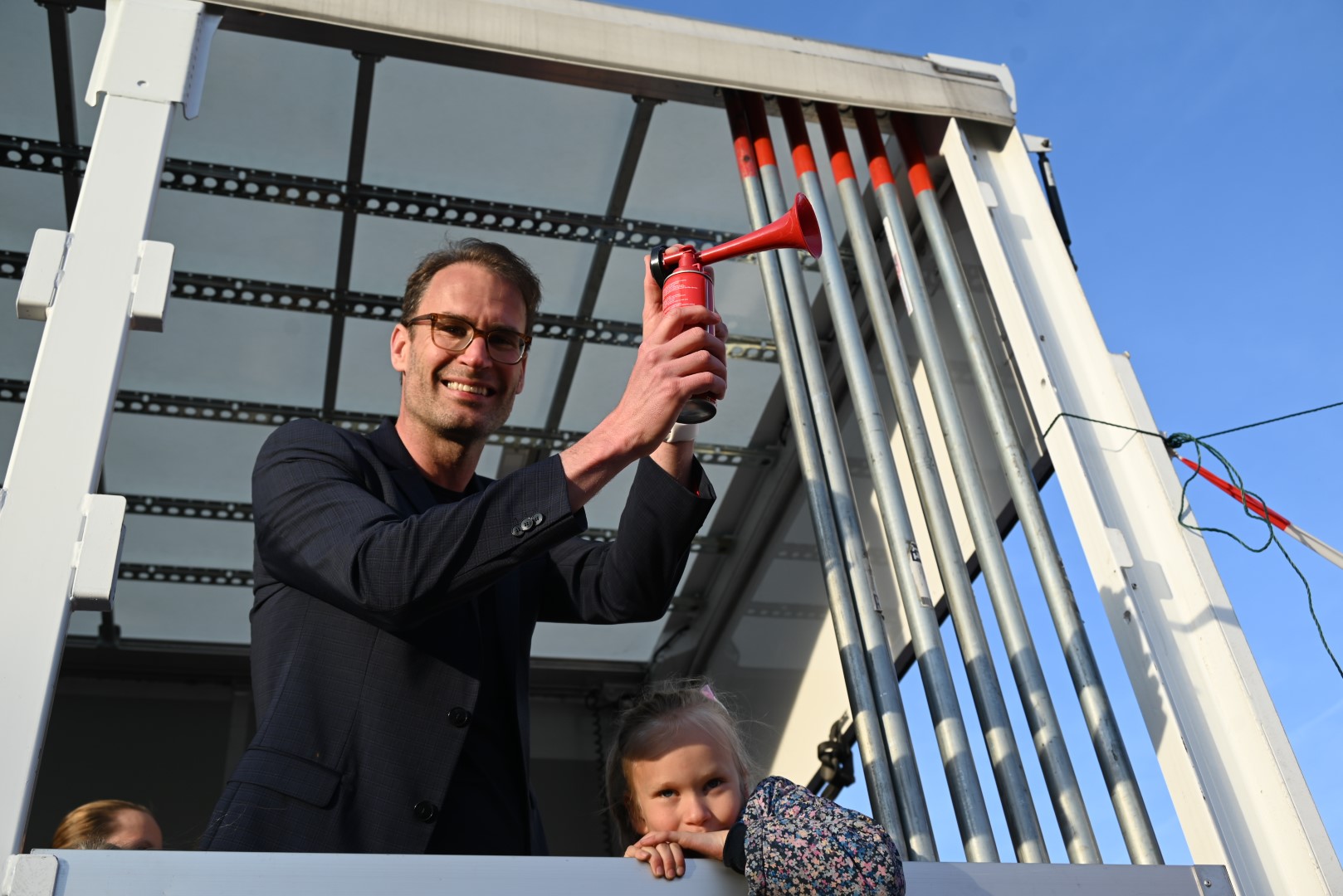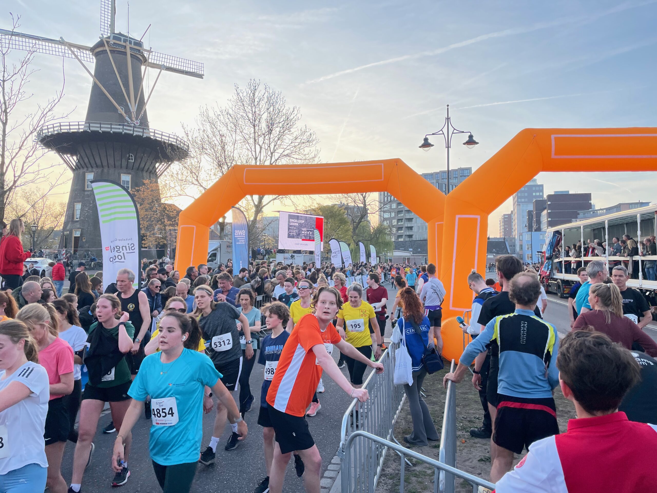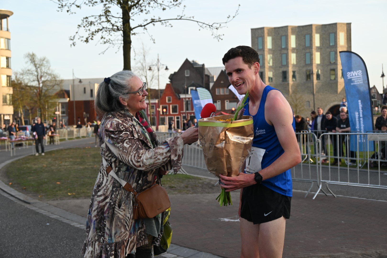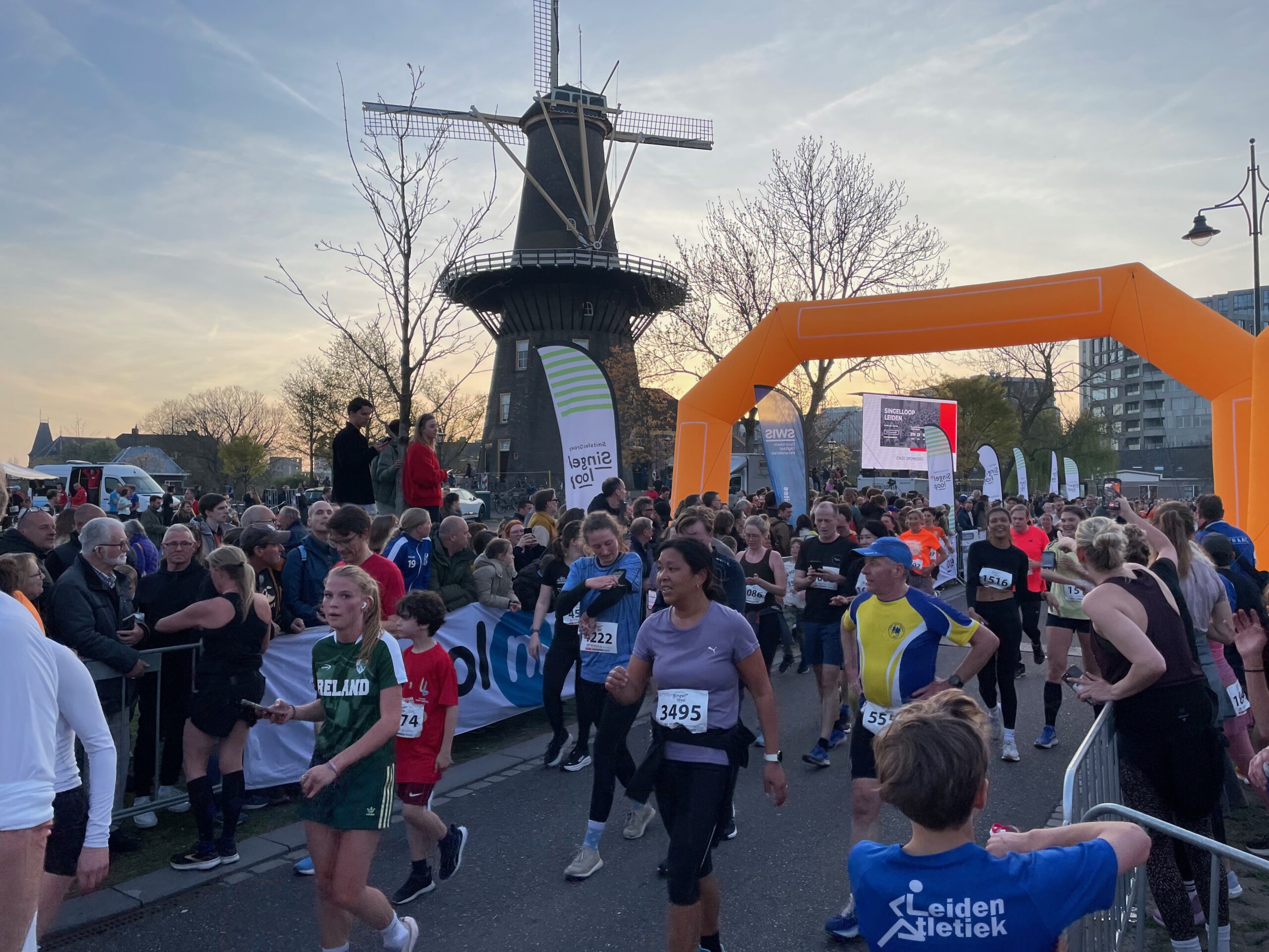 Zesduizend lopers stonden er aan de start aan de voet van Molen De Valk. Klokslag half acht toeterde burgemeester Peter Heijkoop de lopers weg. Zelf meelopen zat er dit jaar niet in. “Nu ik hier zo sta, heb ik daar wel een beetje spijt van”, zei Heijkoop eerlijk, “volgend jaar loop ik zeker mee.” En volgende maand ook de halve marathon in zijn stad.
