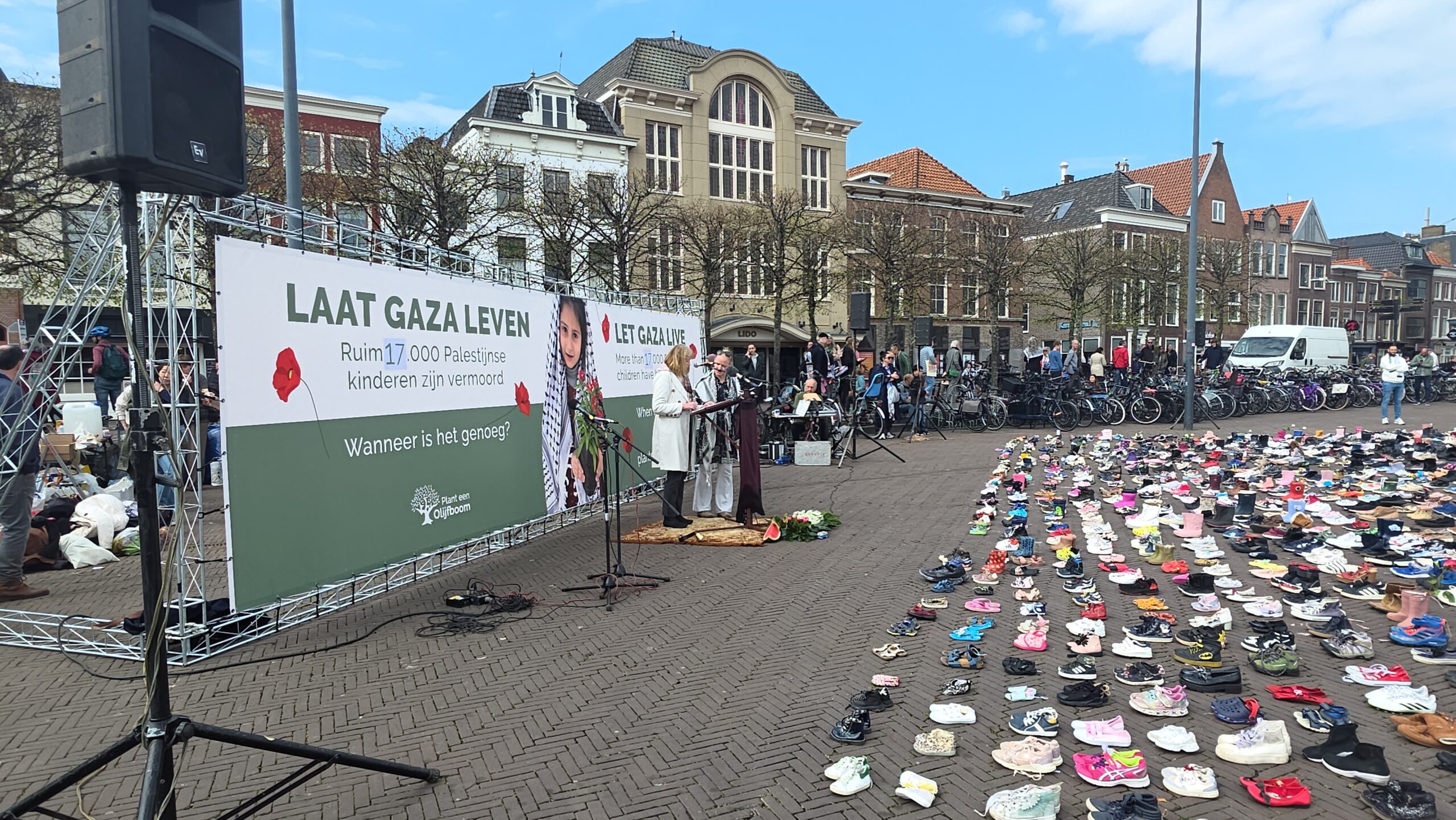 Meer dan 17.000 Palestijnse kinderen zijn sinds 7 oktober 2023 in Gaza vermoord. Wanneer is het genoeg? Die vraag staat zondagmiddag centraal bij een grote protestbijeenkomst op de Beestenmarkt in Leiden.