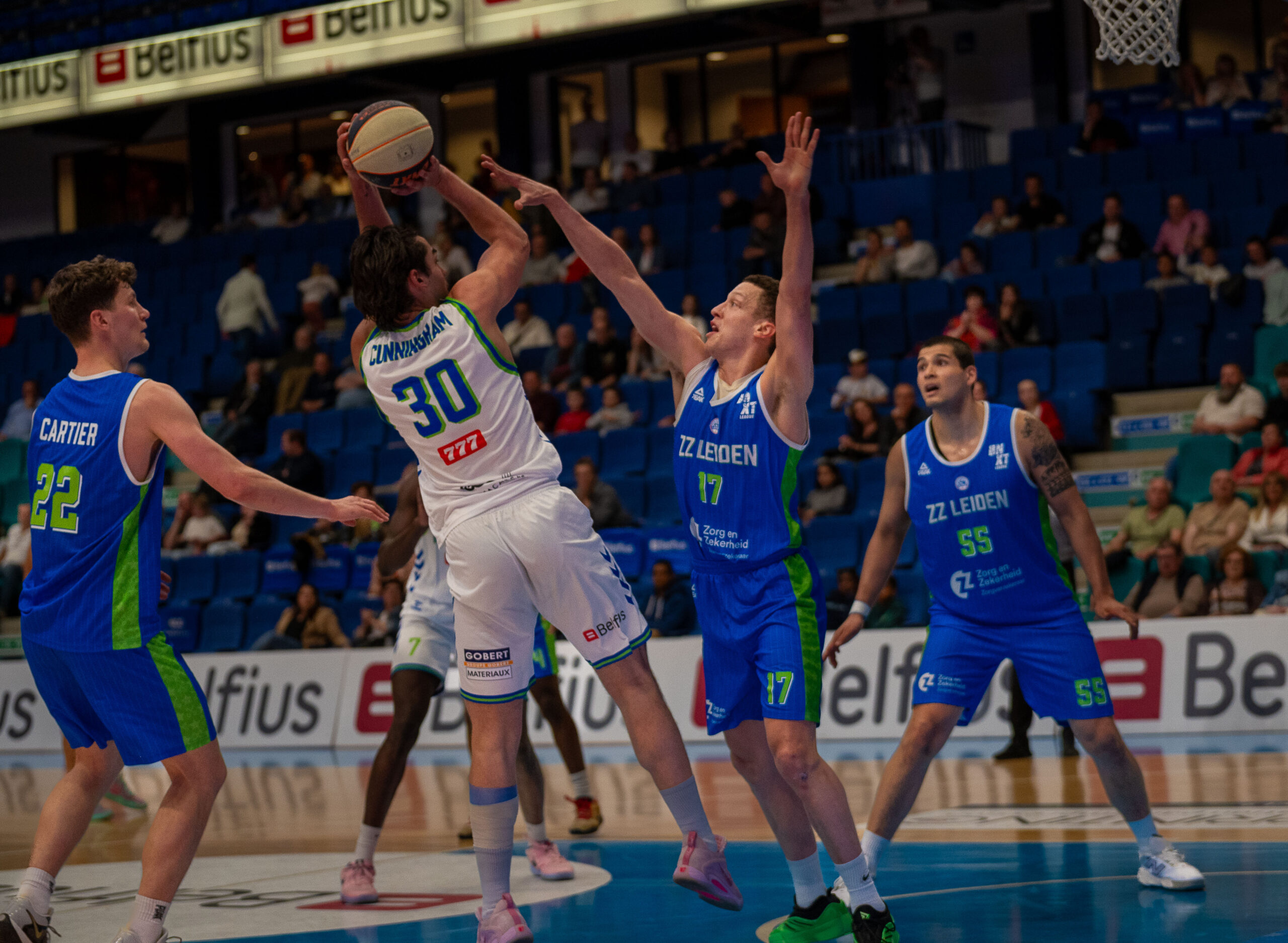 Het zat ZZ Leiden niet mee. Tajinder Lall kon vanwege een blessure niet spelen, al is de verwachting dat hij komende week weer kan worden ingezet. Roeland Schaftenaar, die opende met twee rake driepunters, moest na een kleine vijf minuten voor de rest van de wedstrijd naar de kant. Aan de andere kant gaf Jordan Davis weer eens thuis. In Arena 1574 was hij al goed voor 26 punten tegen Union Mons-Hainaut, dit keer schoot Davis alleen in het eerste kwart al 8 punten binnen. Uiteindelijk zou hij de wedstrijd als topscorer afsluiten met 18 punten, 4 rebounds, 4 assists, 4 steals en een efficiency van 22.