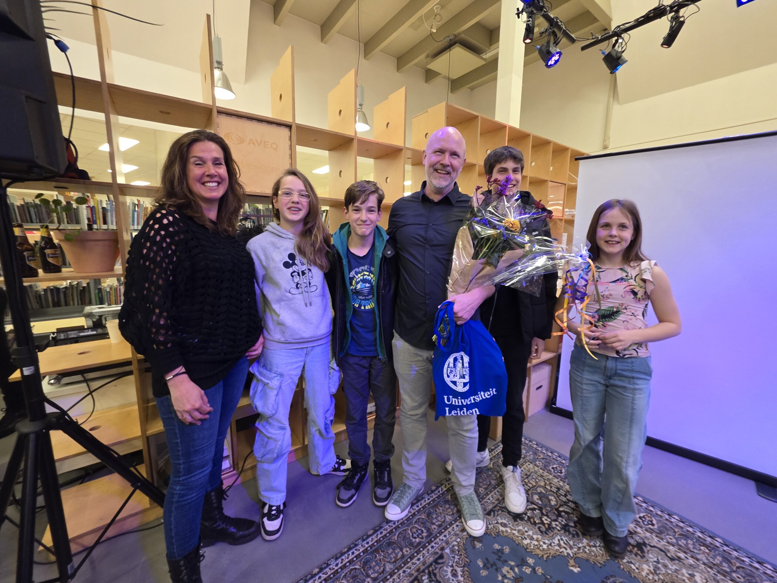 De nieuwe stadsdichter Raymond Tilma met vrouw en vier kinderen. (Foto’s: Brigitte Veenswijk en Chris de Waard)