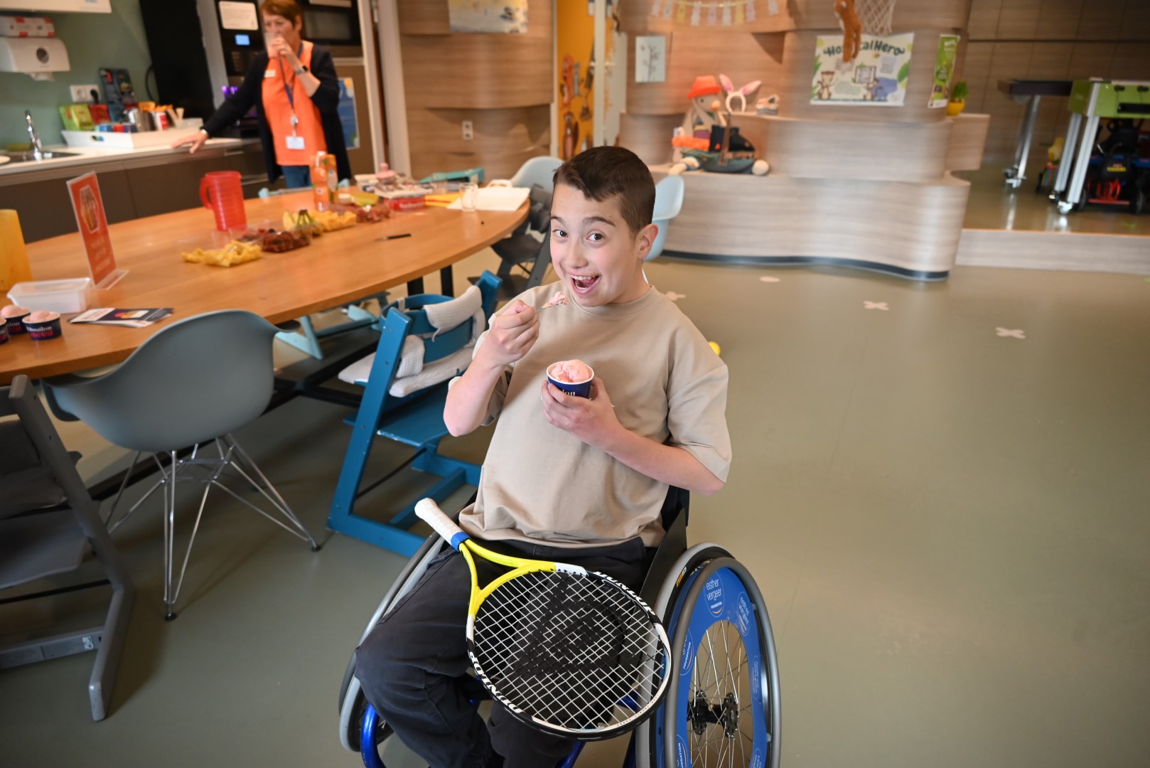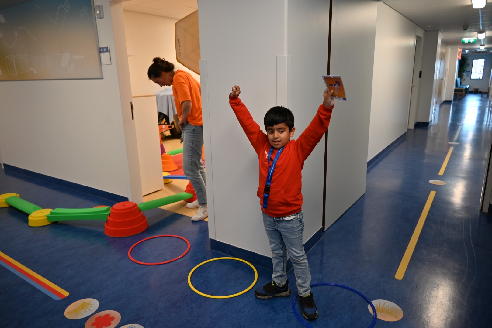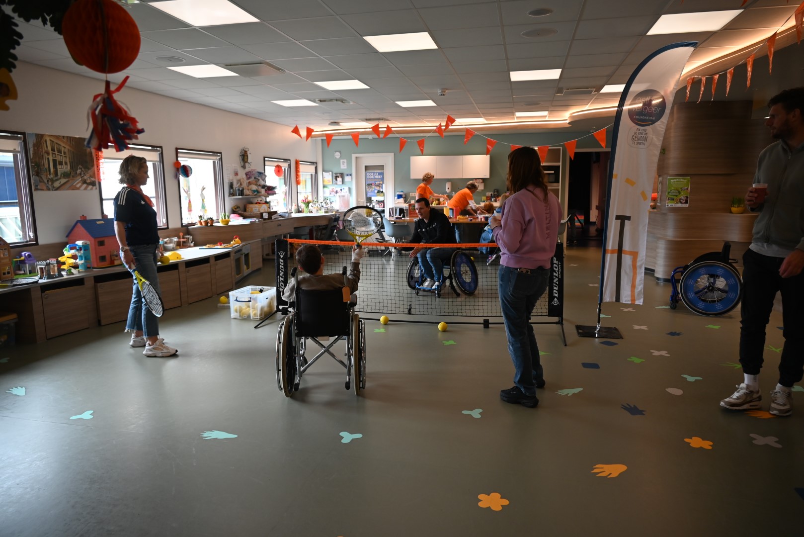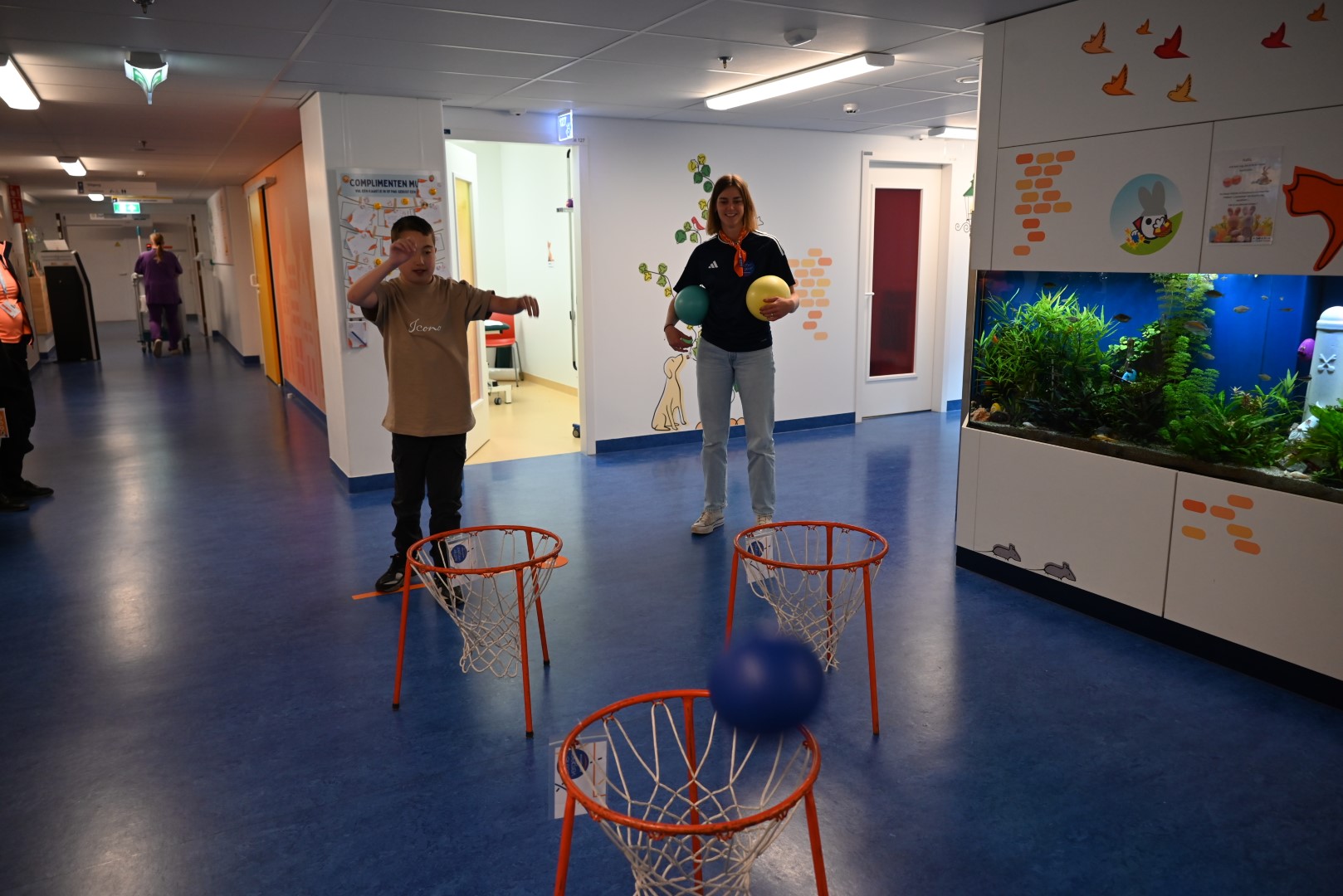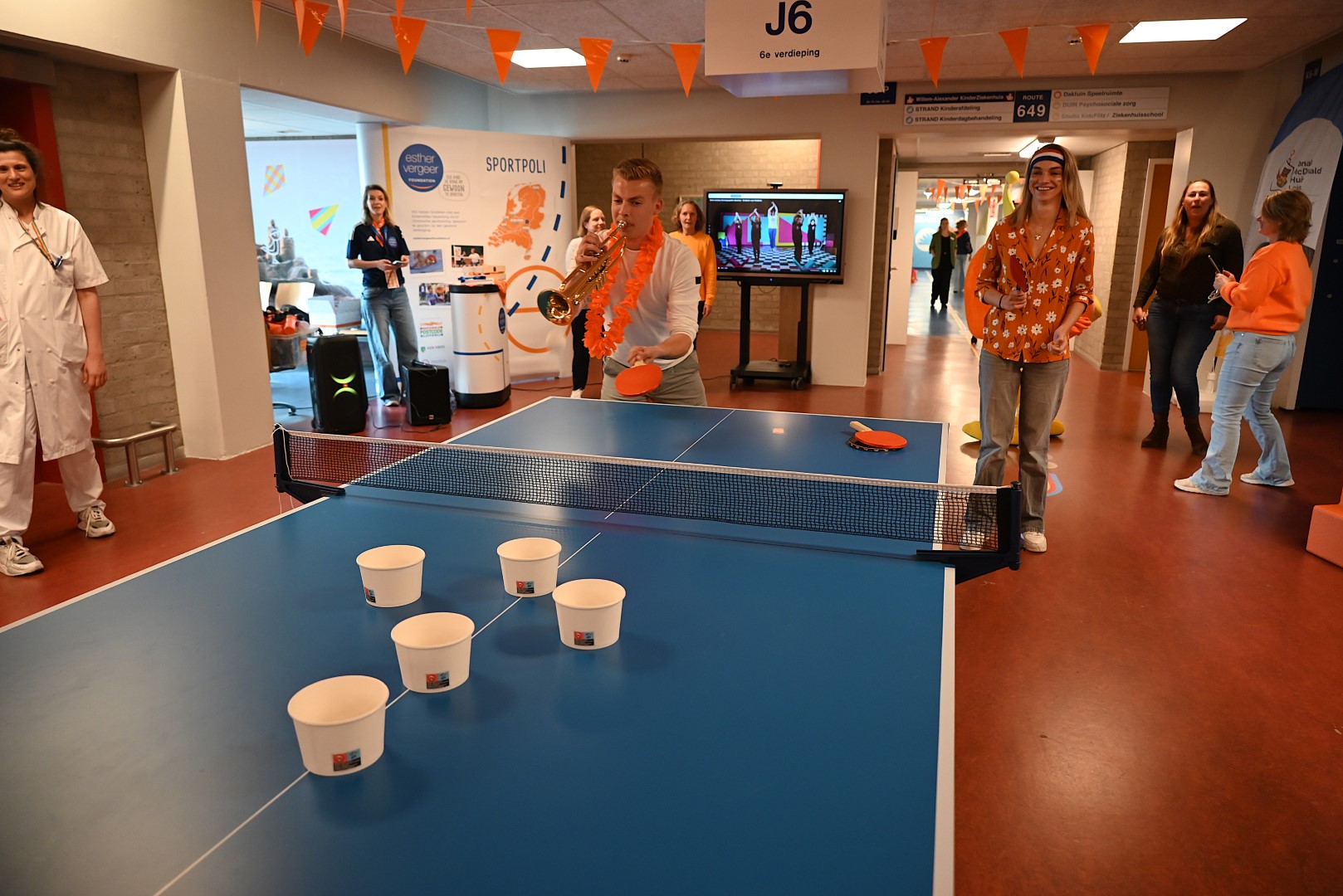 Het kinderziekenhuis was voor de gelegenheid veranderd in een sporthal waar geroeid, getennist werd, maar waar ook aan tafeltennis en basketbal gedaan kon worden. Er waren hindernisbanen aangelegd en de middag werd afgesloten met een bingo. Er werd door de ziekenhuisomroep uitgezonden, zodat de kinderen die niet van hun kamer konden, het feest toch live konden meemaken.