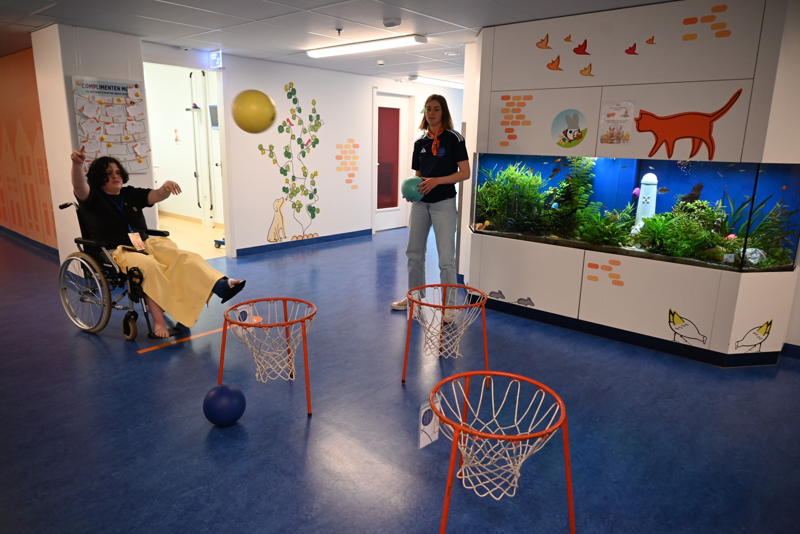 De patiëntjes in het Leidse Willem Alexander Kinderziekenhuis konden donderdag meedoen aan de Koningspelen die in heel Nederland plaatsvonden.