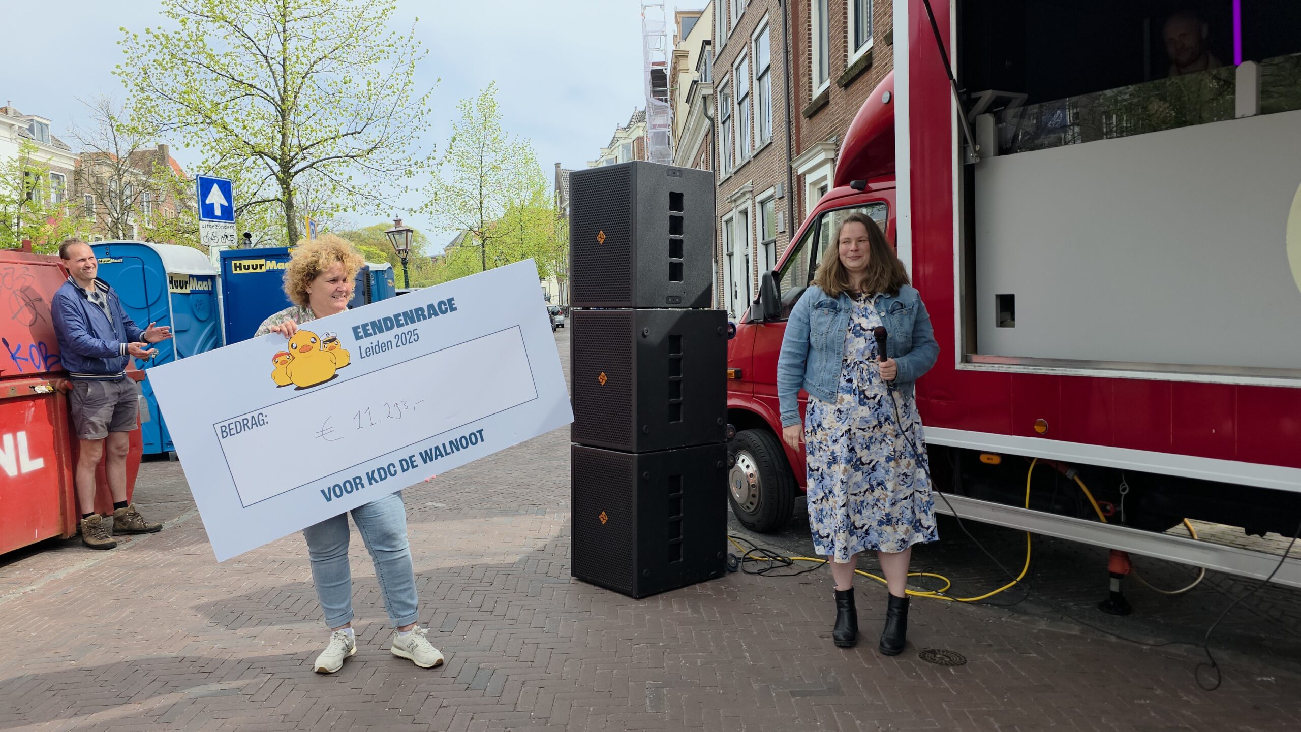 Kinderdagcentrum De Walnoot in Leiden Zuidwest kan de spullen gaan bestellen die nodig zijn voor de realisatie van een snoezelbadkamer. De Eendenrace Leiden die zaterdagmiddag werd gehouden op het Rapenburg bracht ruim voldoende op voor dat goede doel: 11.293 euro.