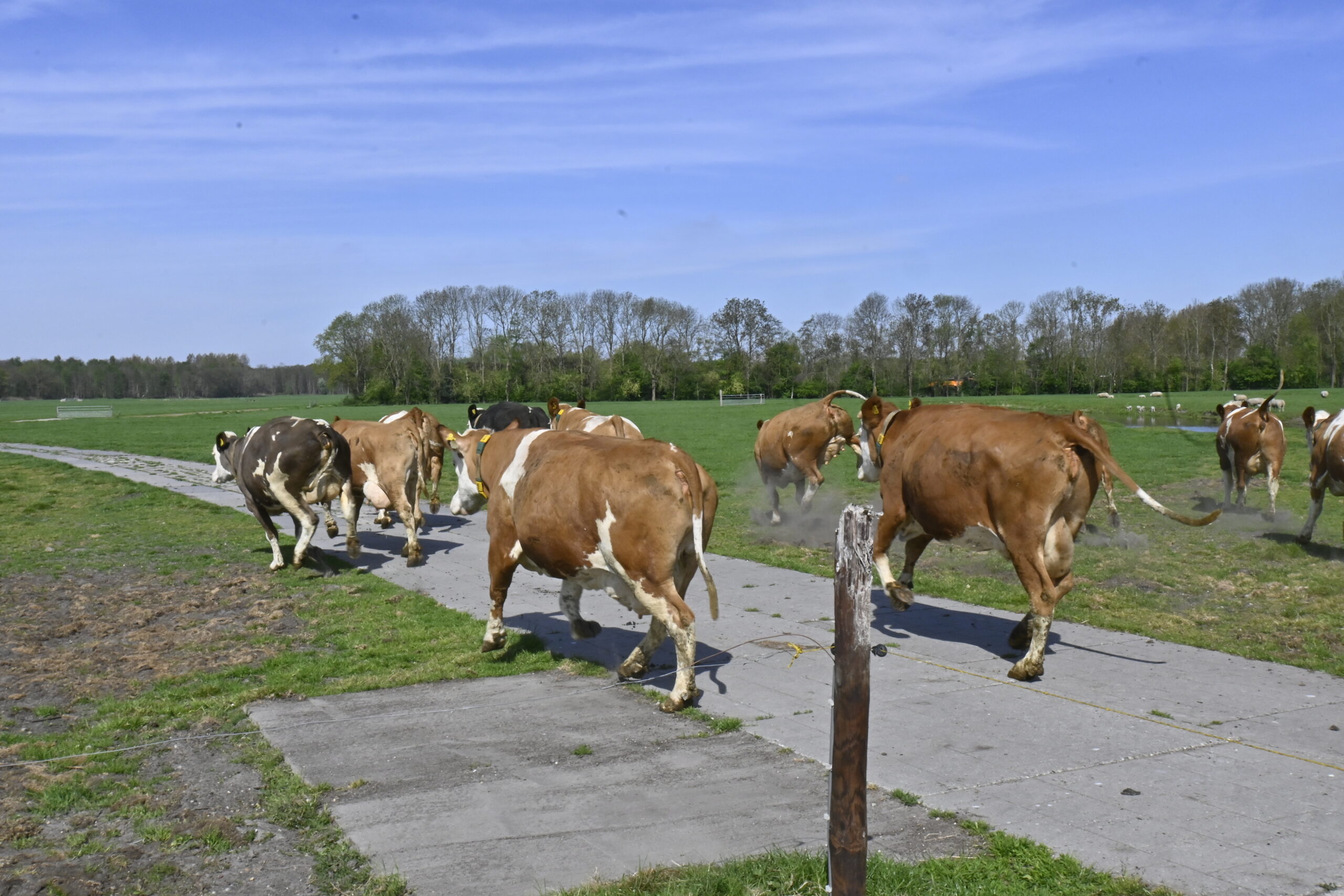 Ze hadden het duidelijk al in de gaten. In de stal werd flink gesnoven en getrappeld van ongeduld. De 165 dames konden niet wachten tot ze voor het eerst dit jaar de wei in mochten.