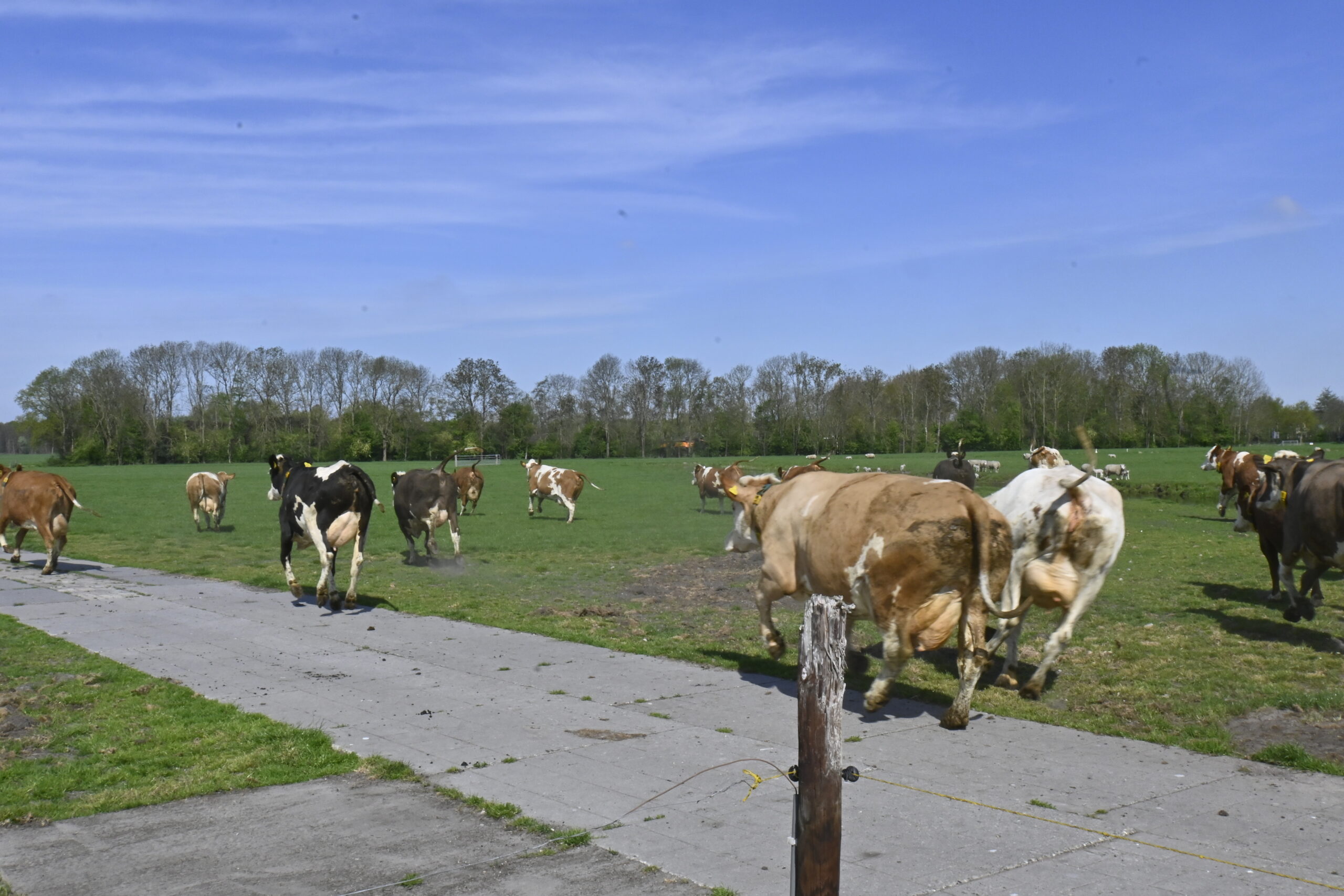 ’s Avonds gaan de koeien weer naar binnen en na het melken mogen ze in de ochtend weer naar buiten. “Maar nu is het feest voor de dames en ze genoten met volle teugen.”