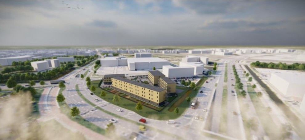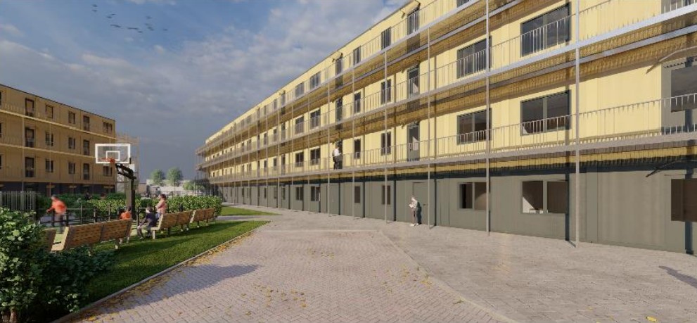 Impressie van de uitbreiding van het azc op de Paardenwei in Leiden met 404 plekken. Dat is een ruime verdubbeling van het bestaande asielzoekerscentrum.