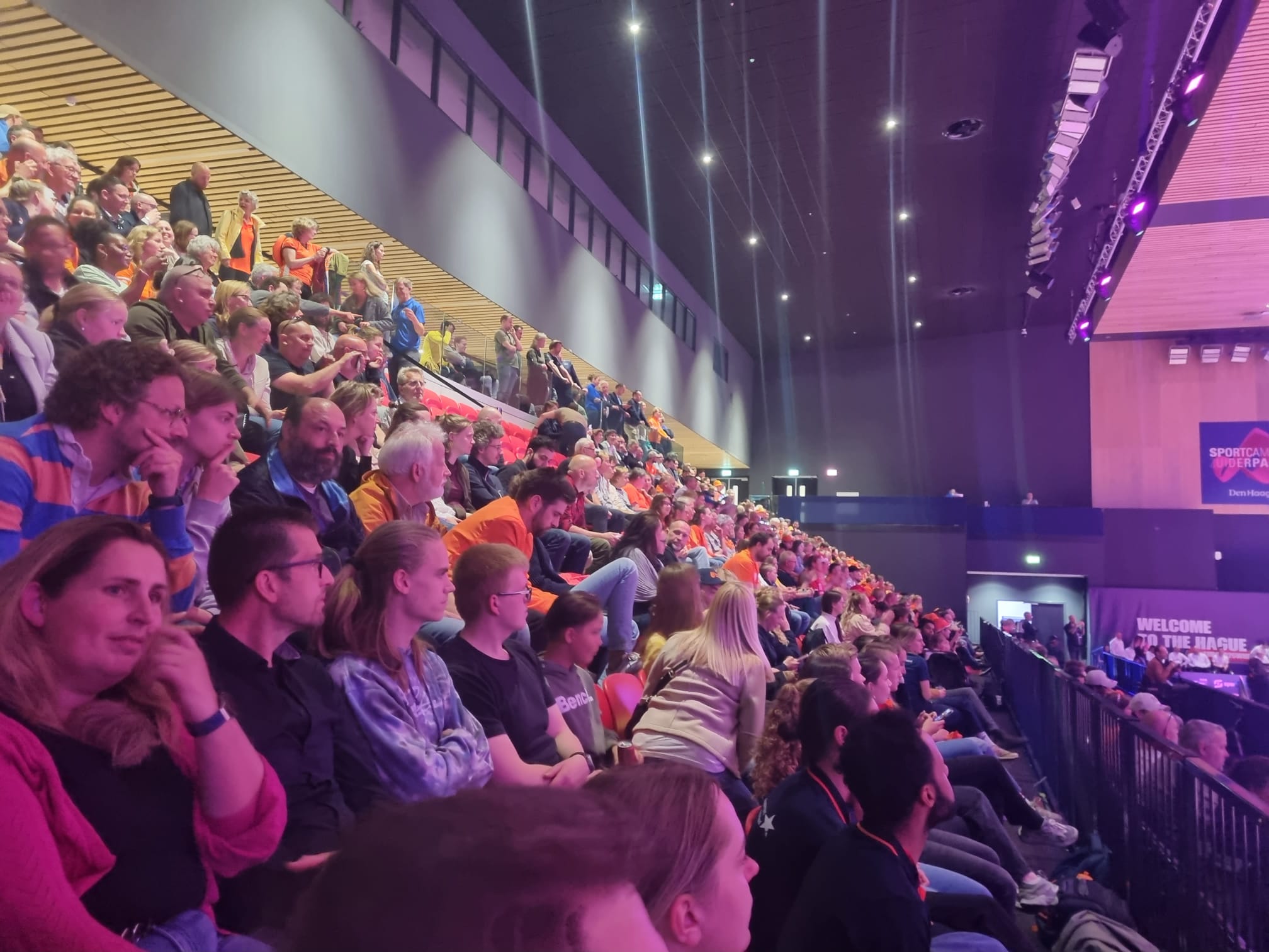 Het massaal afgereisde publiek was een extra steun in de rug. “Het is sowieso lekker dat we voor dit EK niet ver hoeven te reizen, maar het motiveert ook enorm dat er zoveel mensen komen kijken”, zegt Van den Dop. De tribune zat dinsdagavond vol, met daartussen ook een grote fanschare uit Groningen die speciaal voor publiekslieveling Ben Bazuin naar Den Haag was gekomen.
