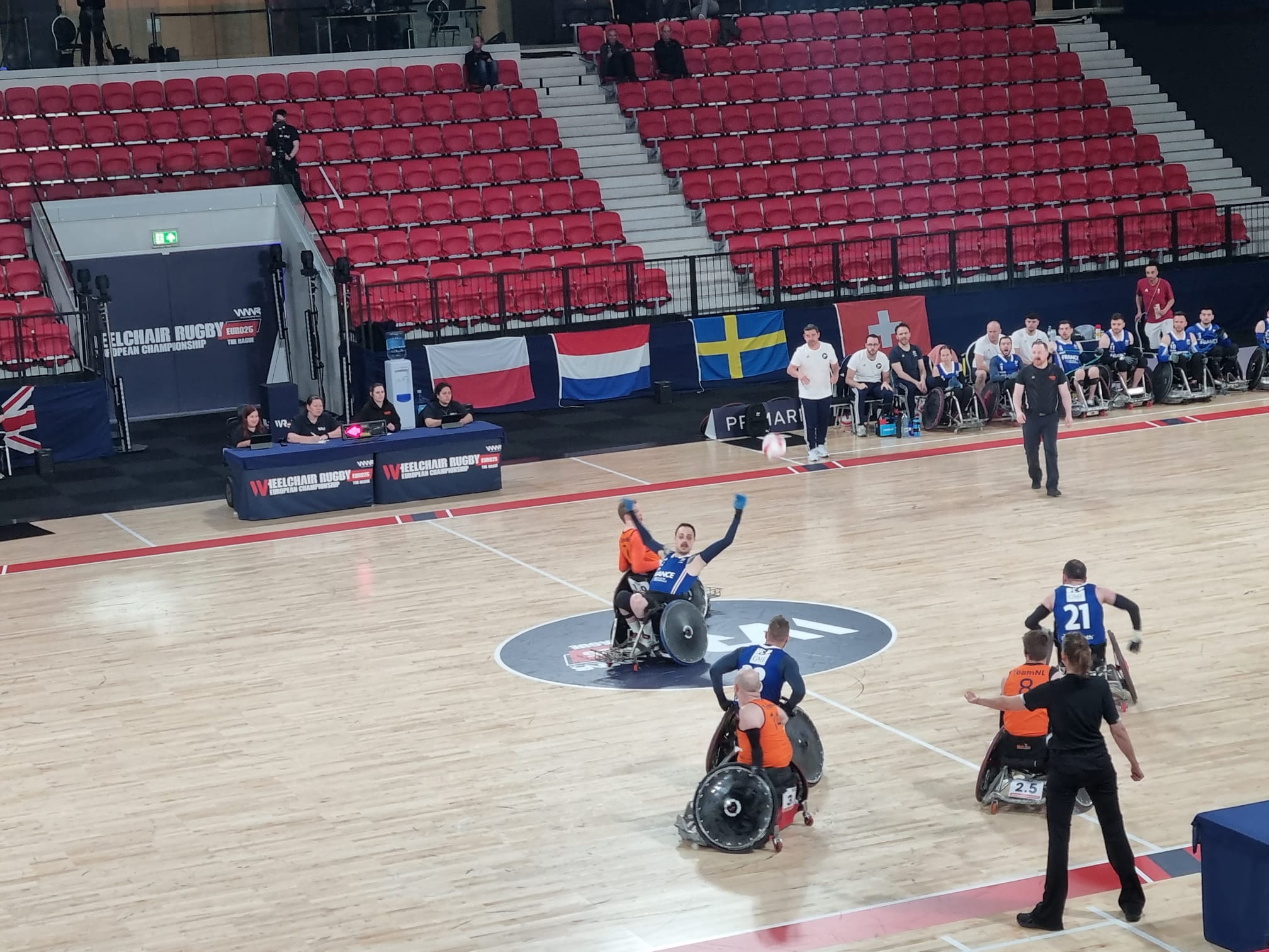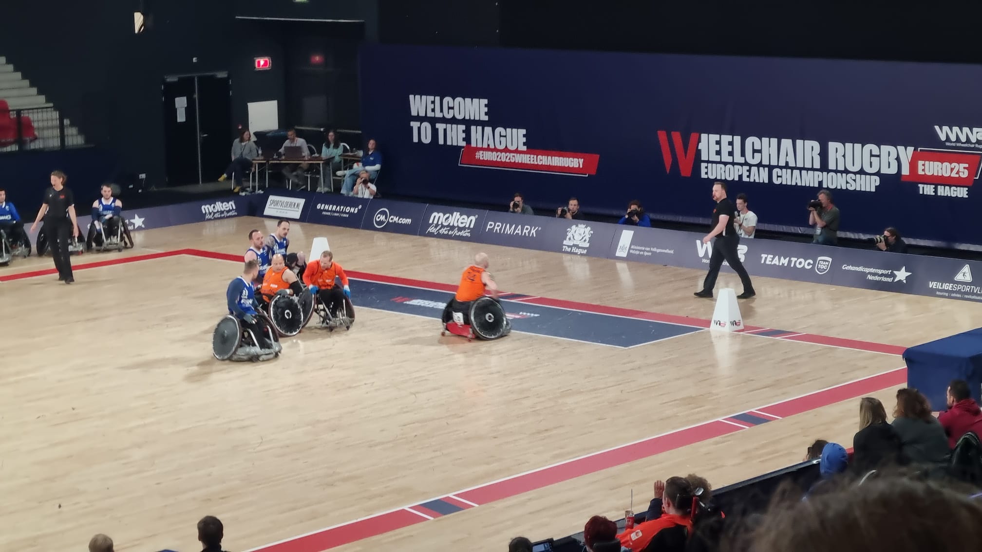 Het is het Nederlands team niet gelukt zich te plaatsen voor de halve finale van het EK Rolstoelrugby. Tegen regerend Europees kampioen Frankrijk werd lang stand gehouden, maar uiteindelijk verloor Nederland met 46-52. Nu wacht de strijd om de vijfde plaats, die toegang geeft tot het WK-kwalificatietoernooi.