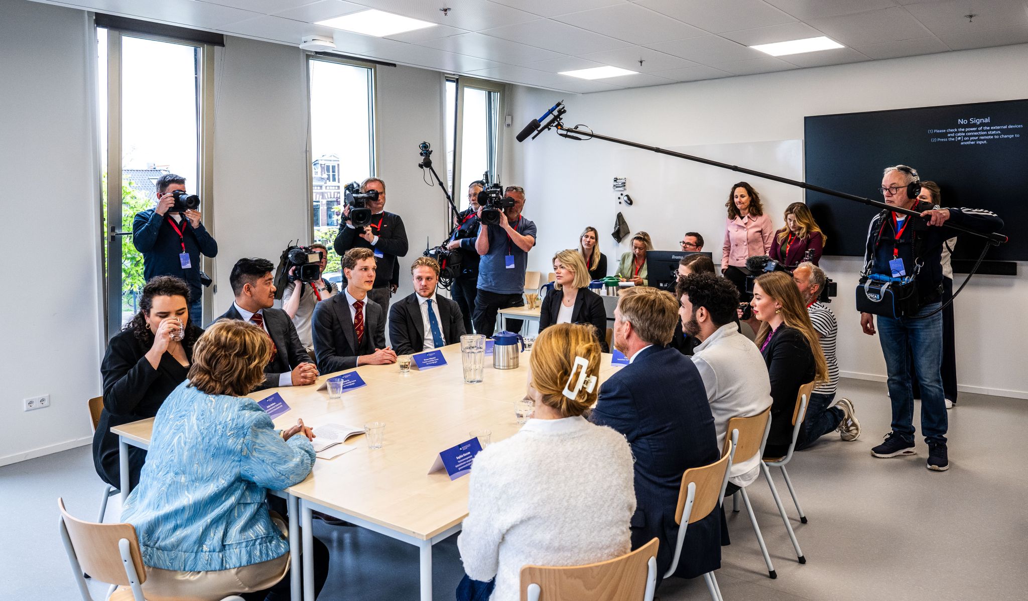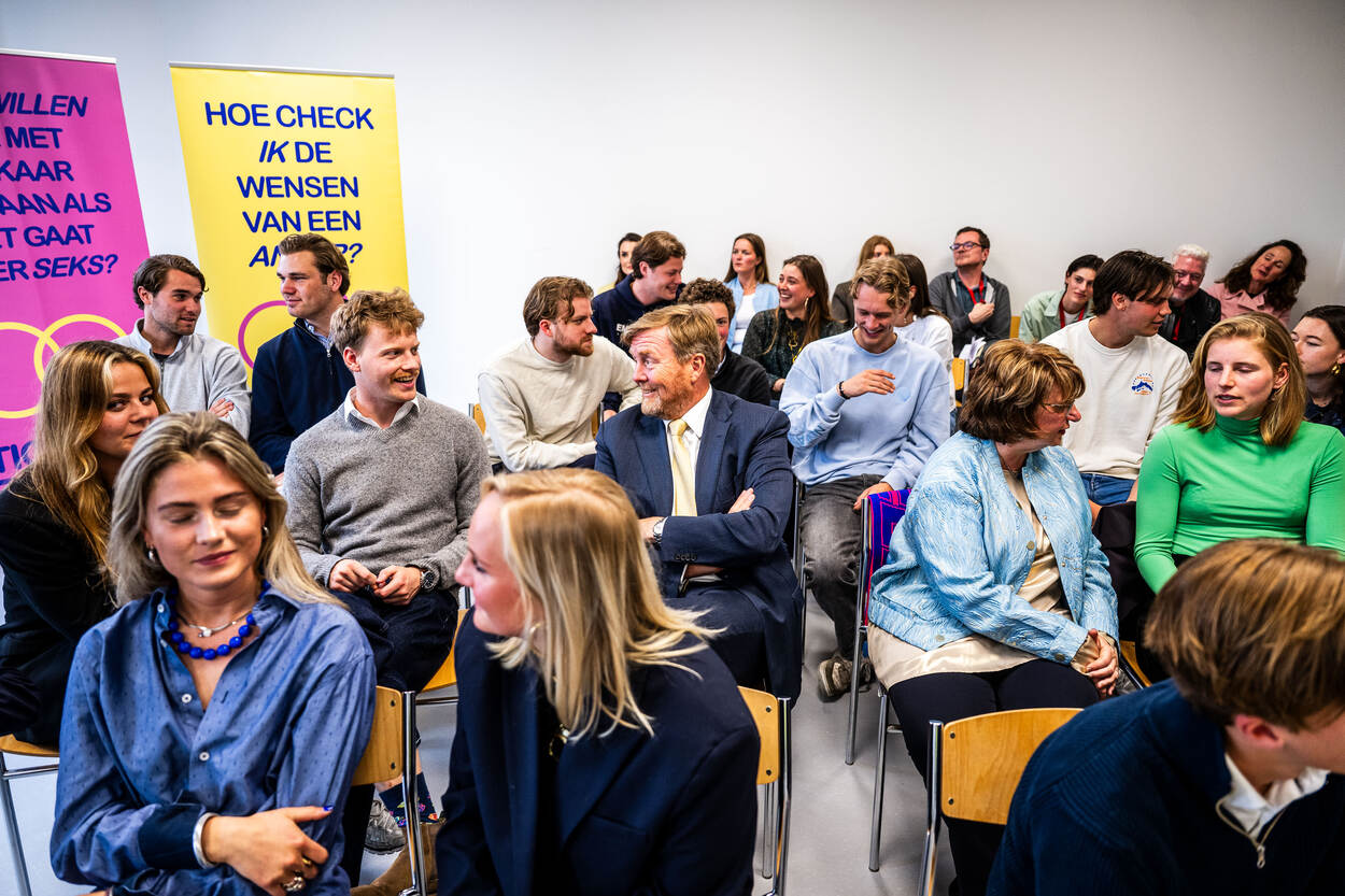 Willem-Alexander sprak met medewerkers van verschillende universiteiten en studenten die meewerkten aan het pact over hoe een ‘consentcultuur’ kan worden bevorderd. Hamer: “Als we een cultuurverandering willen, moeten we beginnen bij de leiders van de toekomst.”