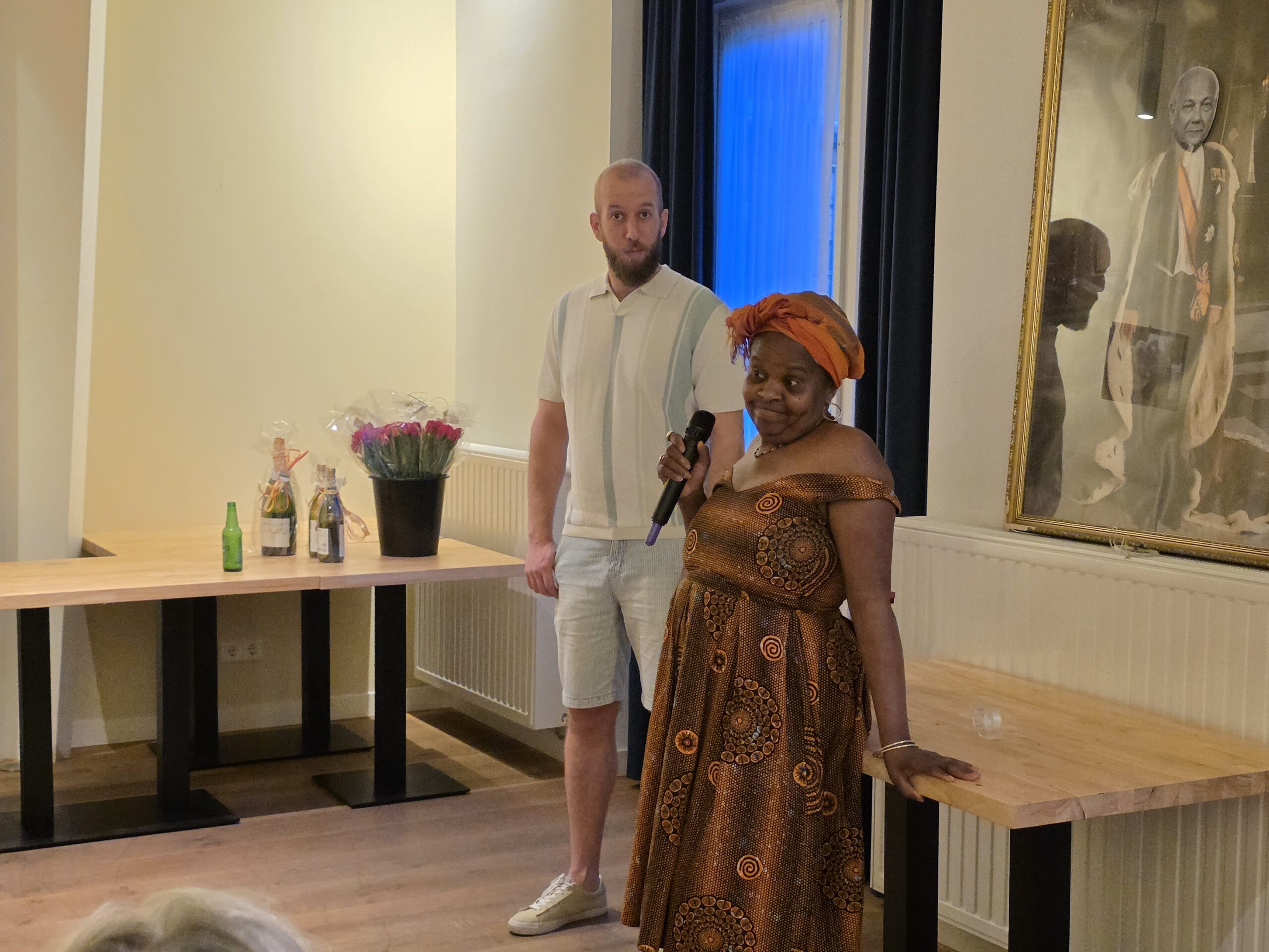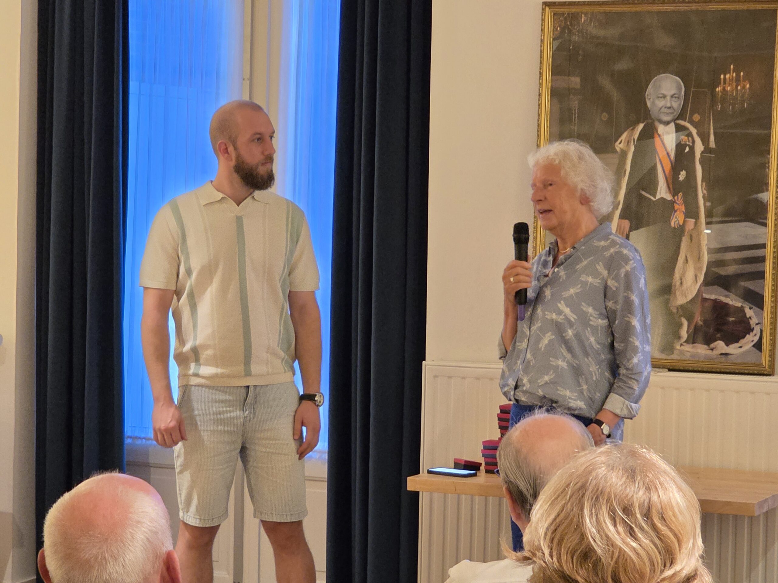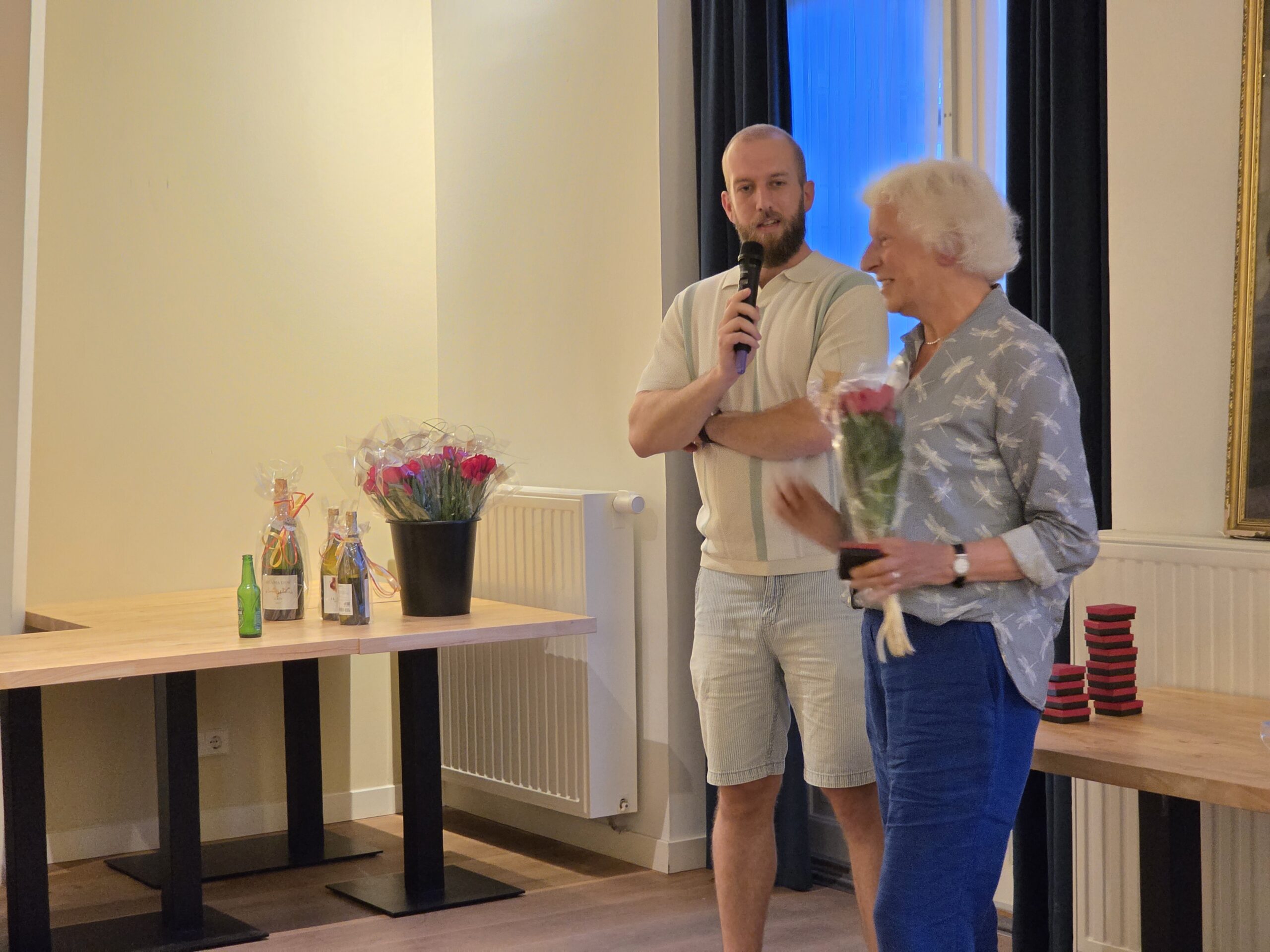 Naast de toespraken werden er ook enkele Leidse PvdA-leden in het zonnetje gezet die al heel lang lid zijn van de partij. Jacintha Groen kreeg bijvoorbeeld een speldje vanwege haar 25-jarige lidmaatschap. “We dachten je de mooiste speld te overhandigen”, zei afdelingsvoorzitter Joost van den Berg. “Maar die heb je vorige week al gehad.” Afgelopen vrijdag werd Groen bij de lintjesregen benoemd tot Ridder in de Orde van Oranje-Naussau.