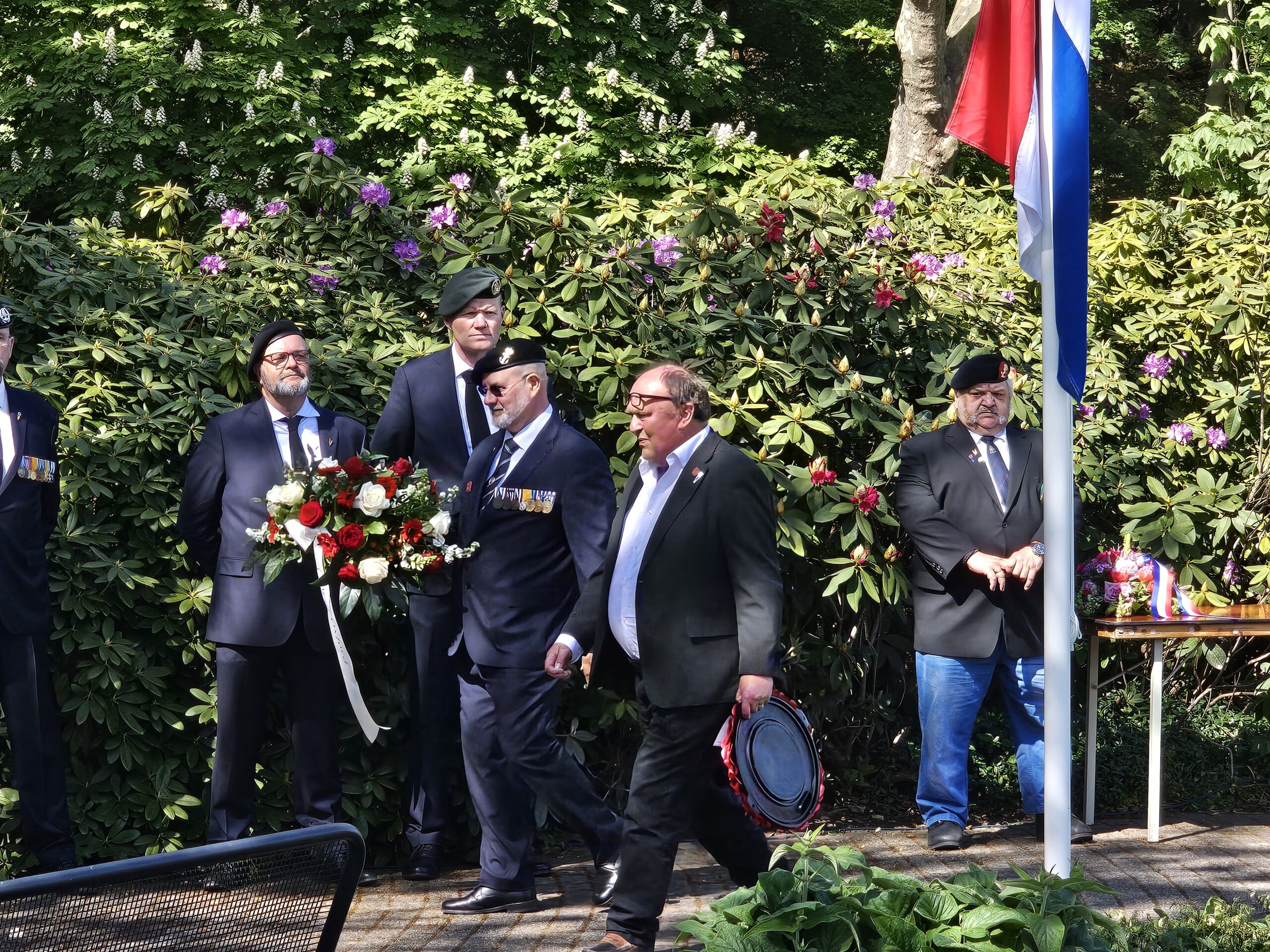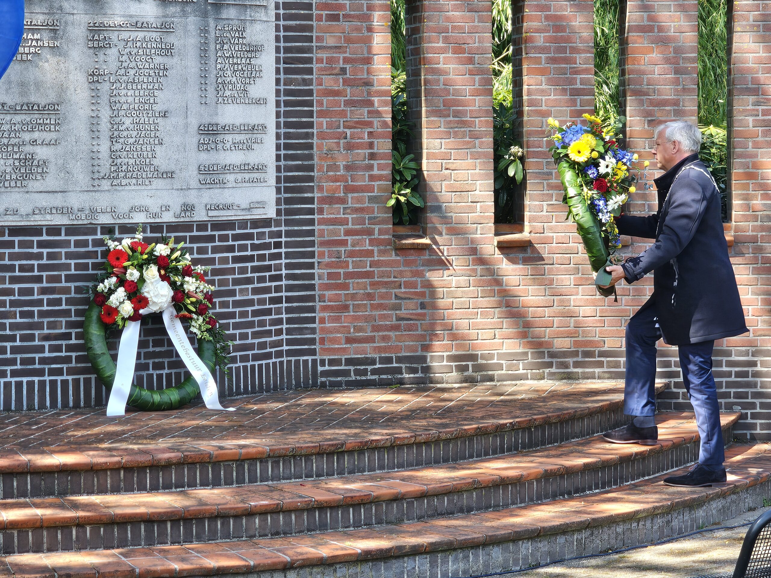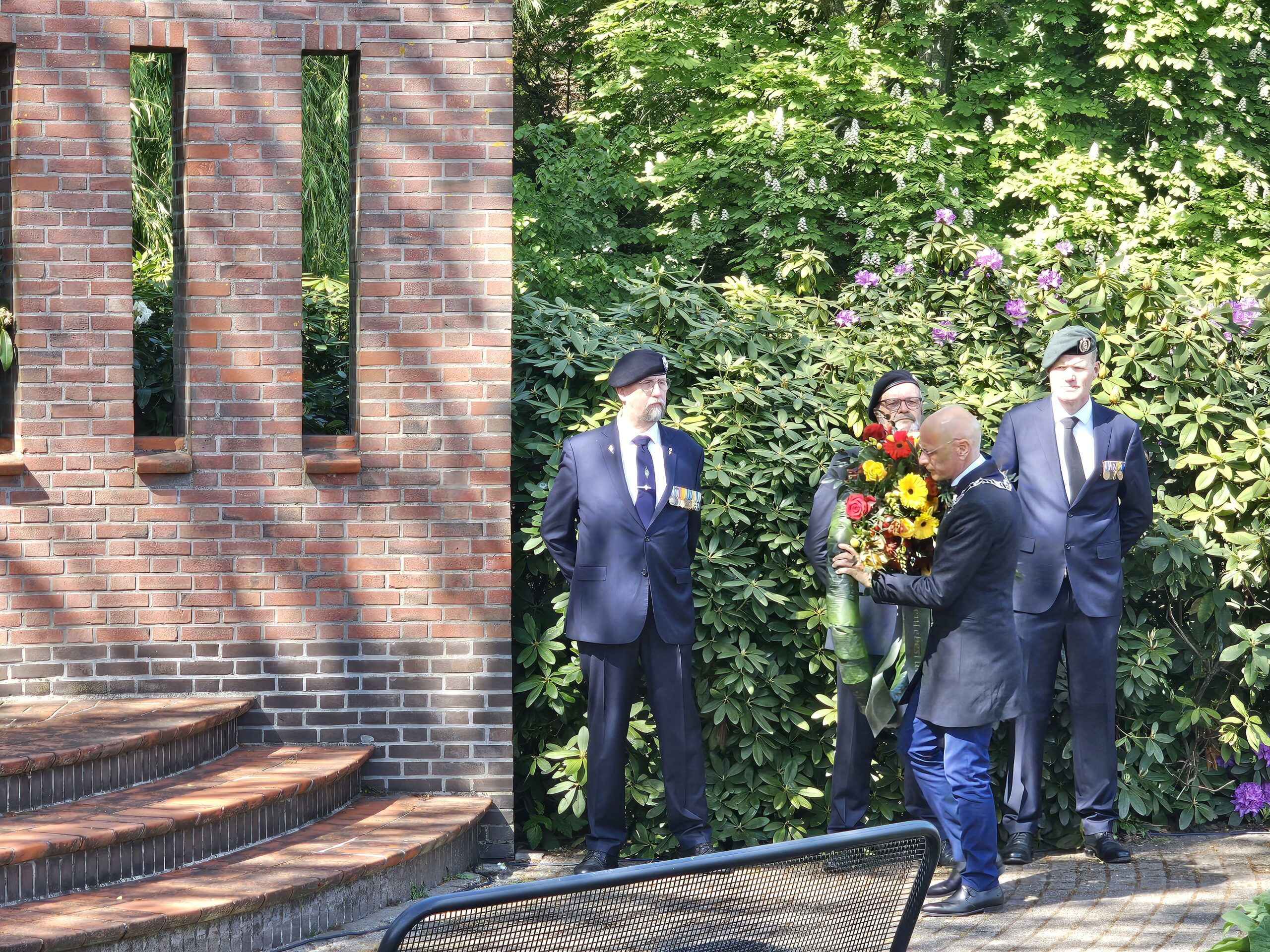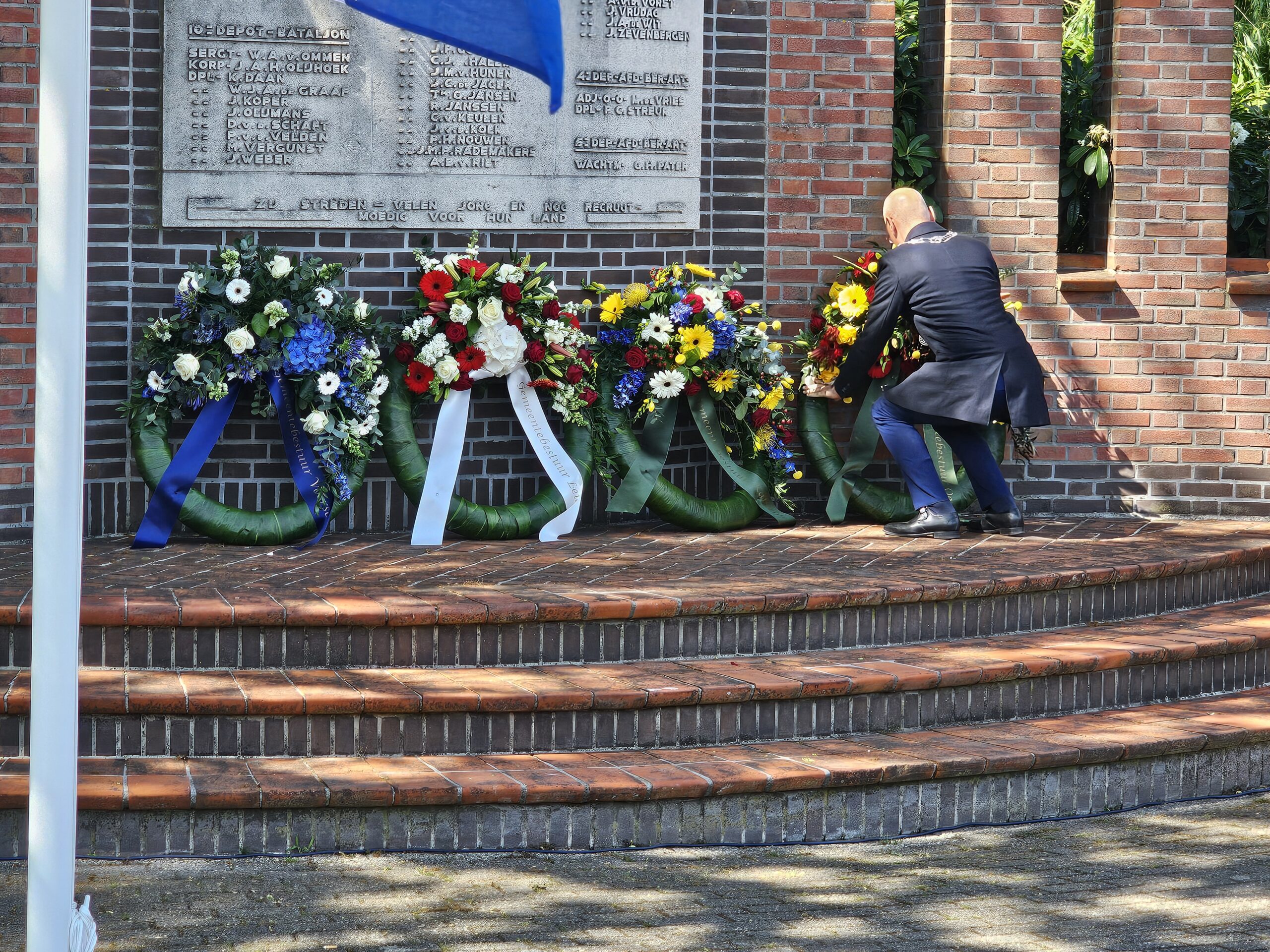 Aansluitend werden door de burgemeesters van Leiden, Oegstgeest, Voorschoten en Katwijk kransen gelegd. Na het spelen van de Last Post, het Wilhelmus en twee minuten stilte defileerden enkele honderden aanwezigen langs het monument, waarbij sommigen bloemen neerlegden.